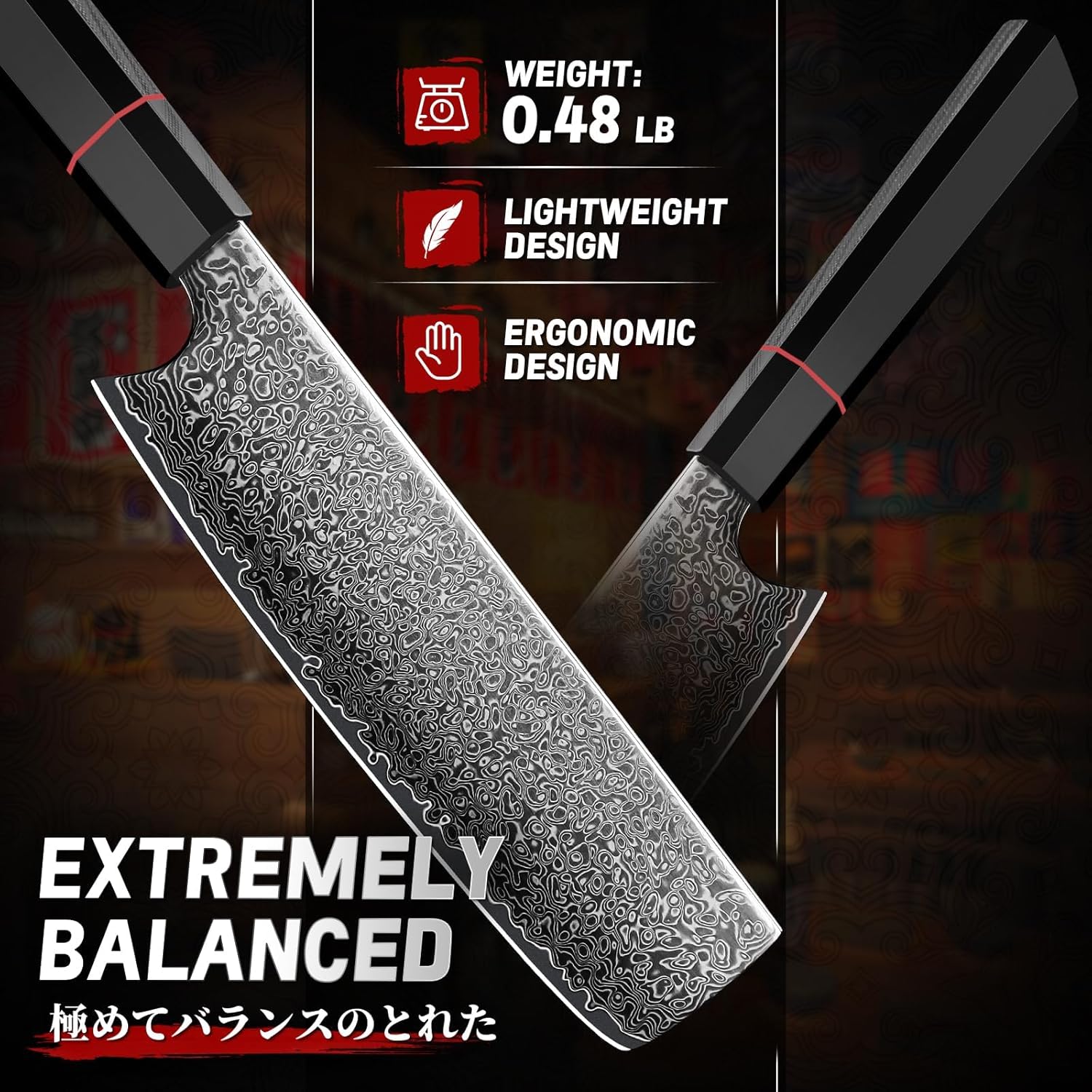 7" Nakiri Chopping Kitchen Knife G10 Carbon Fiber Handle