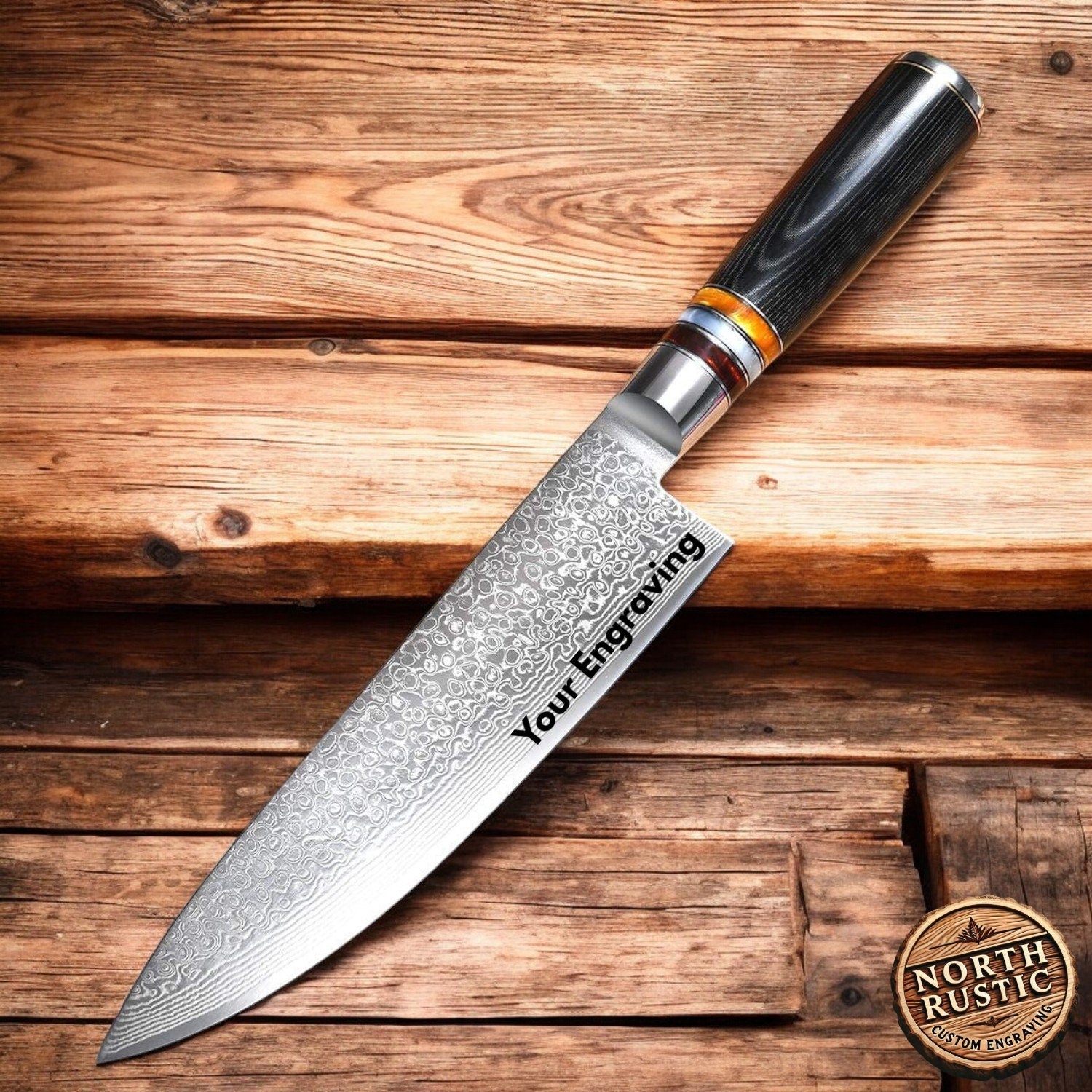 8" Personalized Chef Knife Damascus Blade Kitchen Culinary Utility Knives Professional Home Goods Cutlery Wedding Gift Anniversary VC11