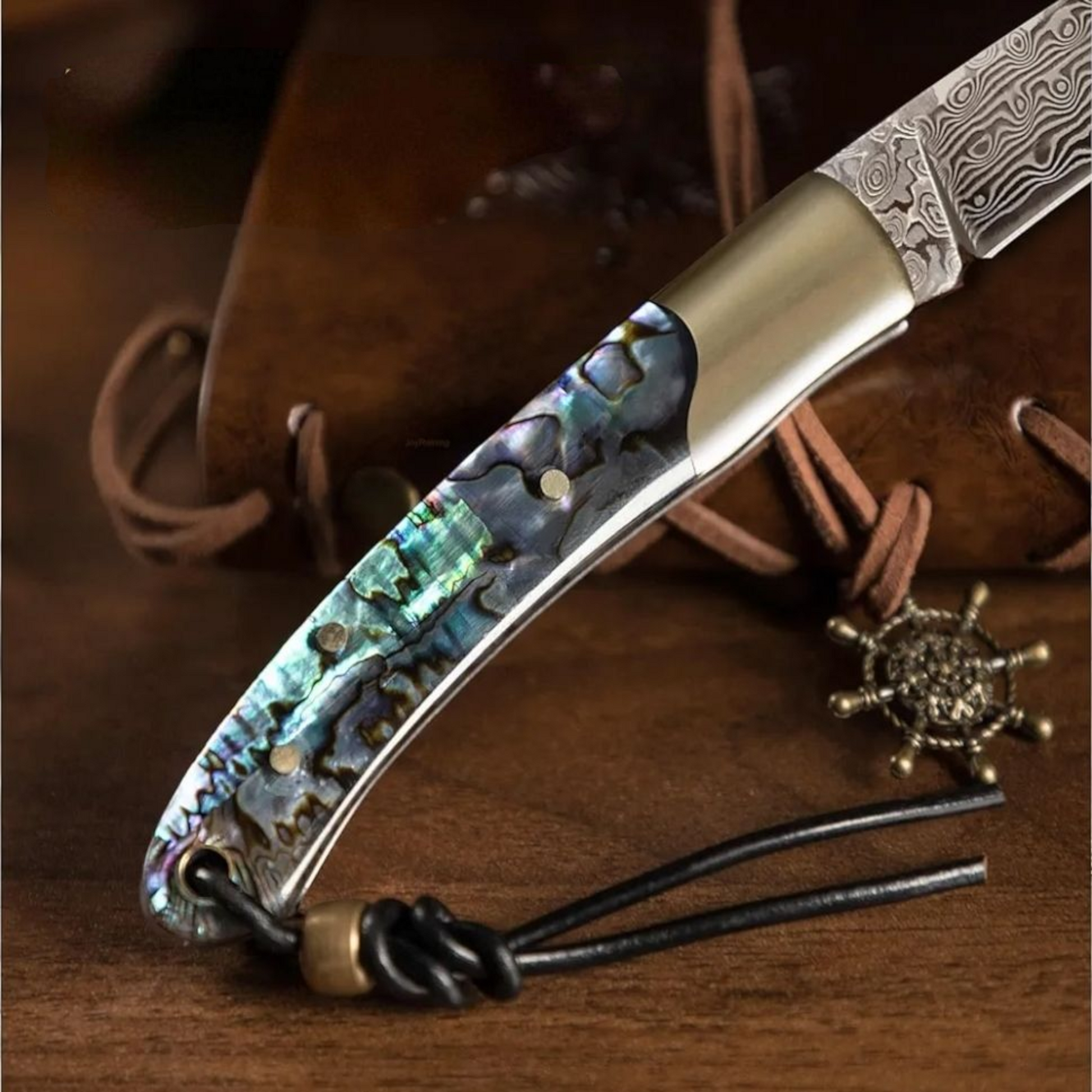 Abalone Damascus Pocket Knife
