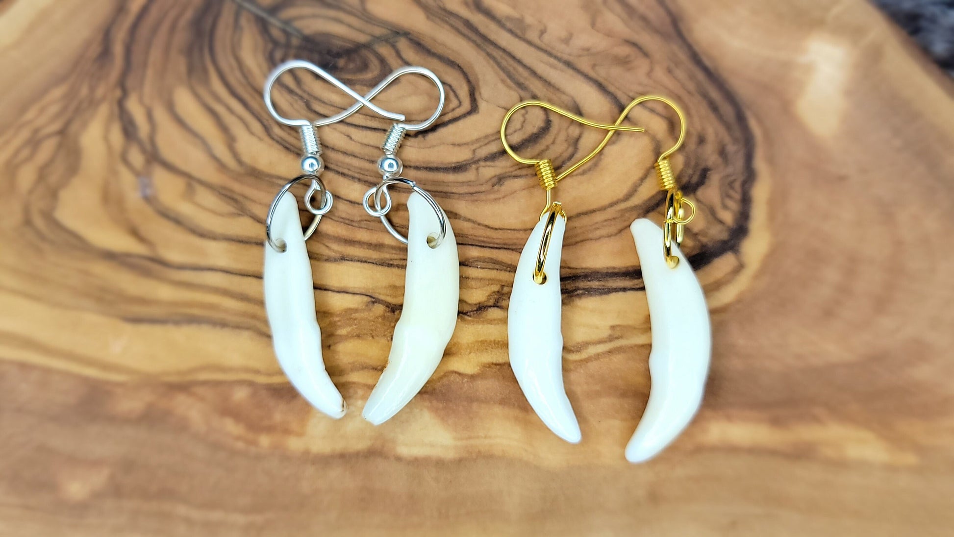 Authentic Coyote Tooth Earrings - Handmade Boho Chic Jewelry, Artisan Crafted Rustic Viking, Native Style Earpieces, Unique Accessories WCE
