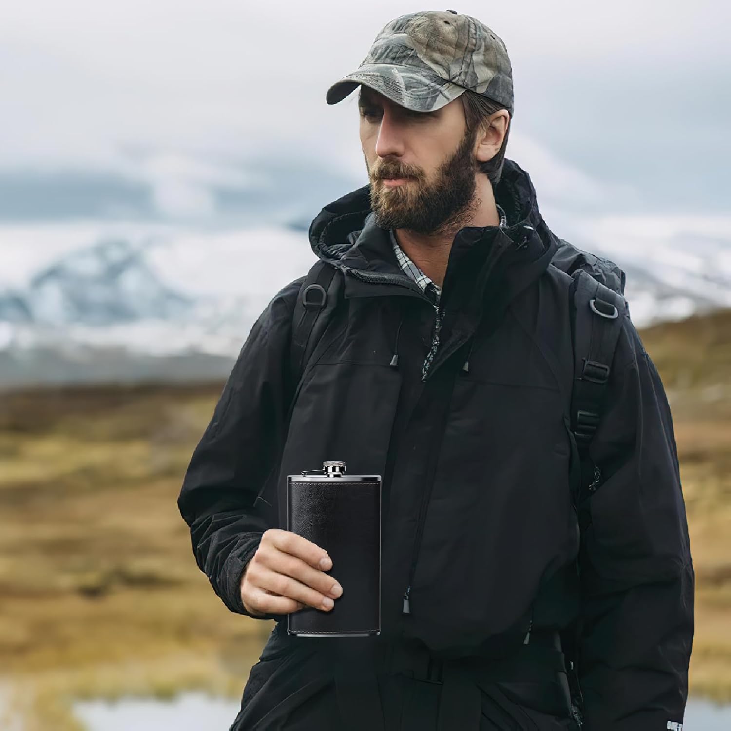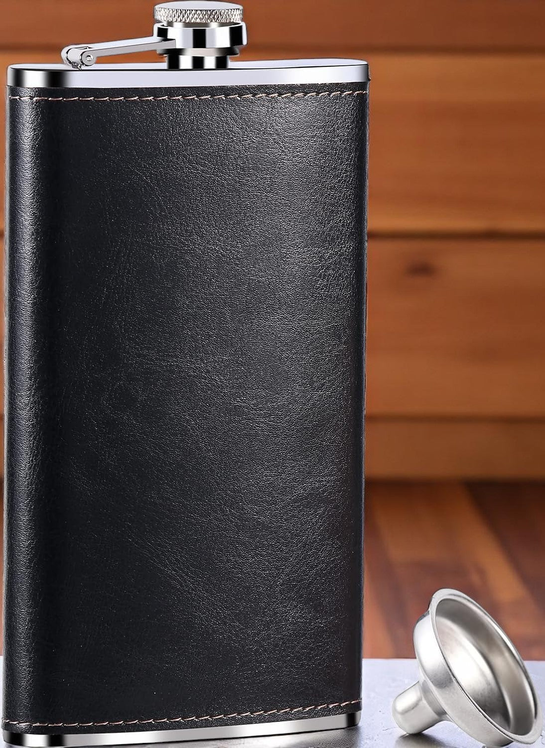 - 10 oz stainless steel flask wrapped in high-quality, distressed leather for a rugged, vintage look