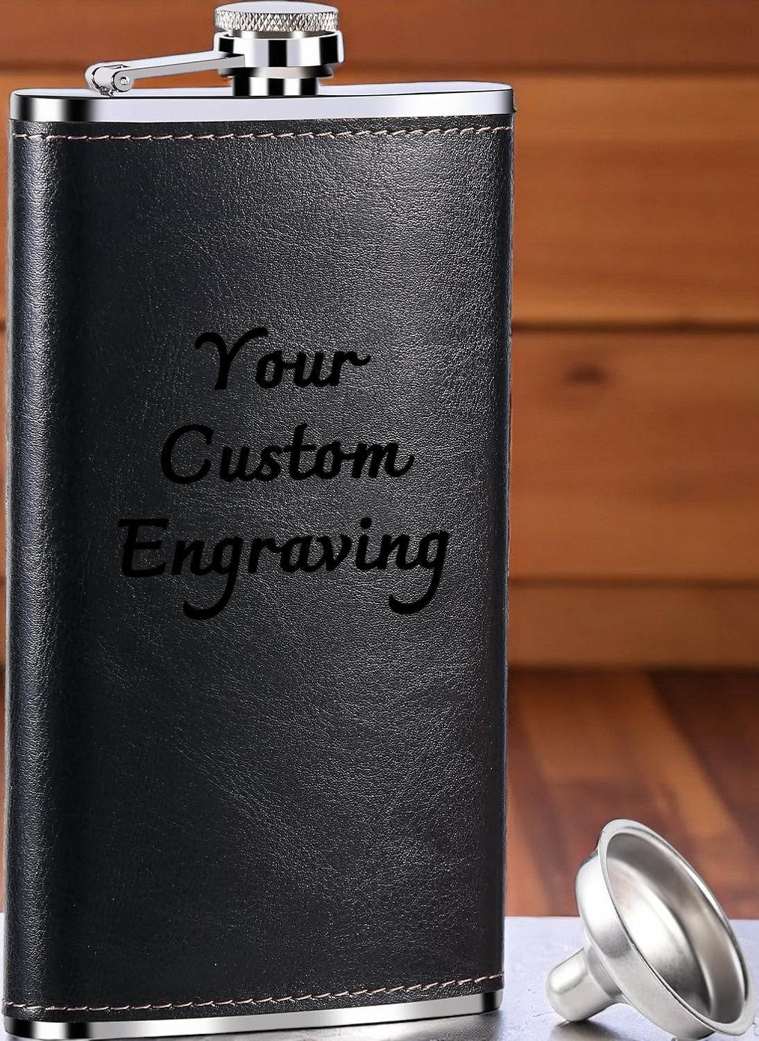Personalized Engraved Leather Flask – Custom Gift for Groomsmen, Weddings, Birthdays & More