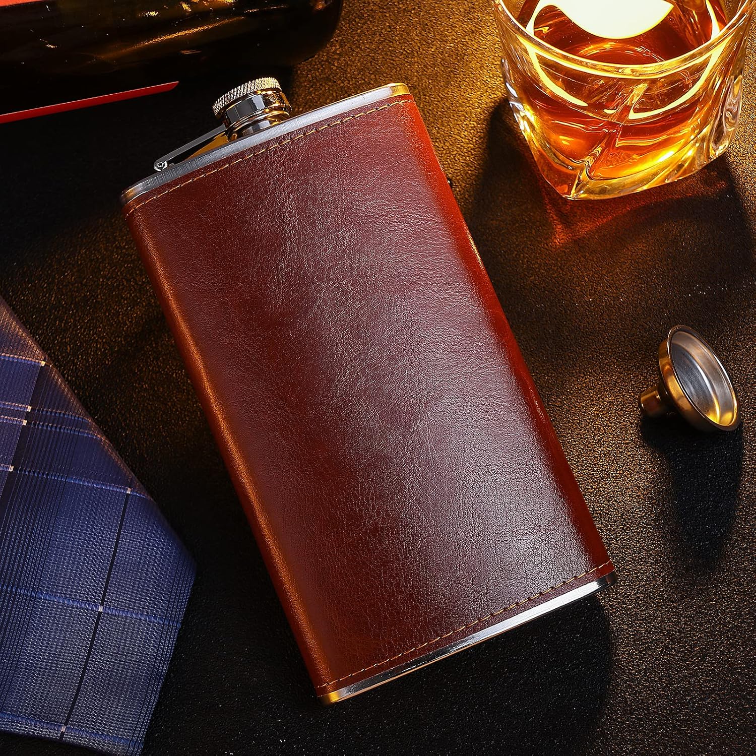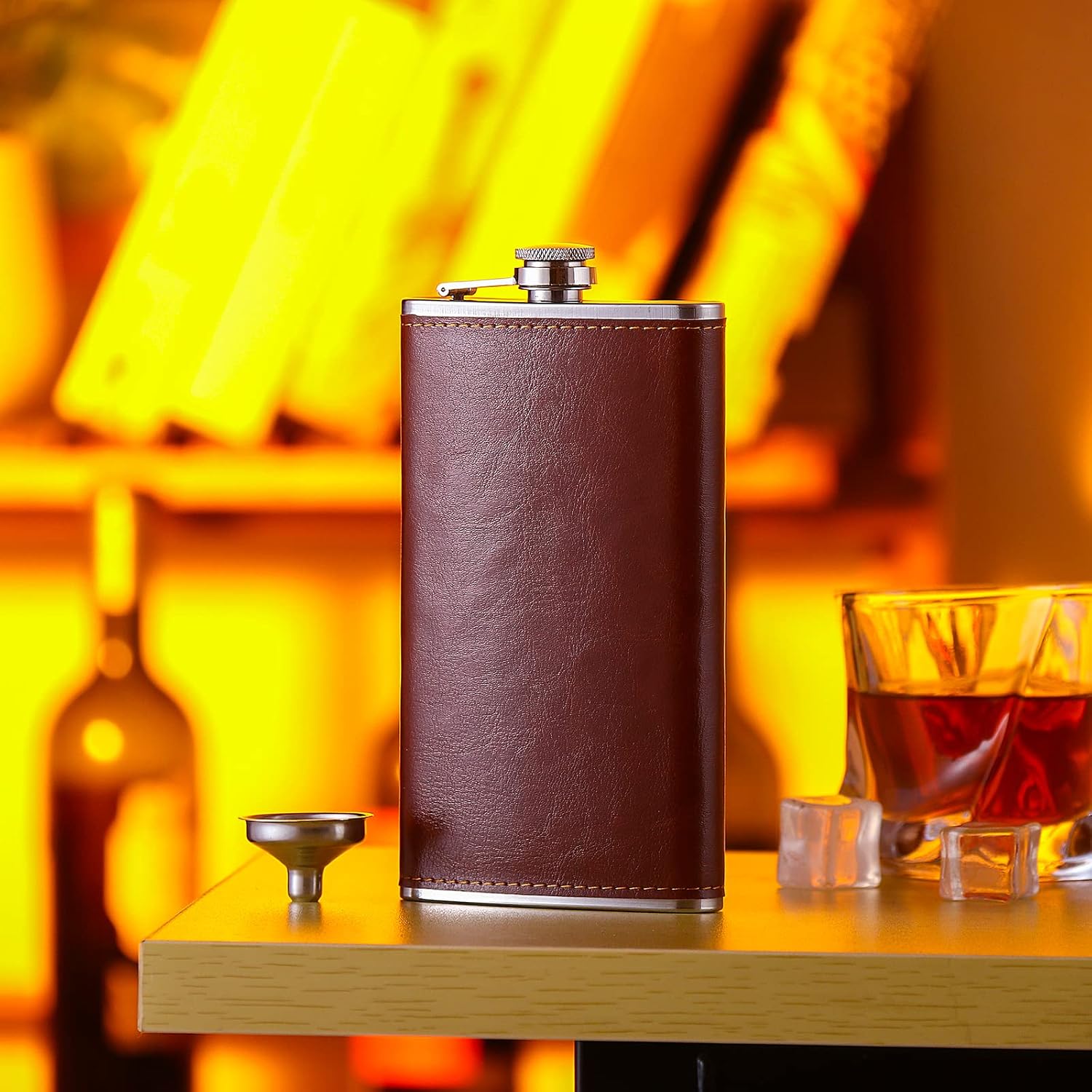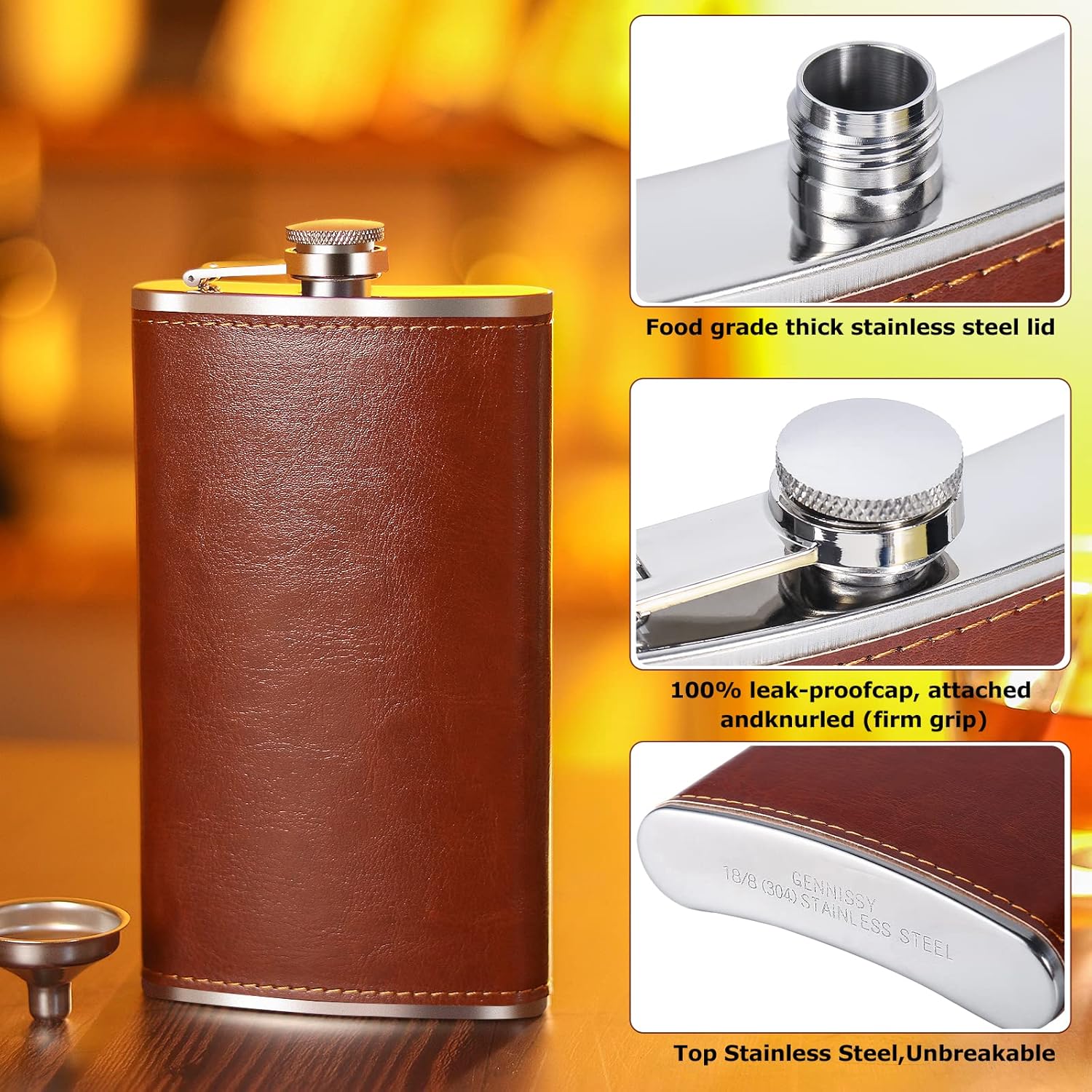 - 10 oz stainless steel flask wrapped in high-quality, distressed leather for a rugged, vintage look
