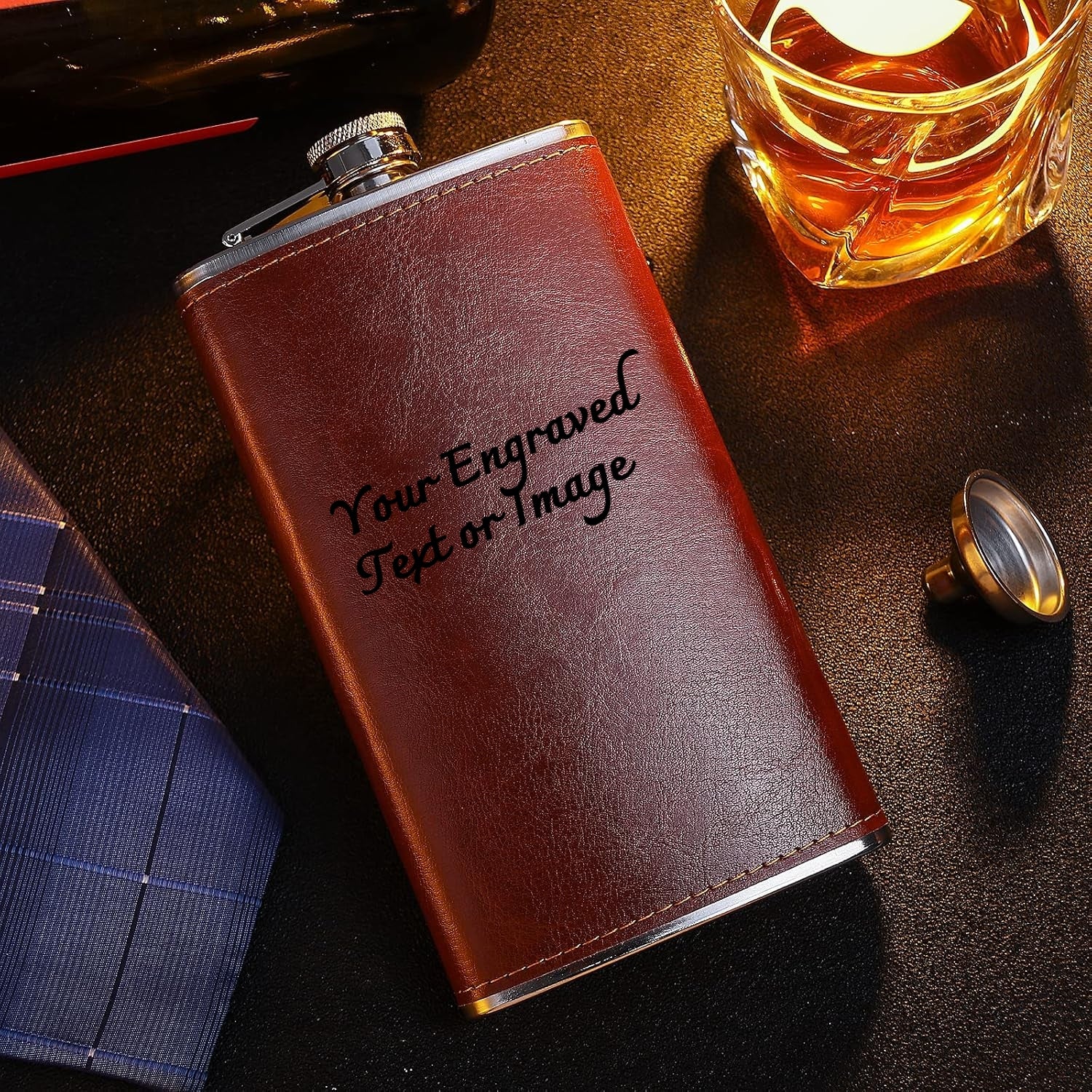 Personalized Engraved Leather Flask – Custom Gift for Groomsmen, Weddings, Birthdays & More