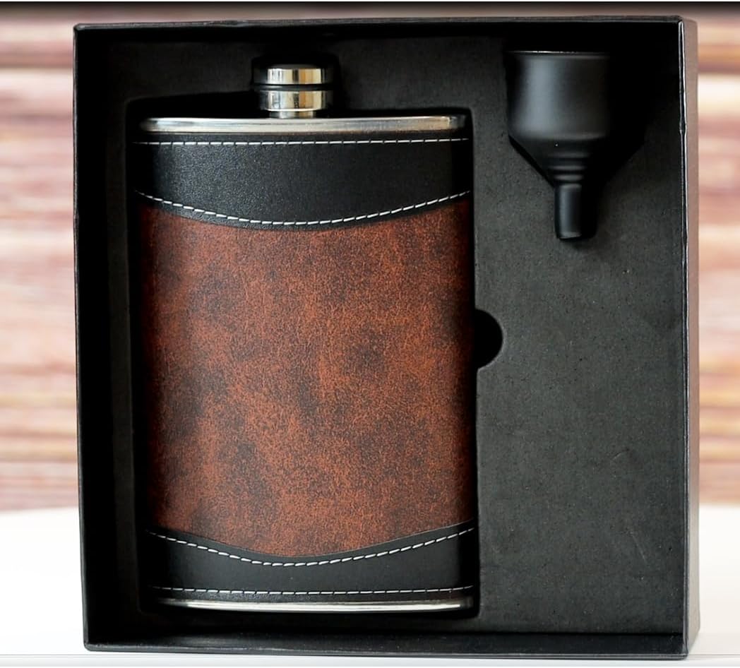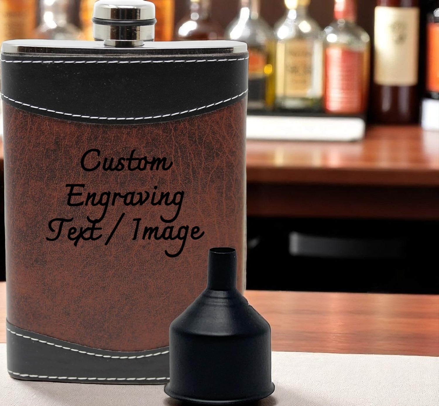 Personalized Engraved Leather Flask – Custom Gift for Groomsmen, Weddings, Birthdays & More