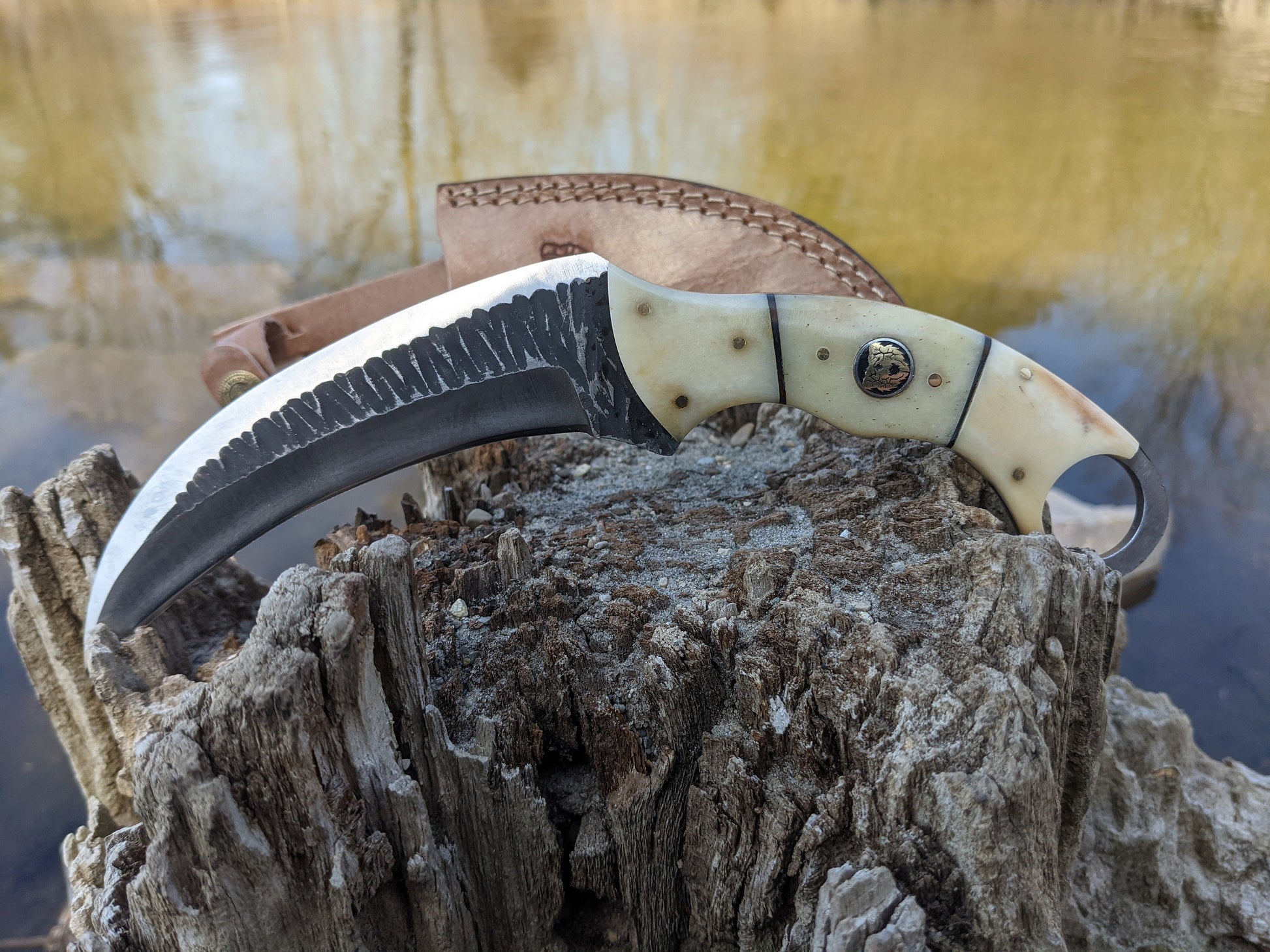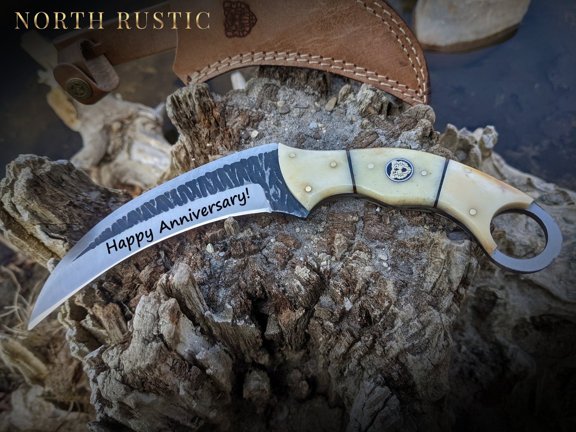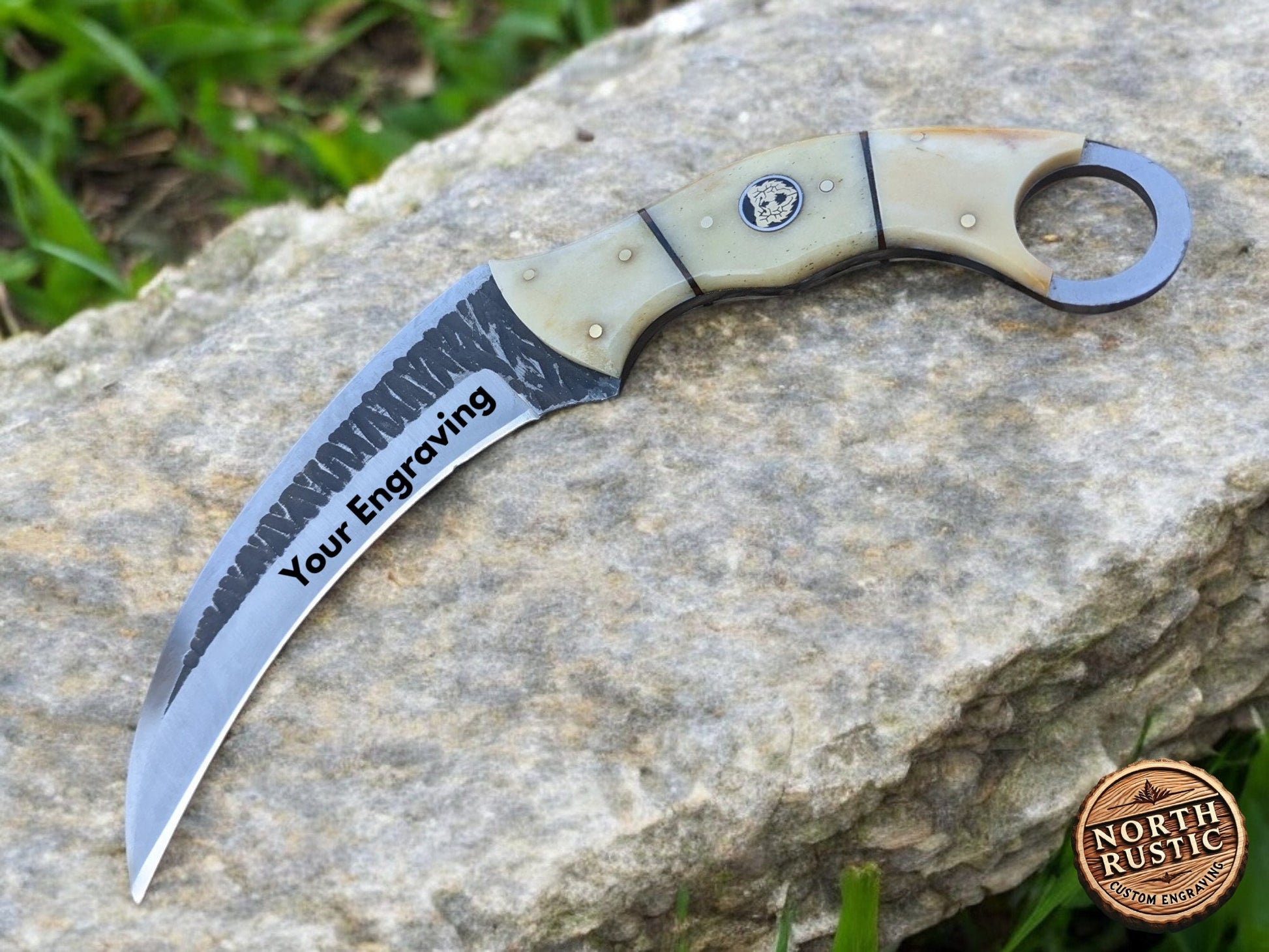 Buffalo Bone Karambit Knife | Custom Engraved Knife | Hunting Knife | Groomsman Gift | Outdoors Camping Knife | Father's Day Gift | NR07-1