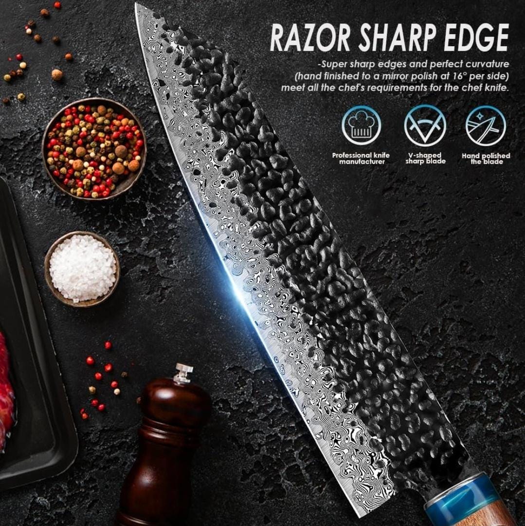 • Hammered VG10 Damascus Blade