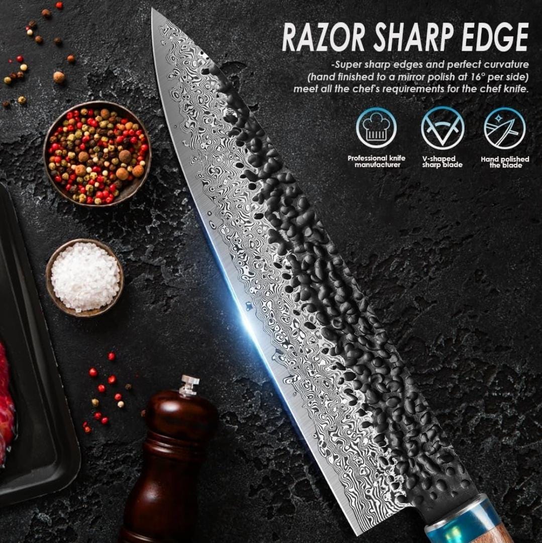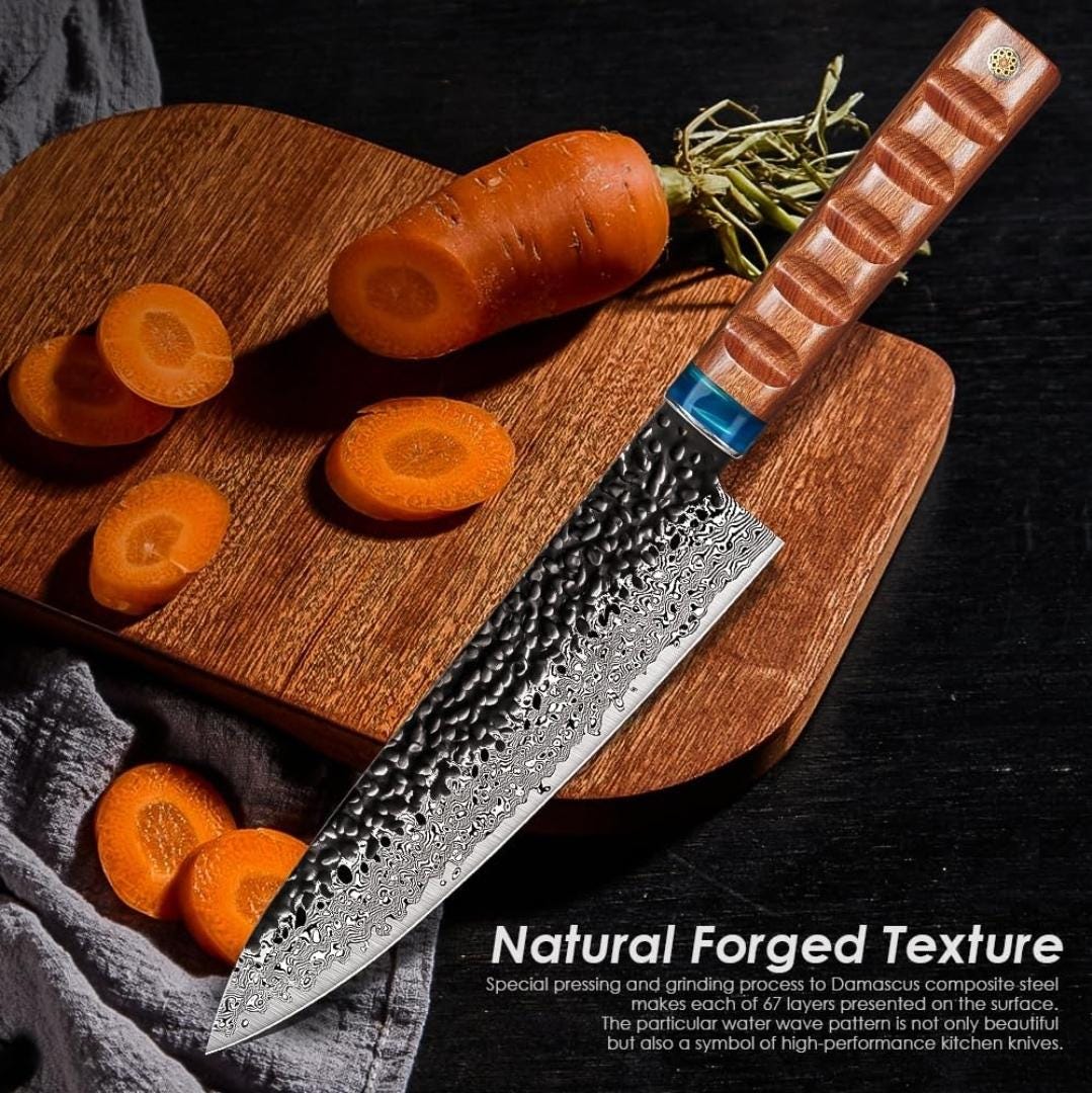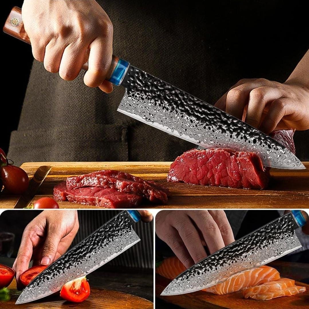 Chef Knife Hammered Damascus 8" Kitchen Knife Engraved Custom Culinary Chef Knives Gifts for Him Her Men Women Gift Cooking Cutlery KL05