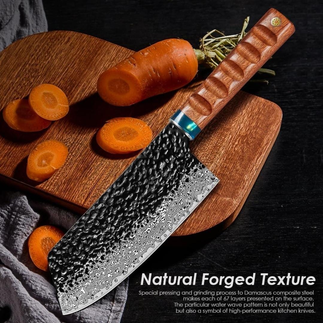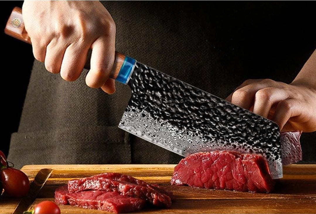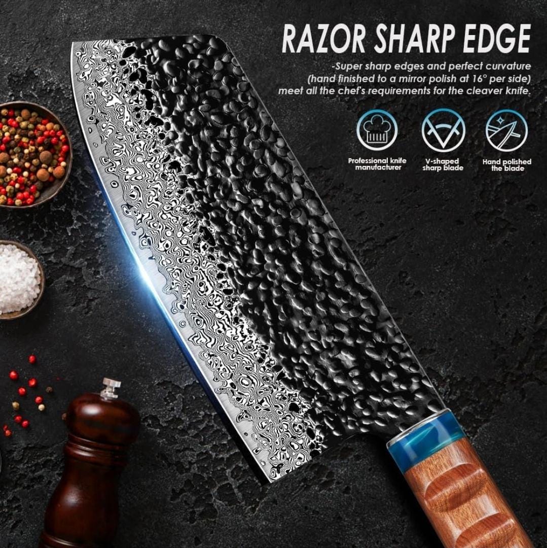 Chef Knife Hammered Damascus 8" Meat Cleaver Engraved Custom Culinary Chef Knives Gifts for Him Her Men Women Gift Cooking Cutlery KL08