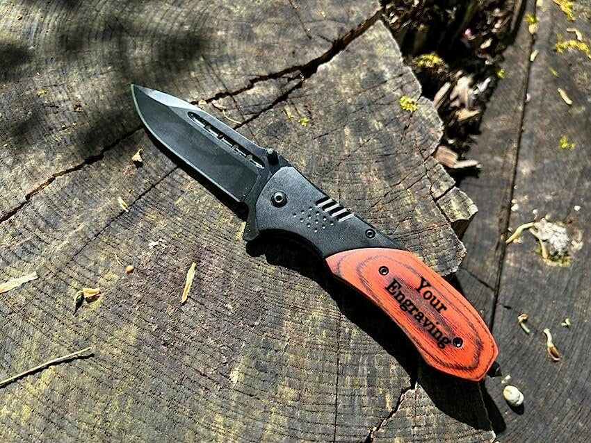 Walnut Wood Handle Pocket Knife Black Stainless Steel