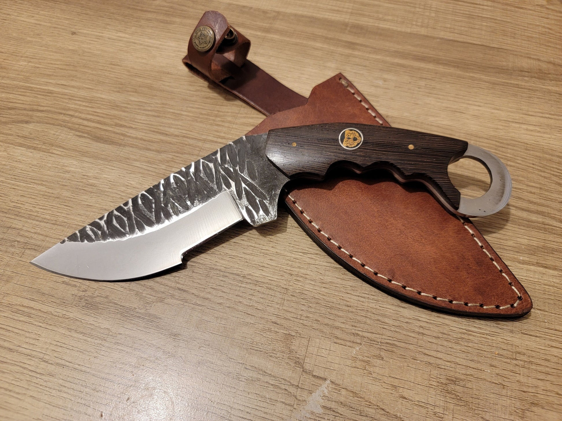 Custom Engraved Karambit | Hunting Knife | Wenge Wood Hammered Knife | Groomsman Gift | Outdoors Camping Knife | Father's Day Gift | NR04-3