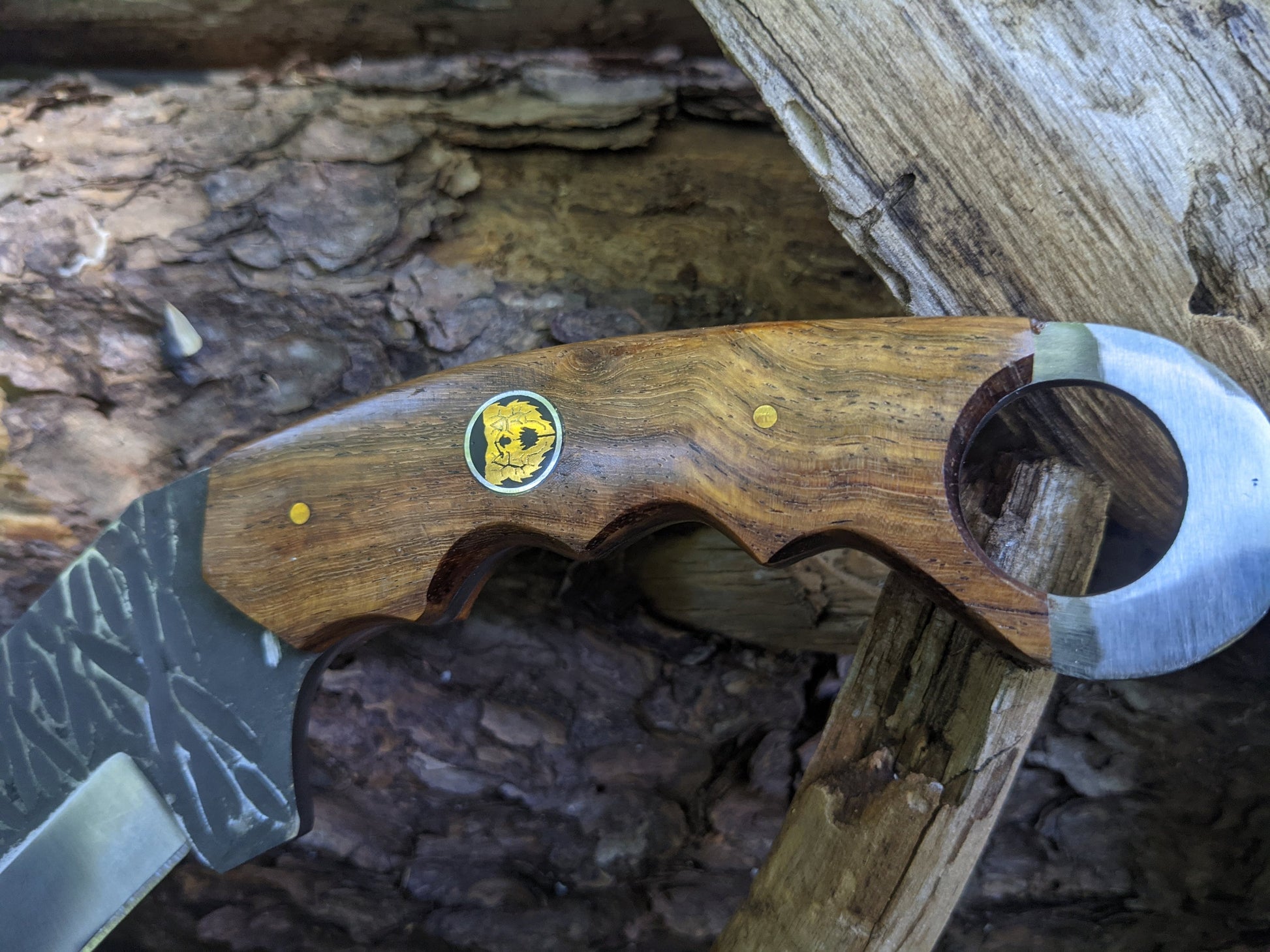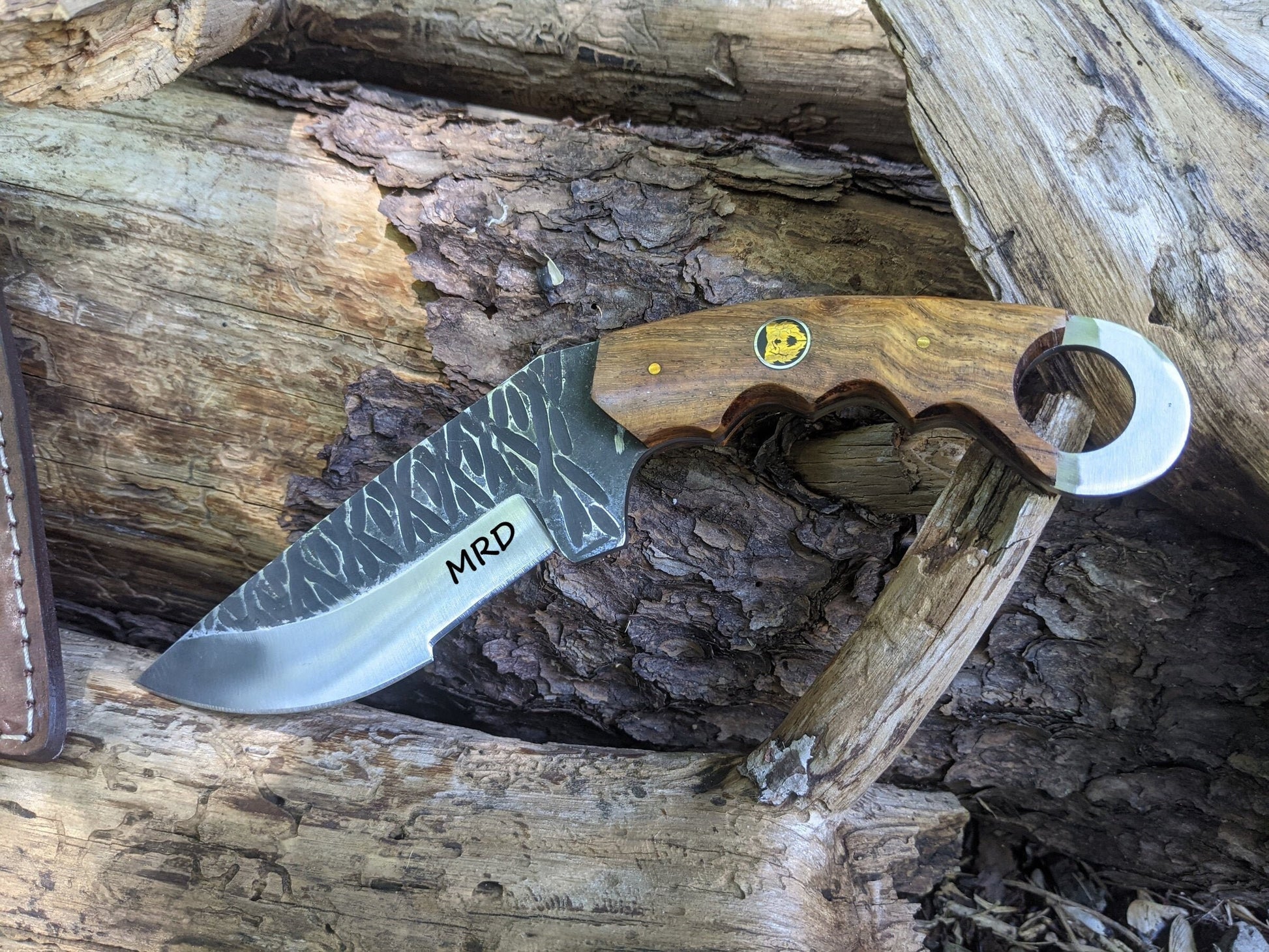 Custom Engraved Karambit | Rose Wood Hunting Knife | Hammered Knife | Groomsman Gift | Outdoors Camping Knife | Father Dad Gift | NR08-5
