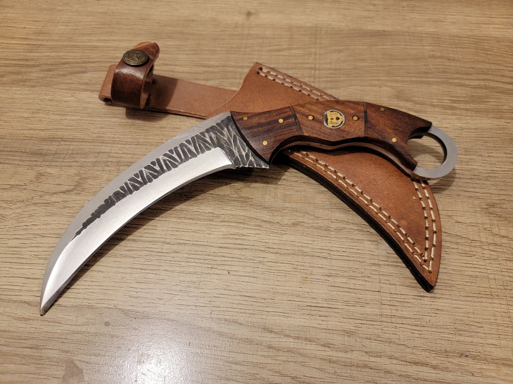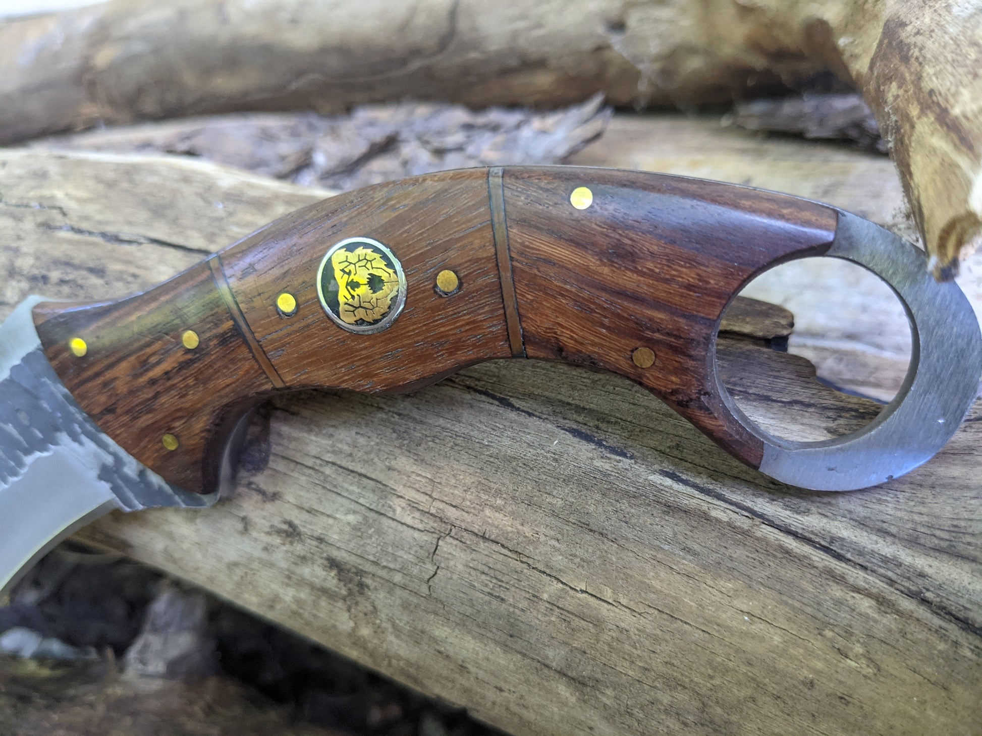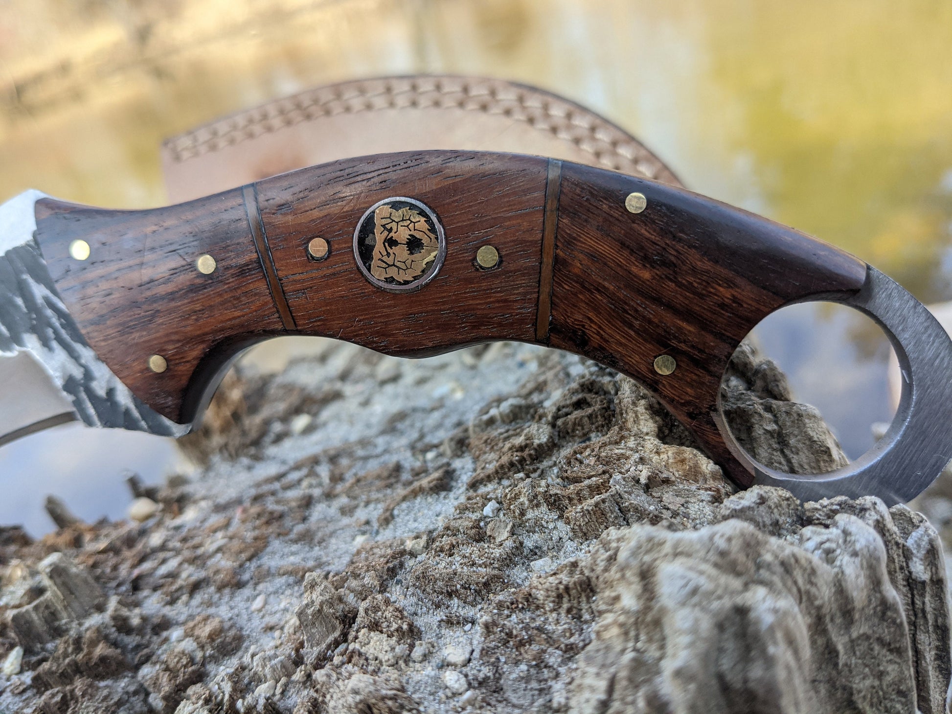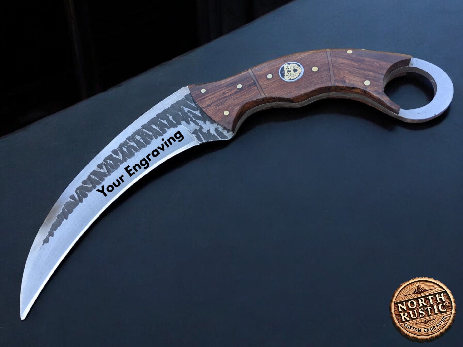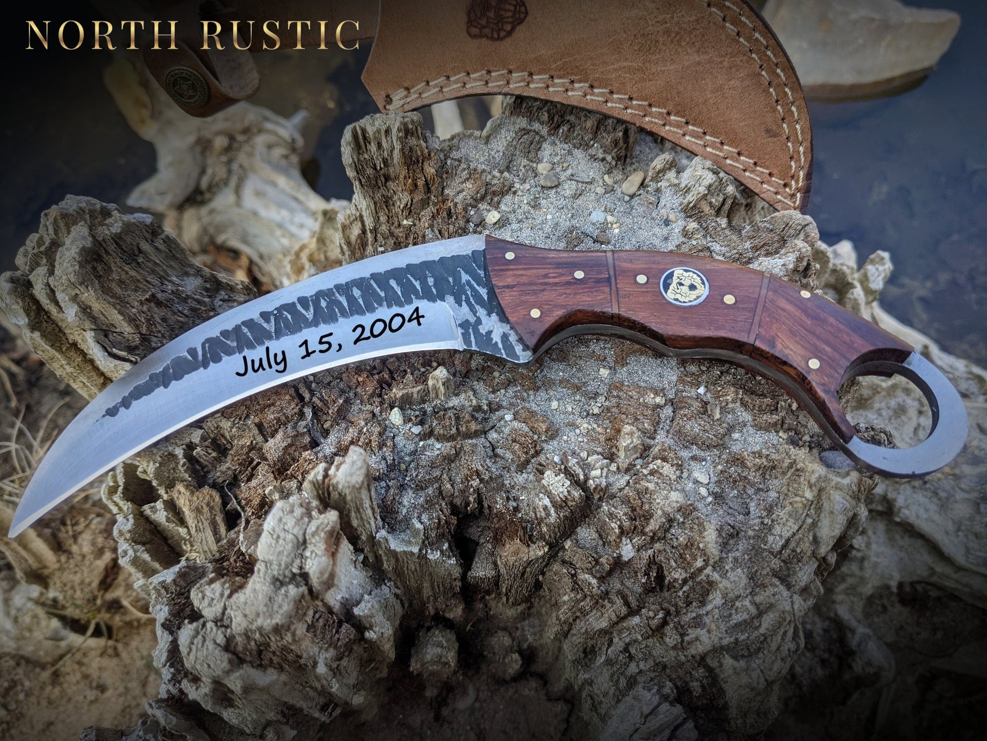 Custom Engraved Karambit | Rose Wood Hunting Knife | Hammered Knife | Groomsman Gift | Outdoors Camping Knife | Father's Day Gift | NR07-2