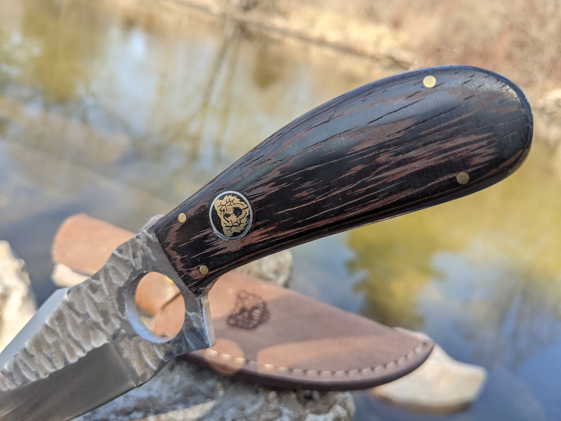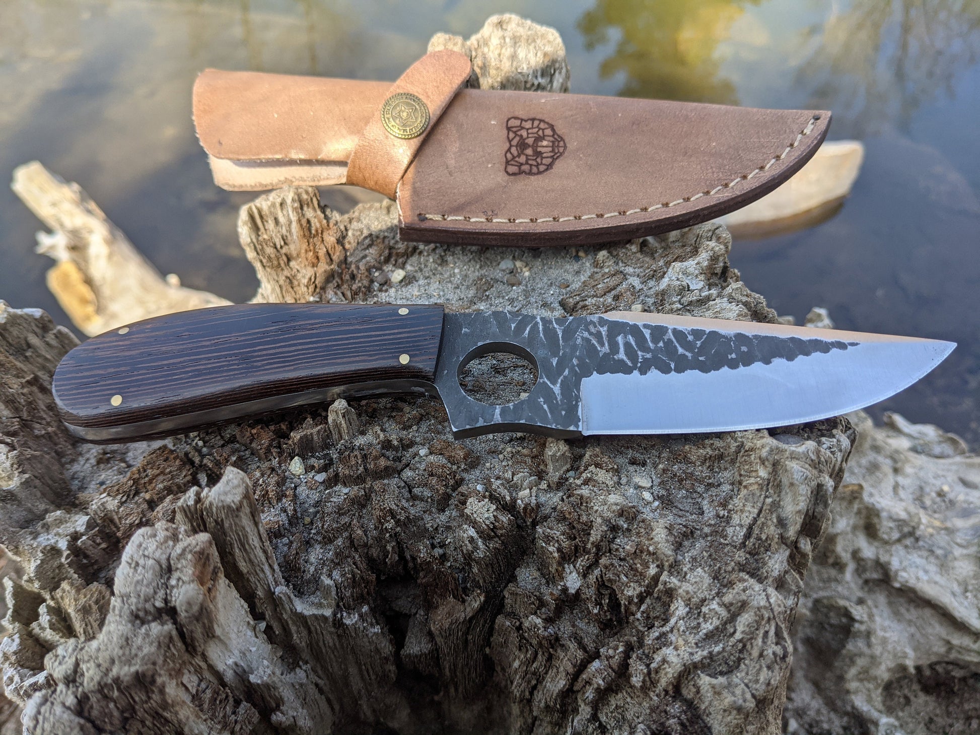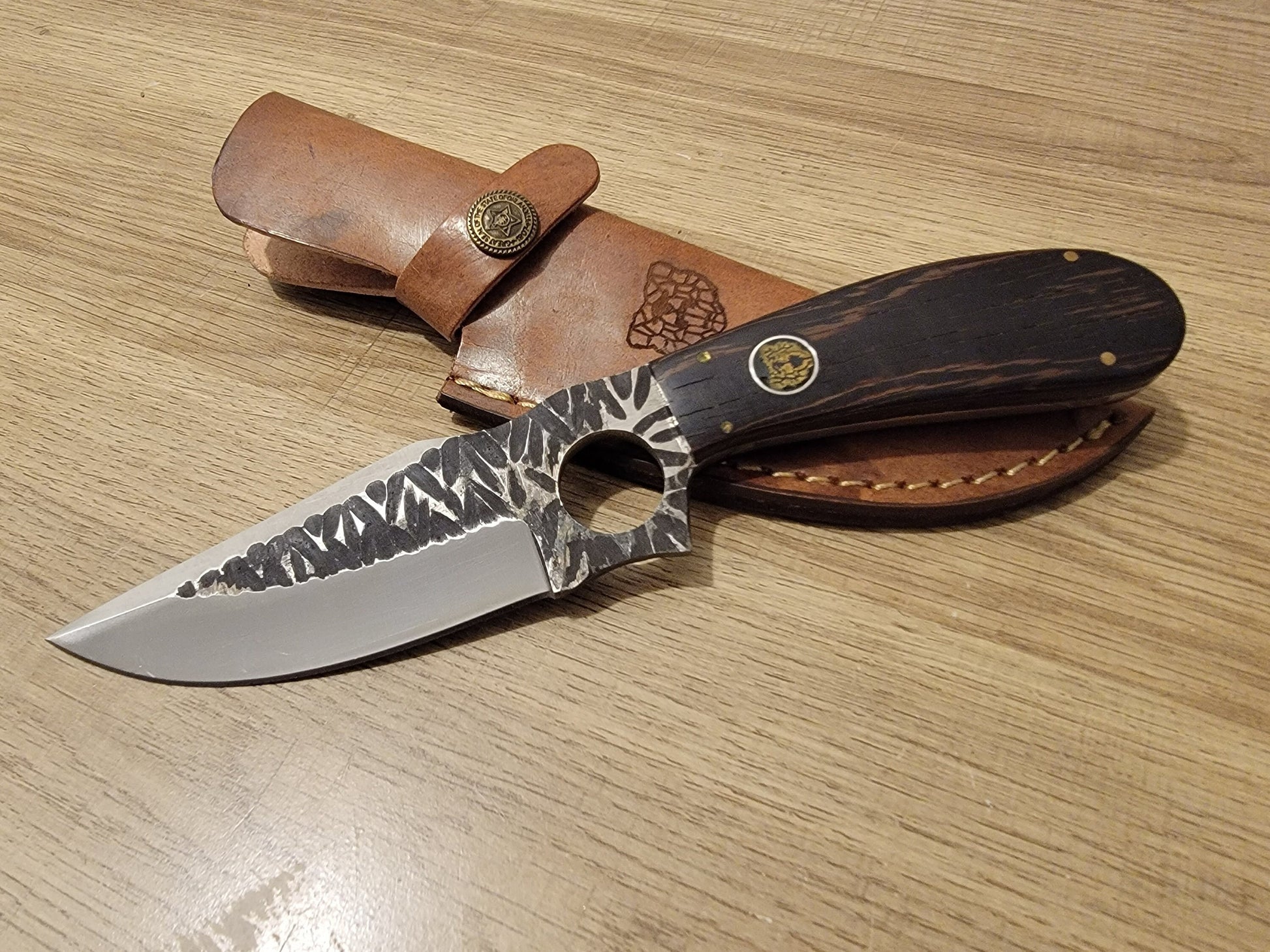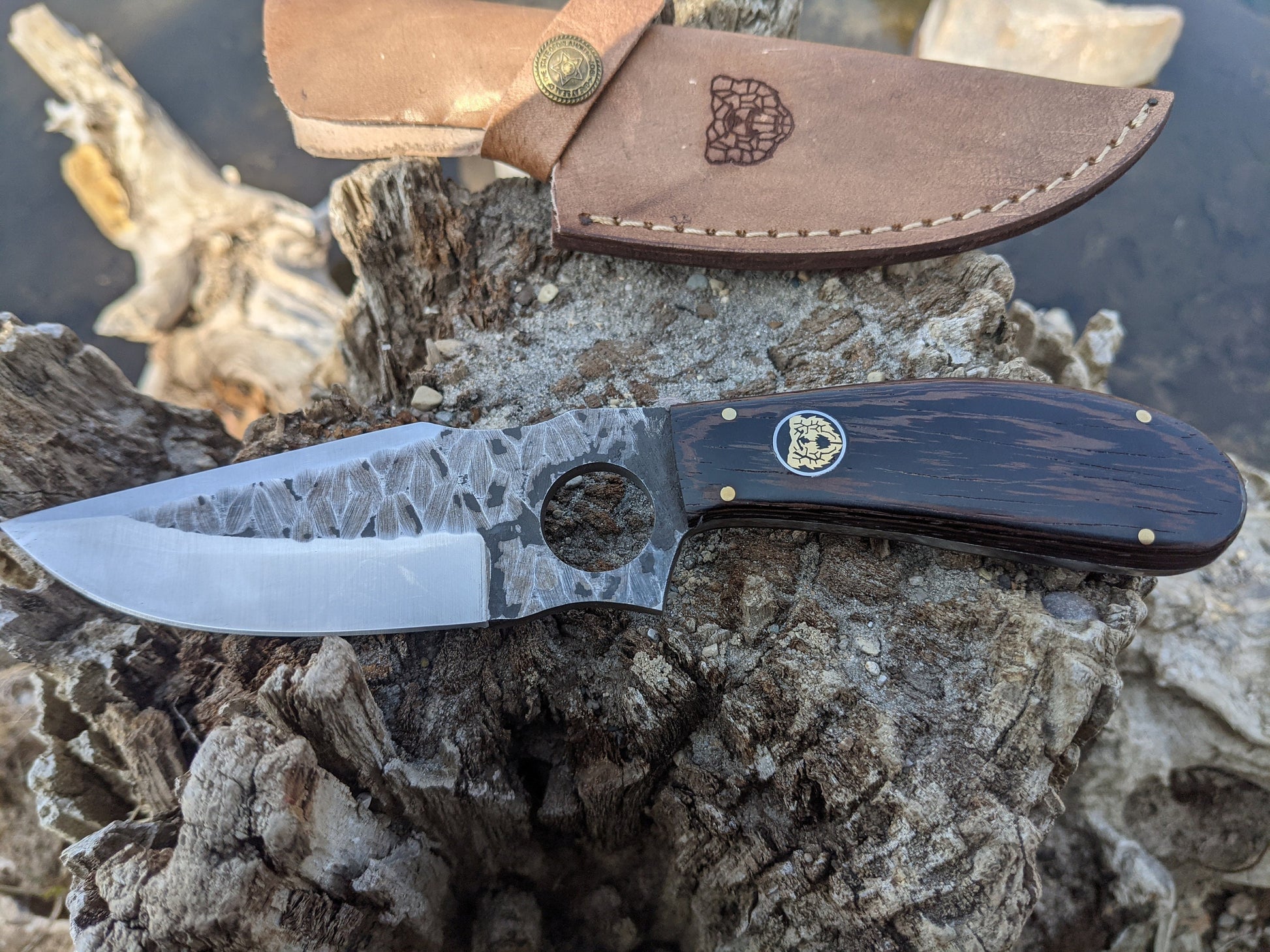 Custom Engraved Knife | Wenge Wood Hunting Knife | Hammered Knife | Groomsman Gift | Outdoors Camping Knife | Father's Day Gift | NR05-2