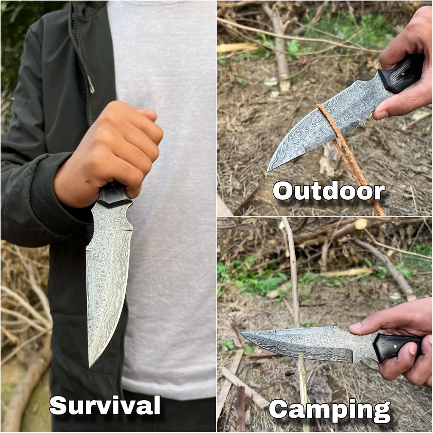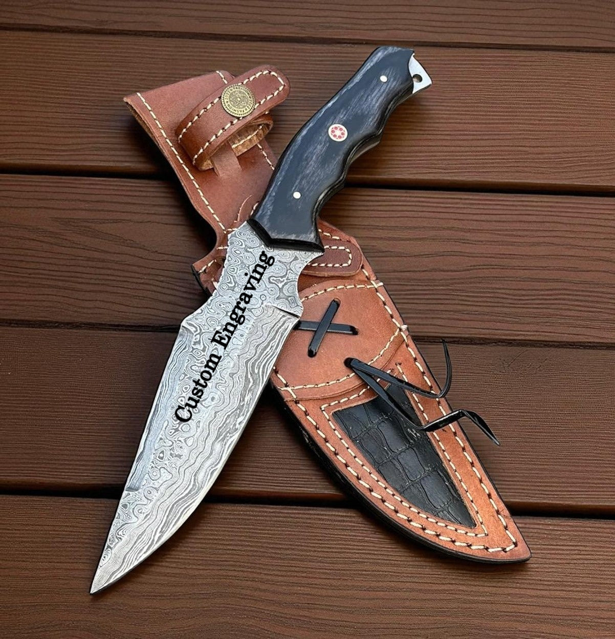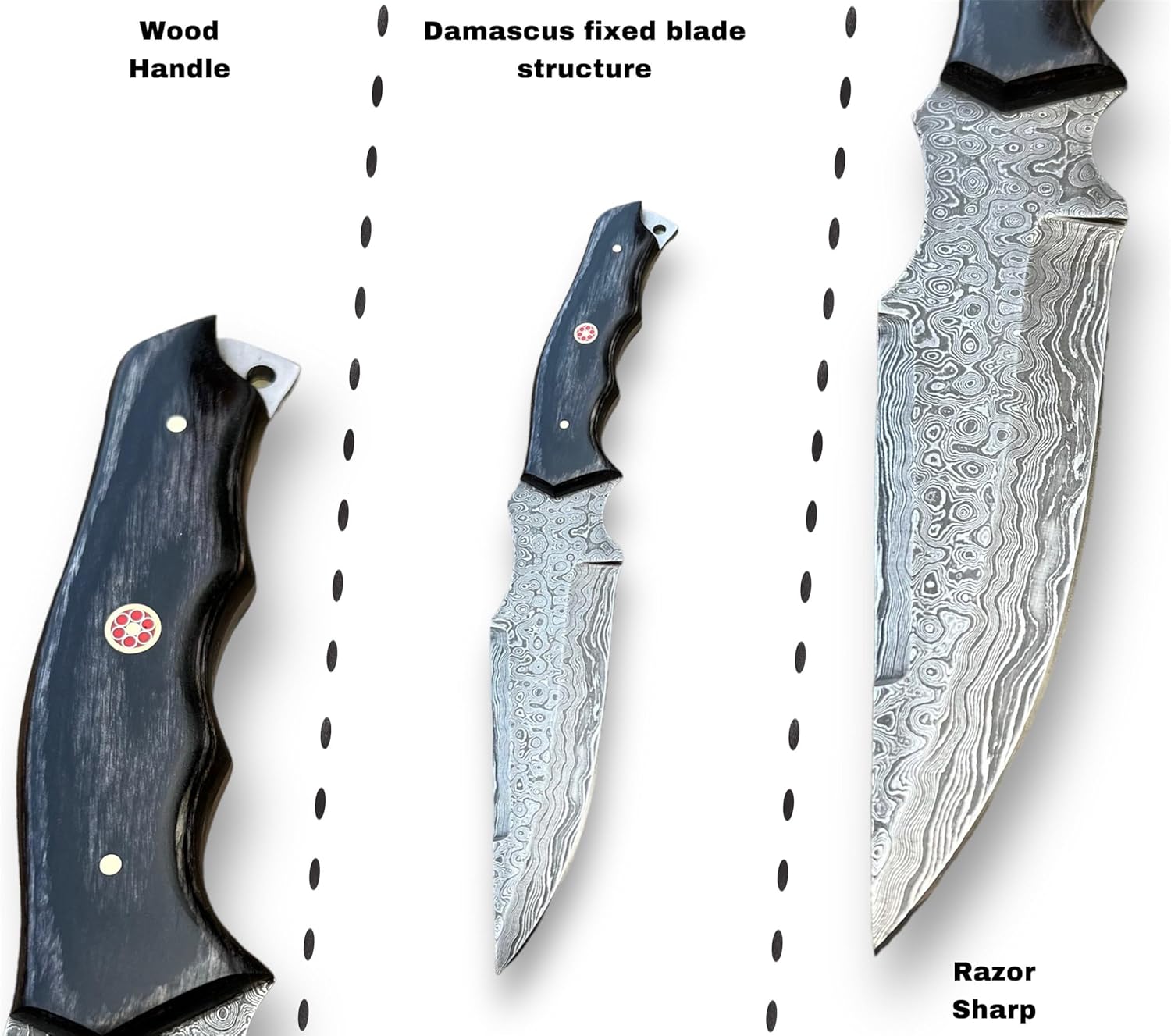 Damascus 10.7" Hunting Knife Shadow Olive Wood Handle
