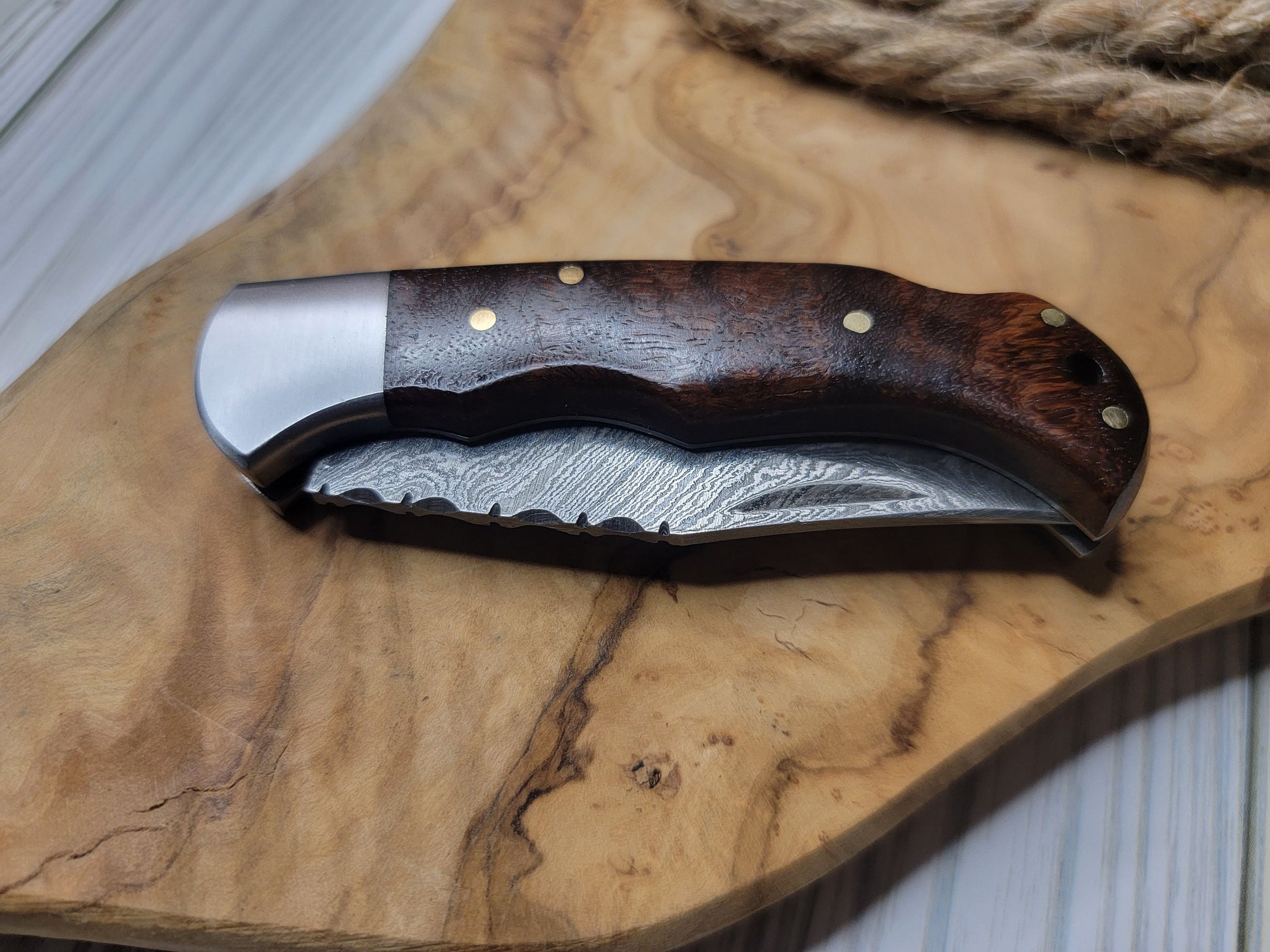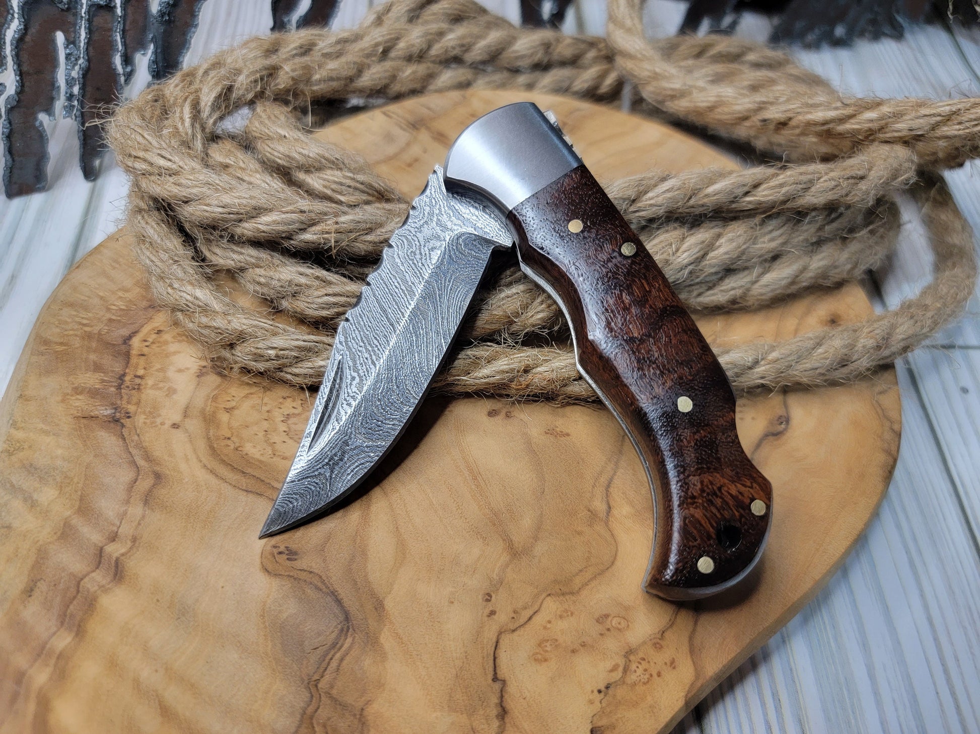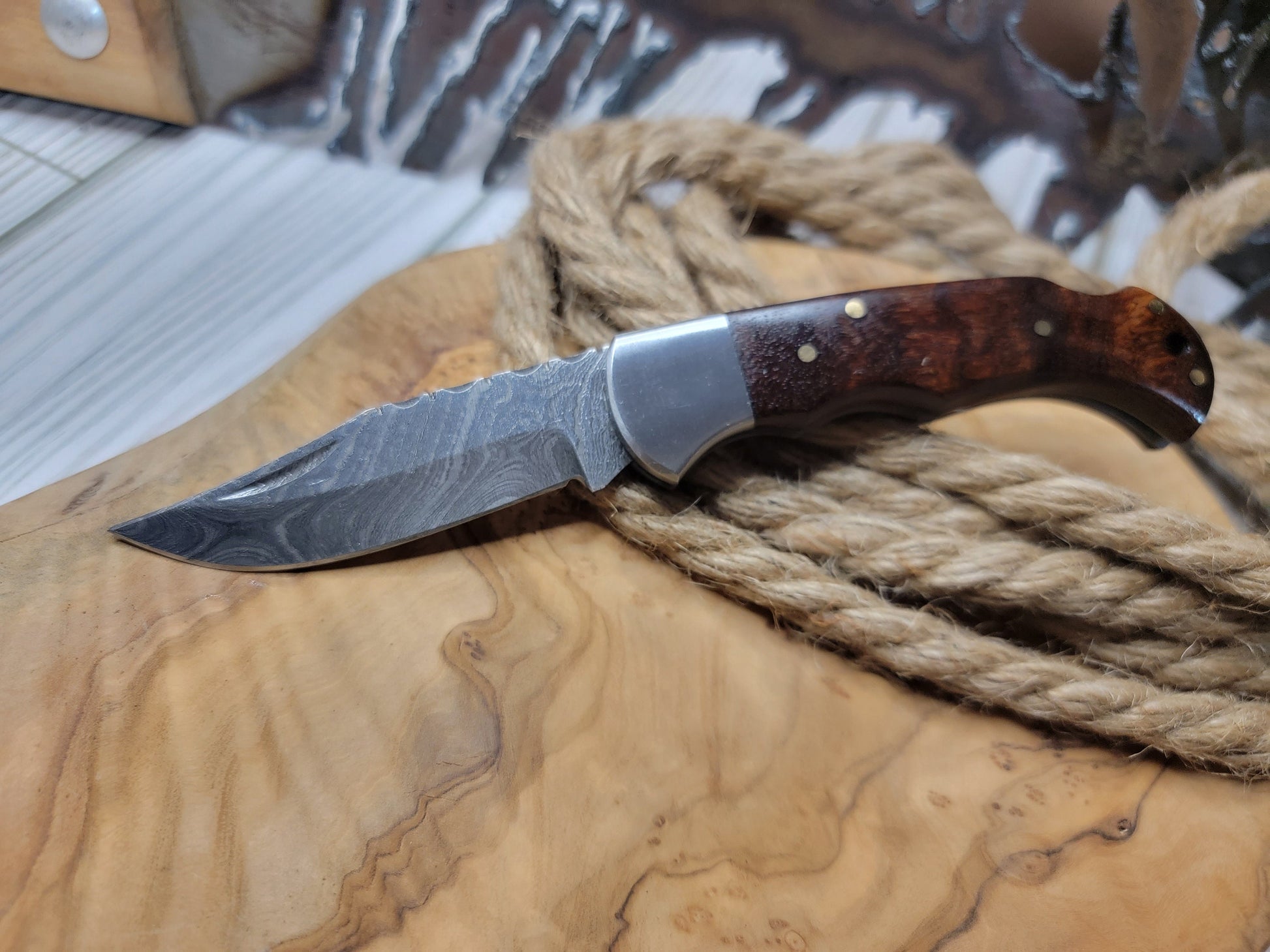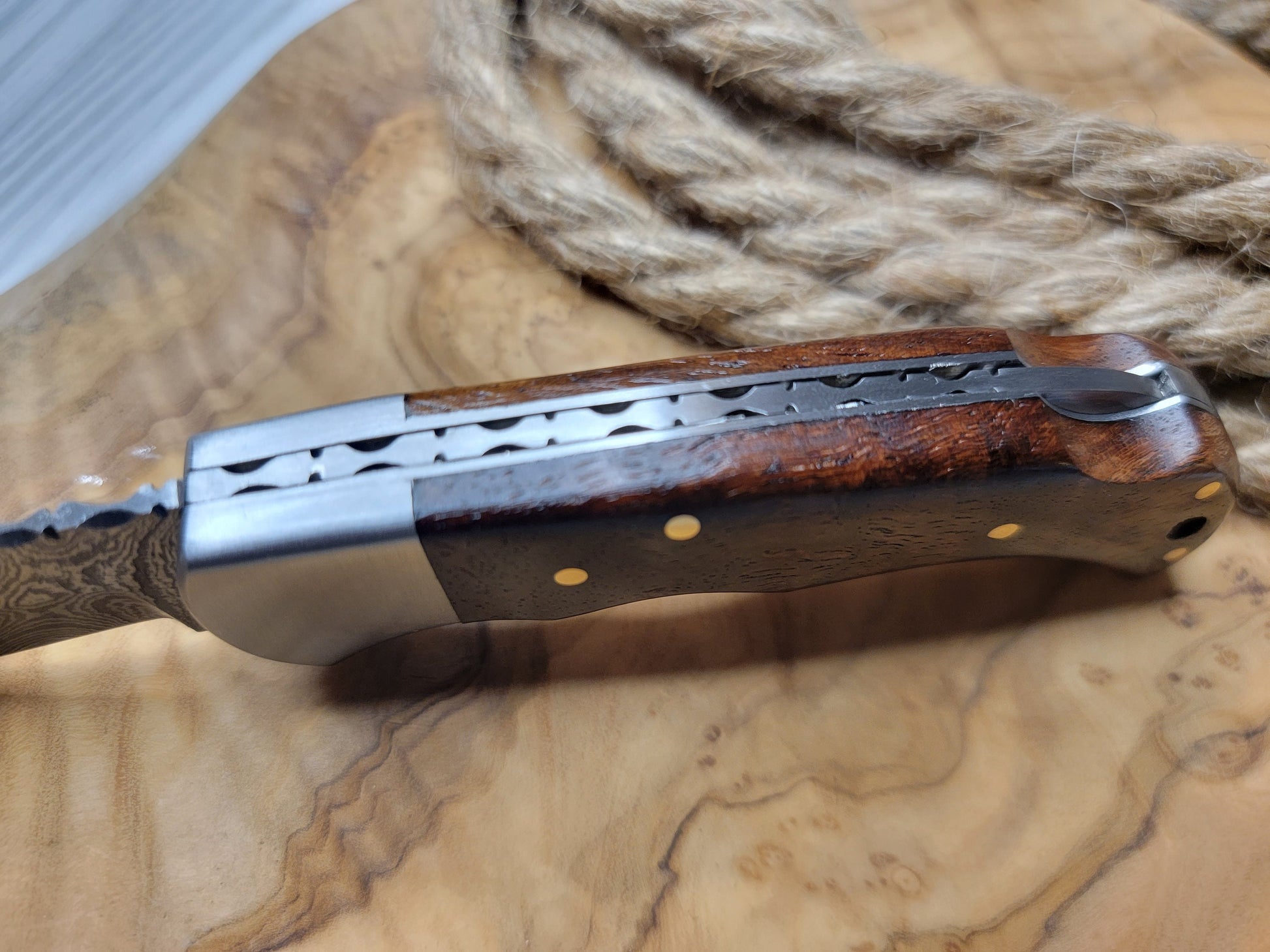 Rose Wood Handle 6.5" Damascus Folding Knife