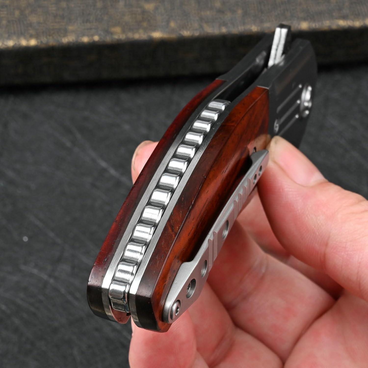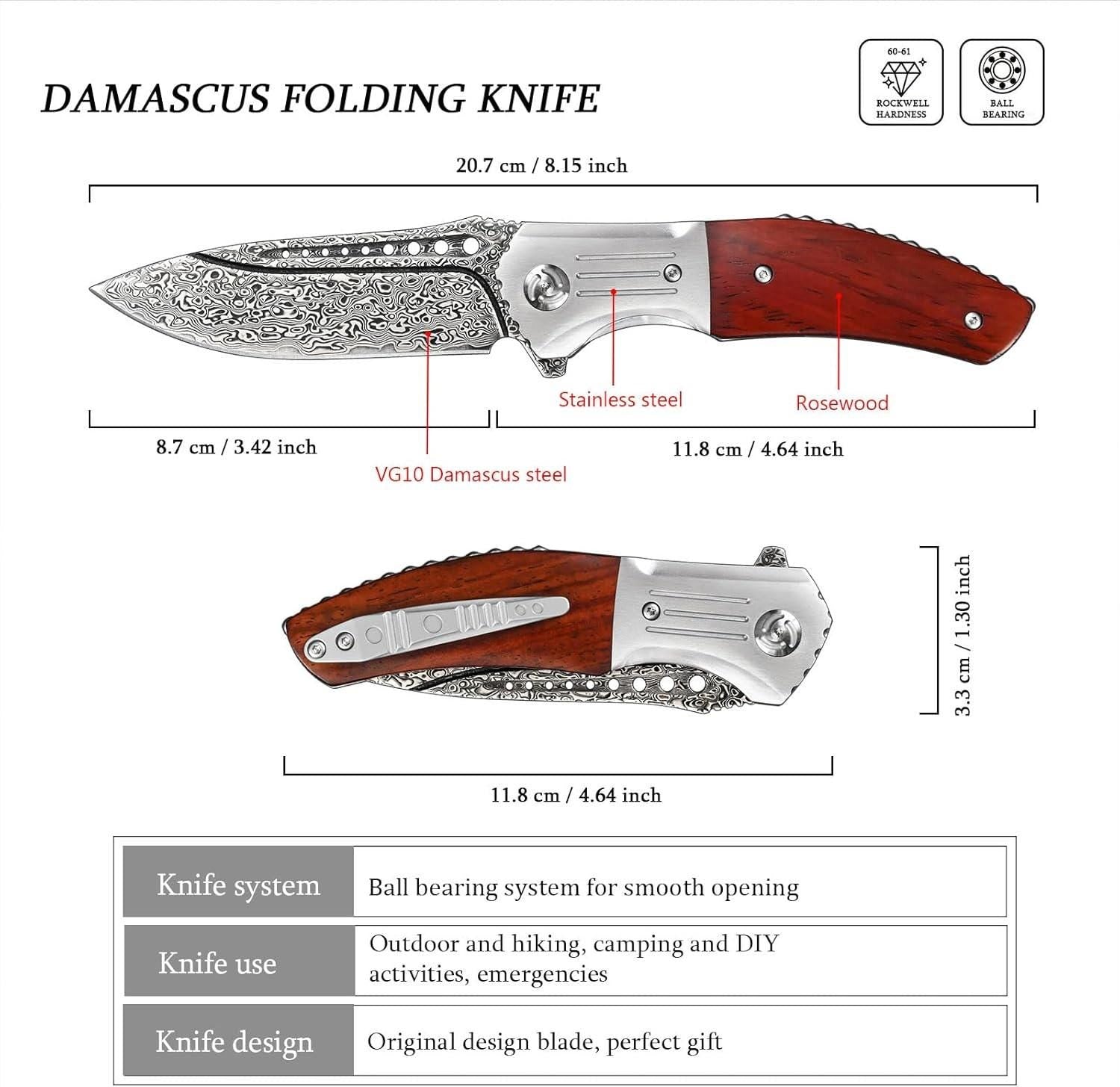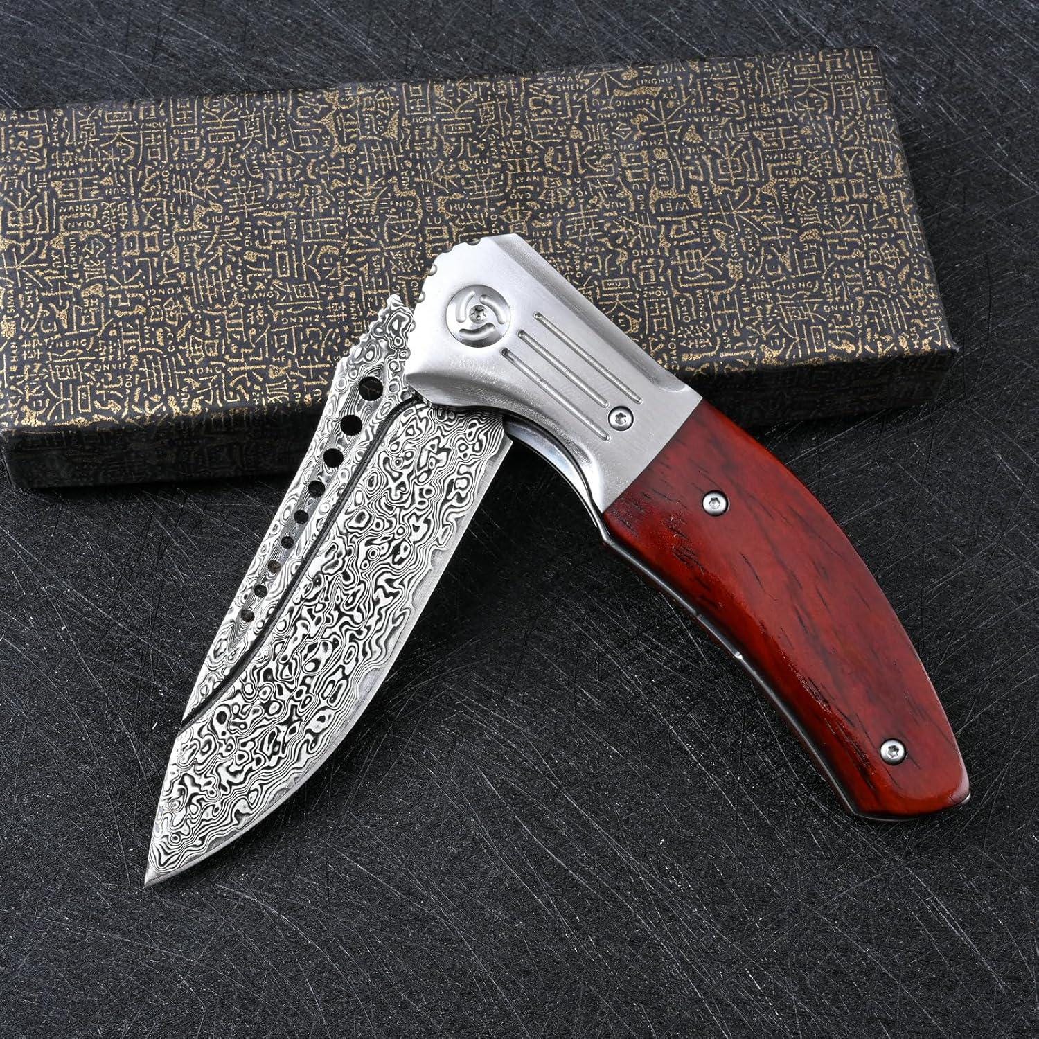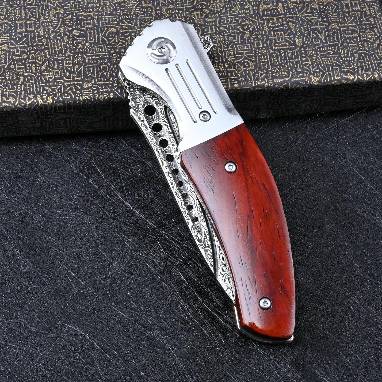 Large Rose Wood Damascus Pocket Knife