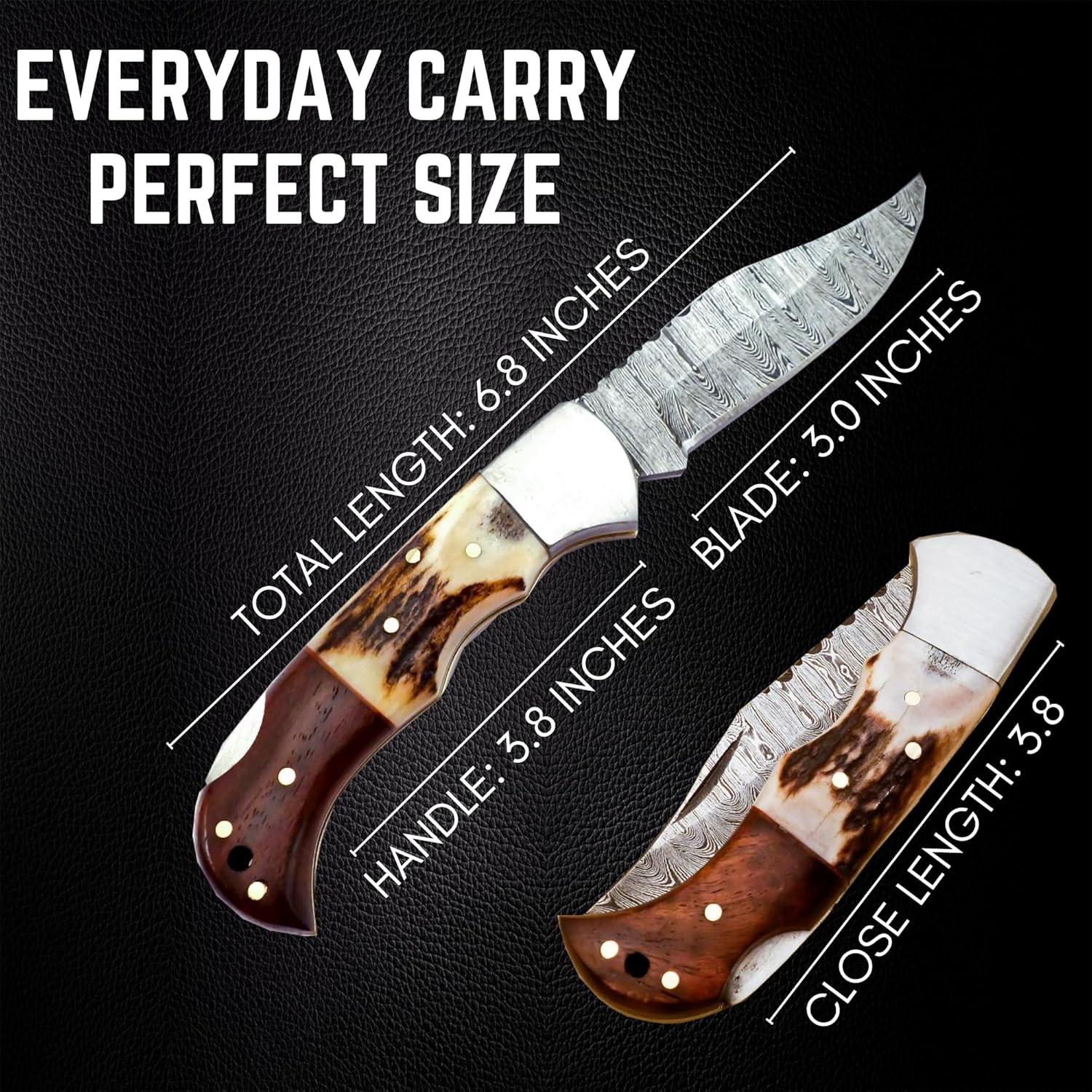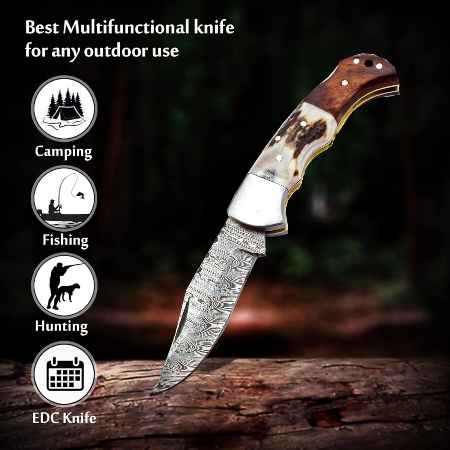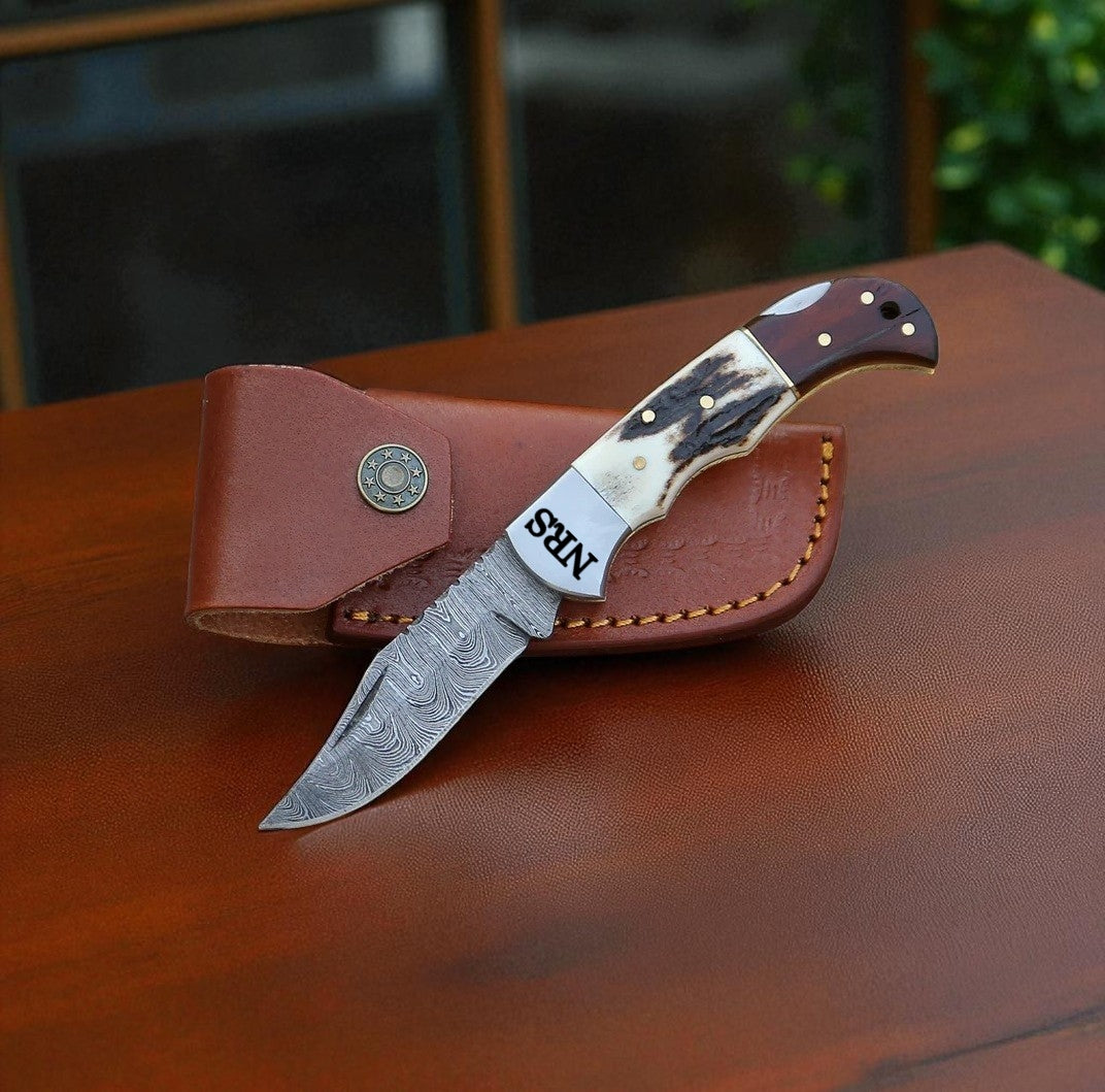 Deer Antler & Rosewood Handle 6.5" Damascus Pocket Knife
