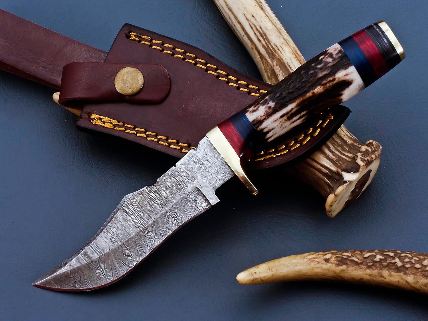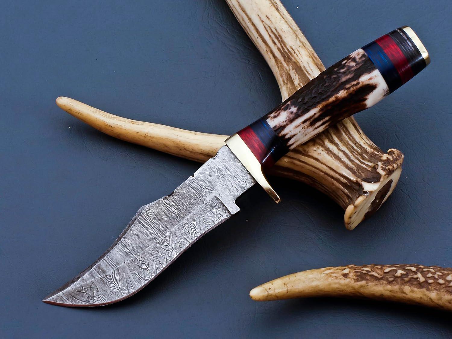 Engraved Damascus Antler Hunting Knife – Custom Personalized Knife – Unique Groomsmen Gift, Fathers Day, Wedding Gifts, Collectible Knife