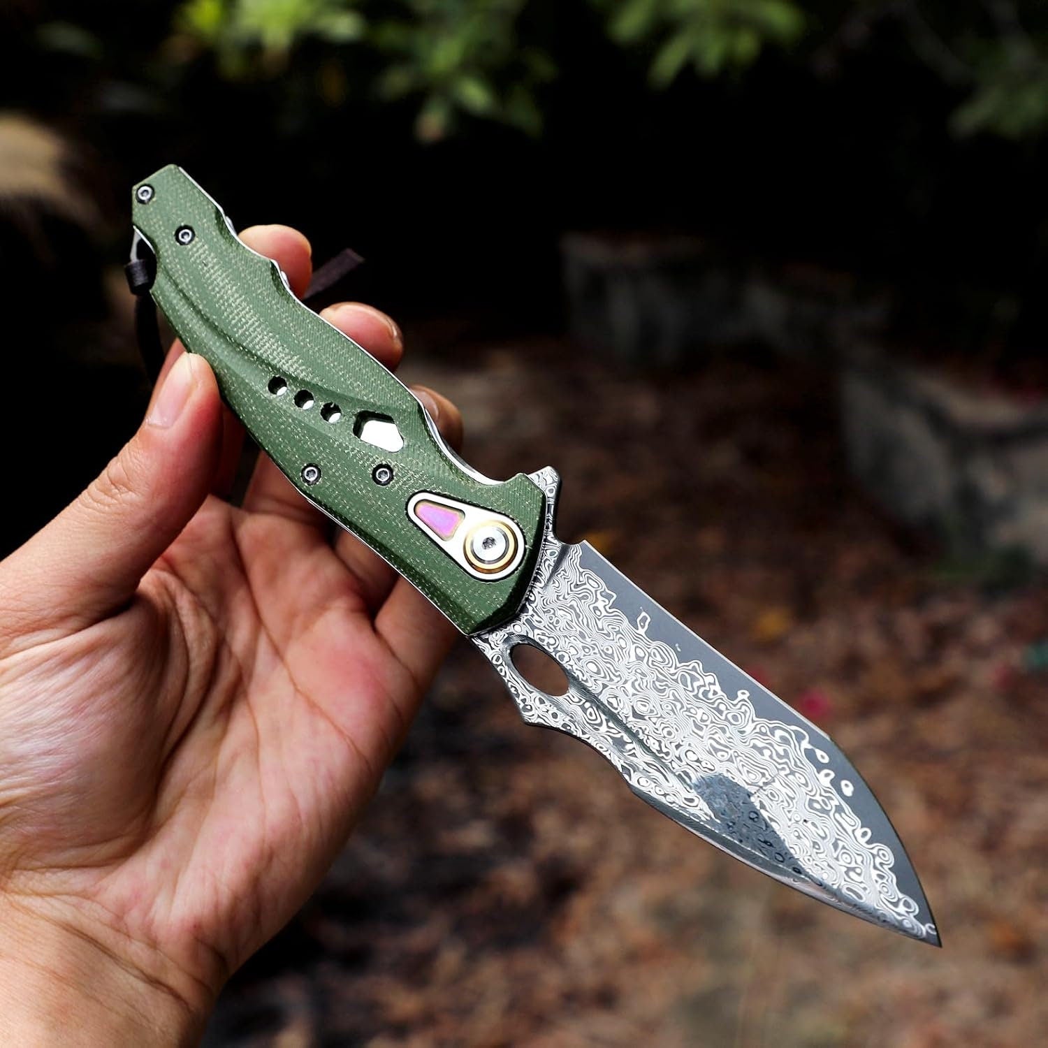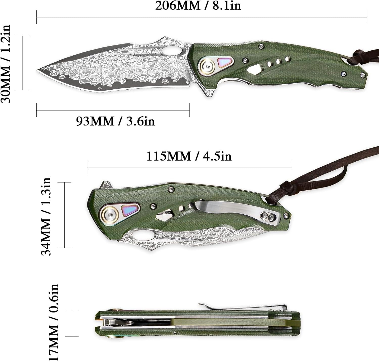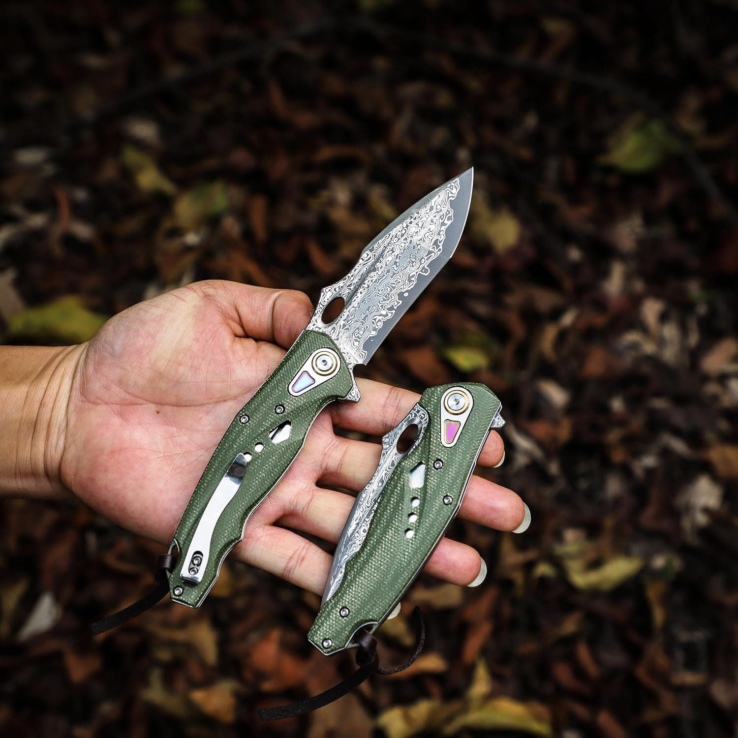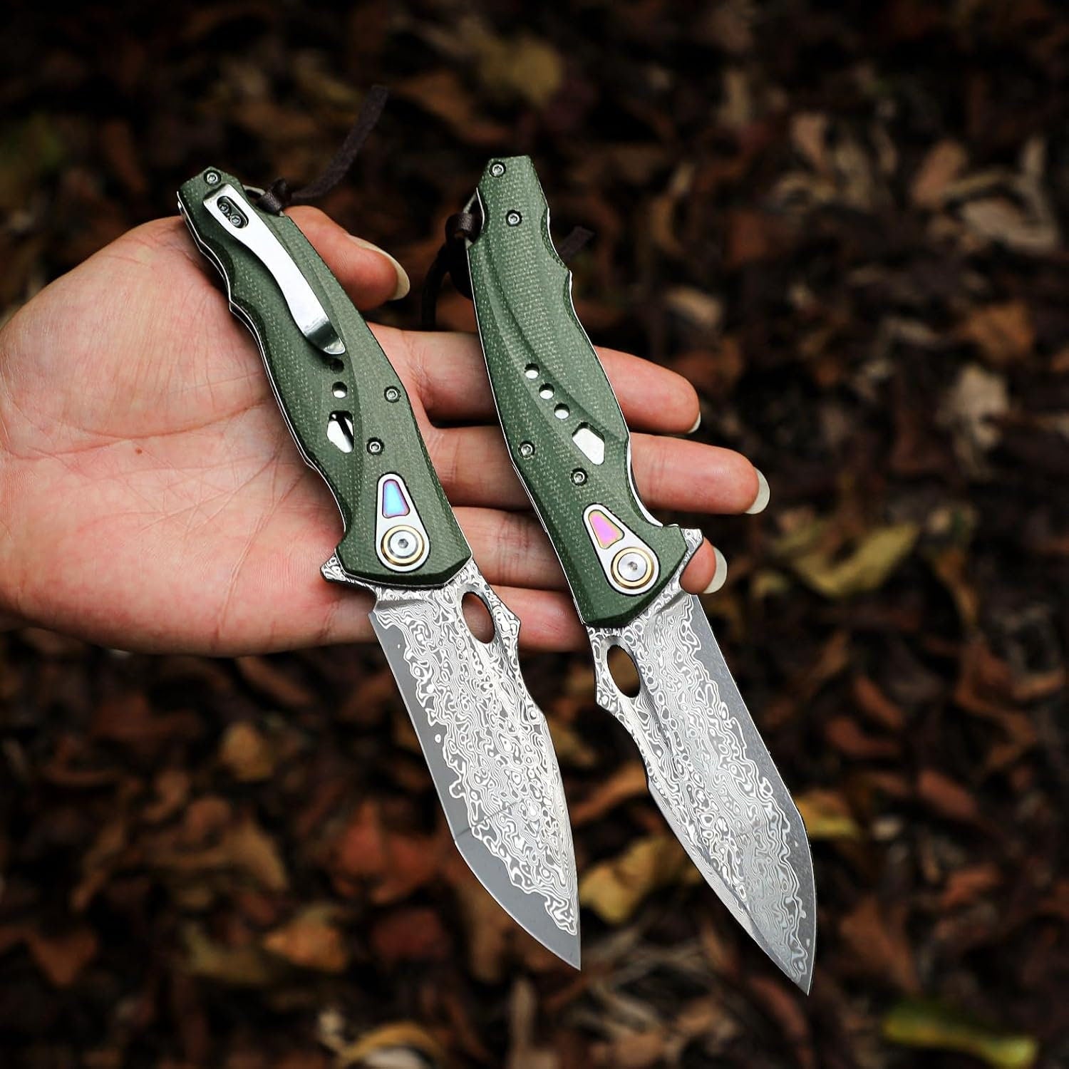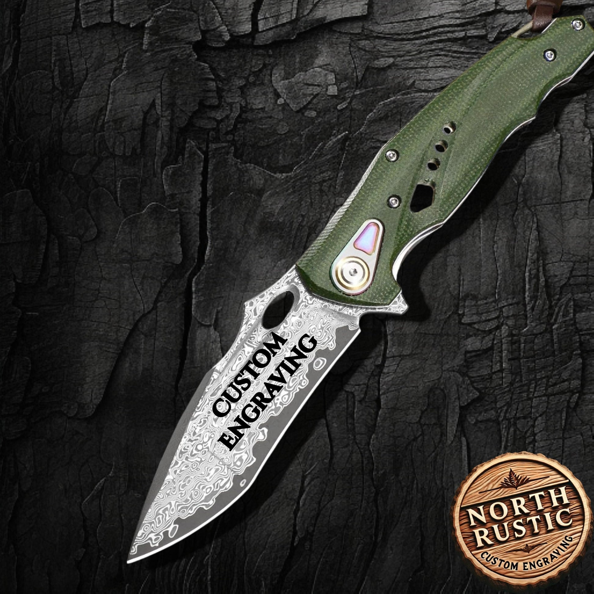 Engraved Damascus Folding Knife | Personalized Pocket Knife | Groomsmen Wedding Gifts | Husband Gift For Anniversary | Gift For Dad