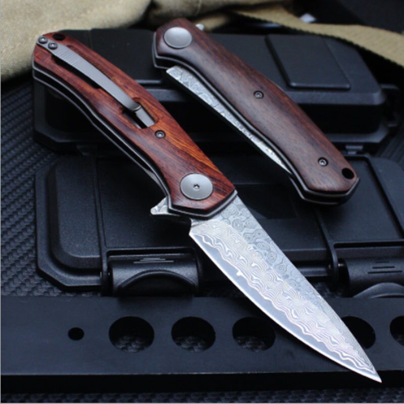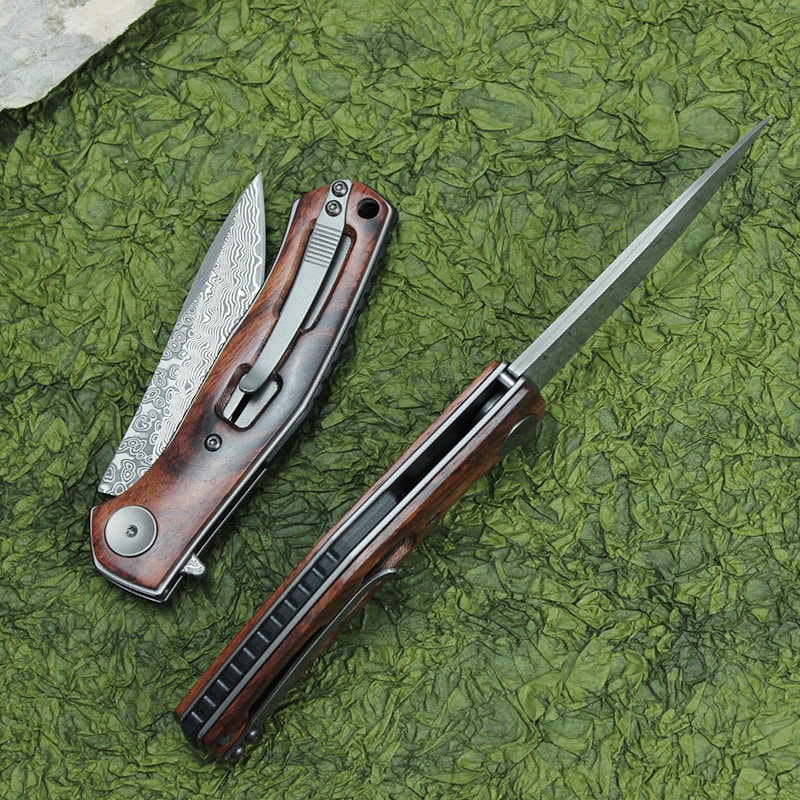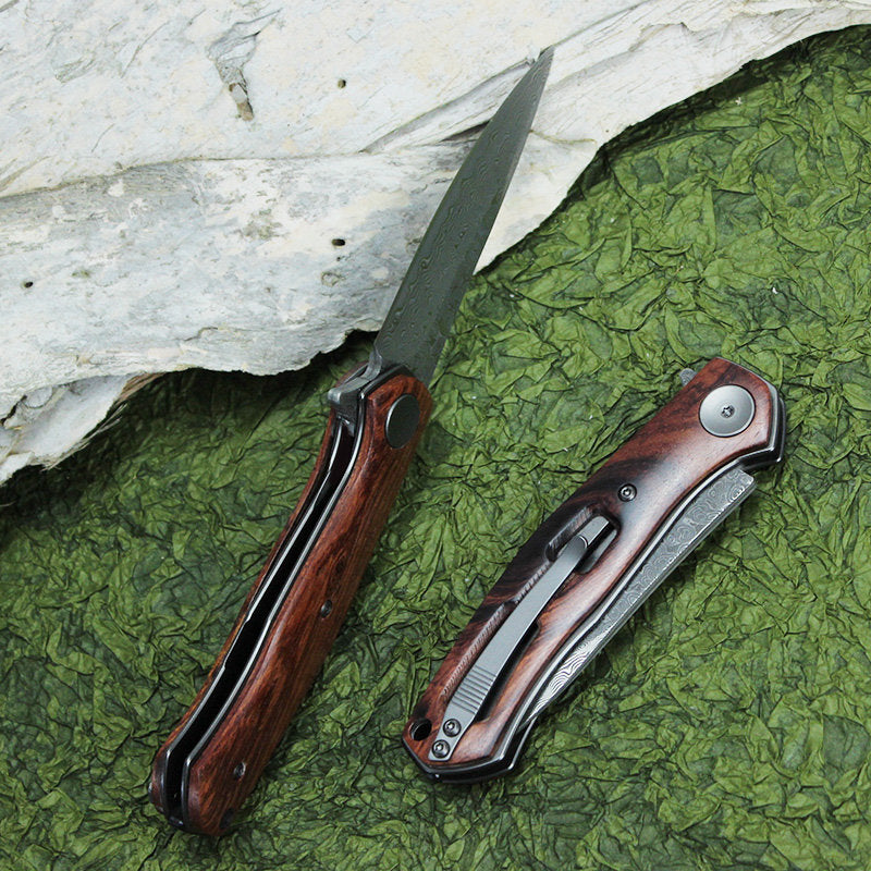 Rosewood Handle 7.52" Damascus Pocket Knife