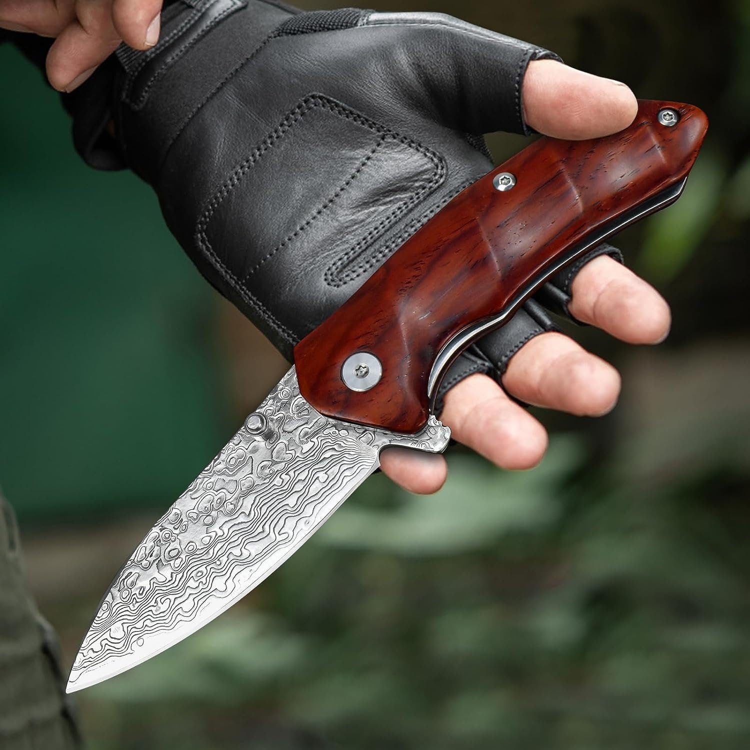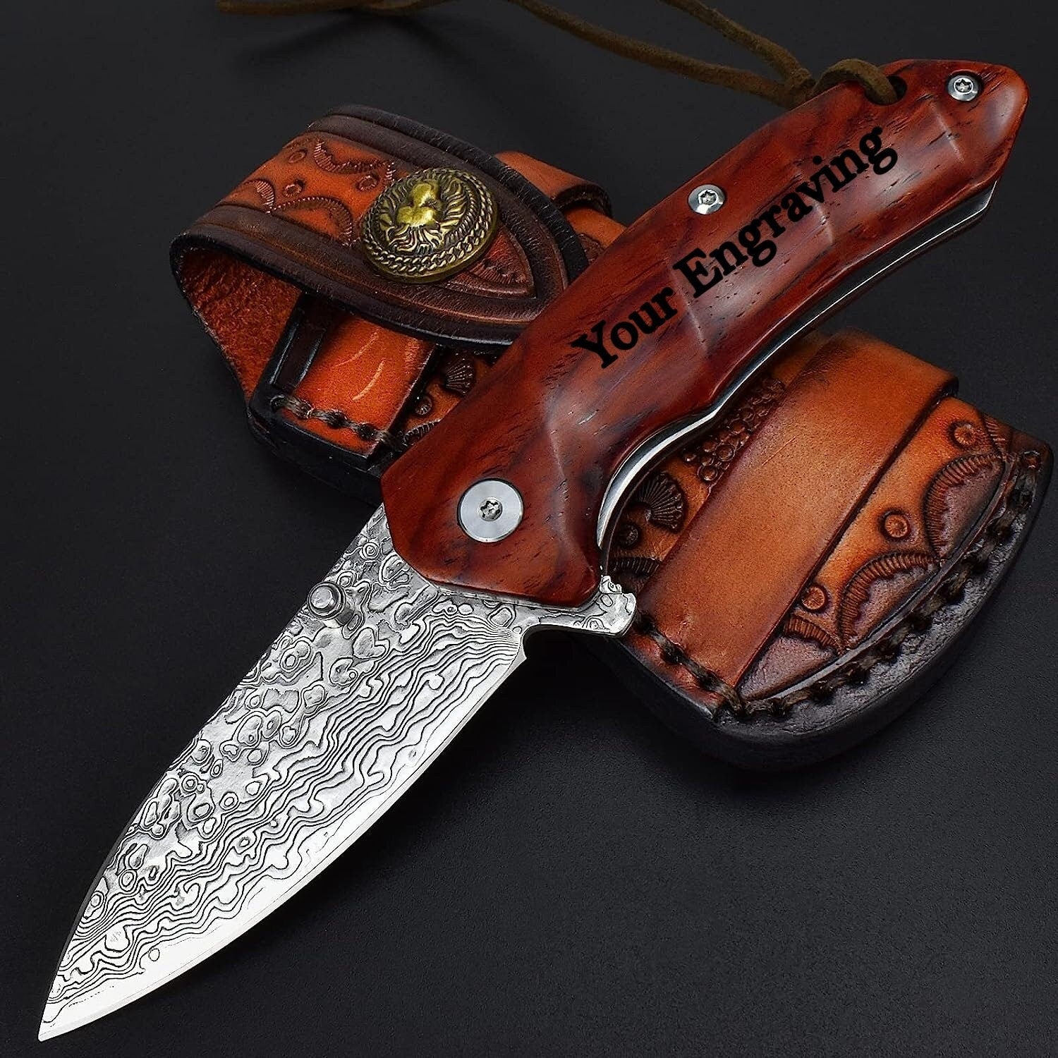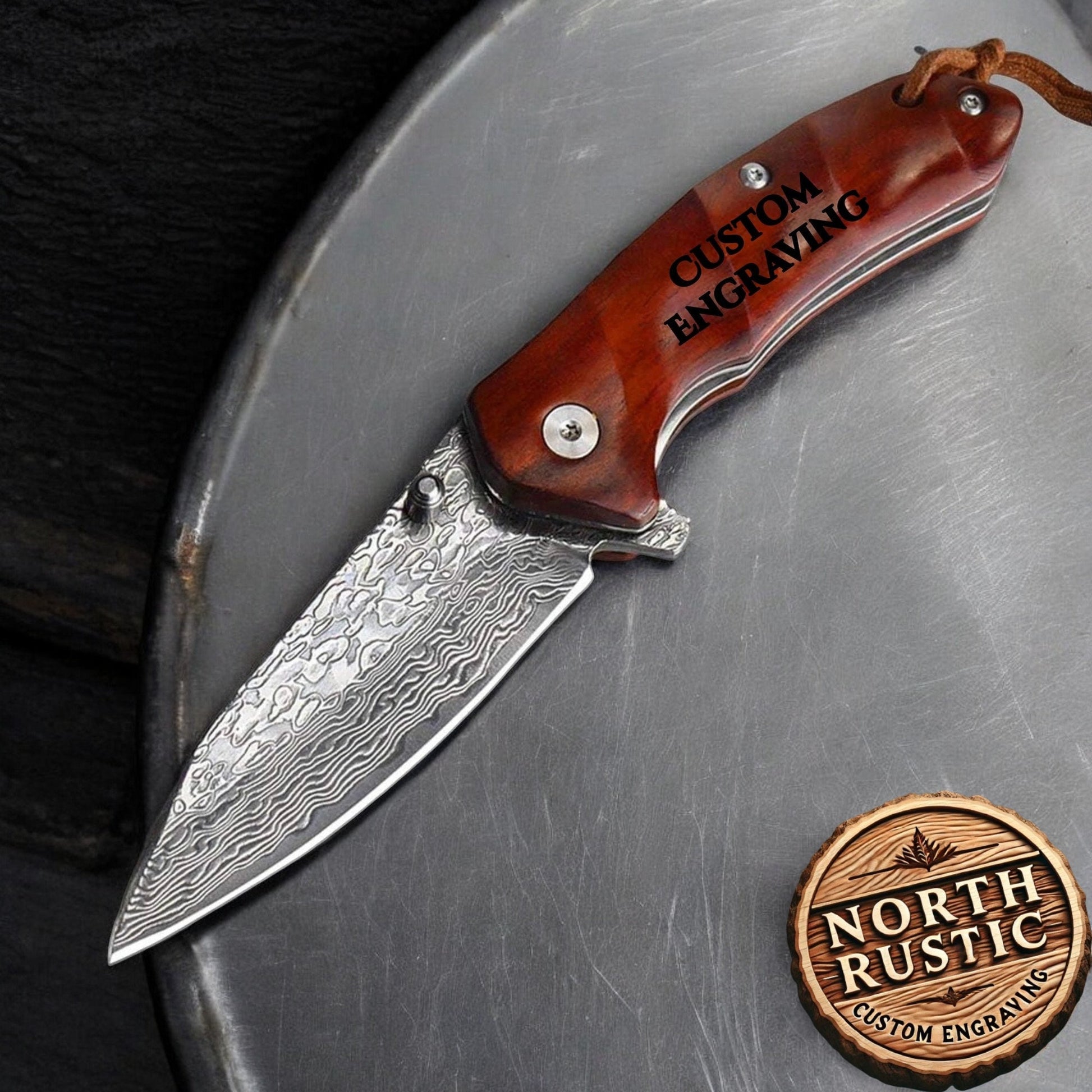 Engraved Damascus Pocket Knife, Gift For Him, Personalized Folding Knives, Husband Anniversary Gift, Wedding Groomsmen Gifts Knife NR19