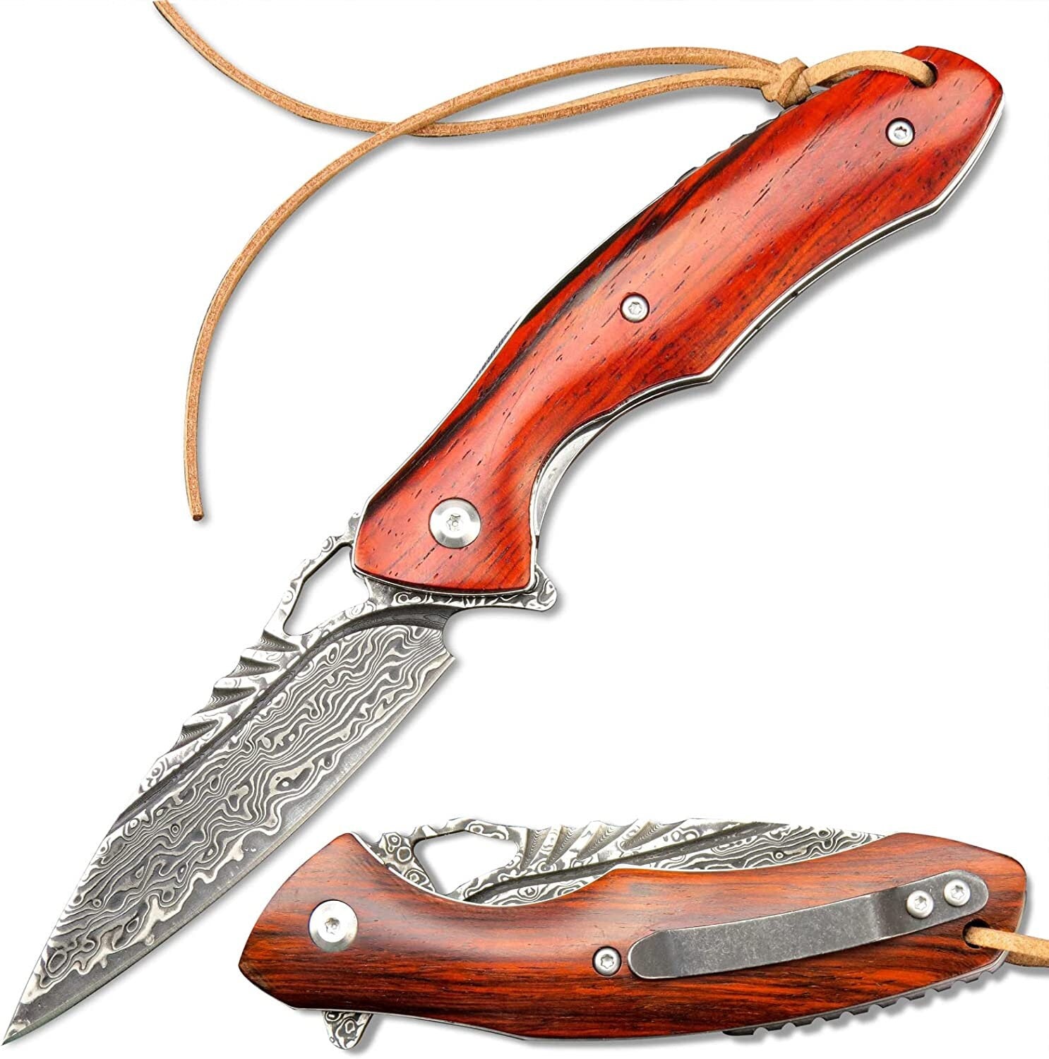 • Whether you're an avid outdoors enthusiast, a knife collector, or someone who appreciates the finer things in life, this Damascus Pocket Knife is a must-have addition to your collection. It's not just a tool; it's a statement of style and quality. Elevate your everyday carry with this stunning piece today!