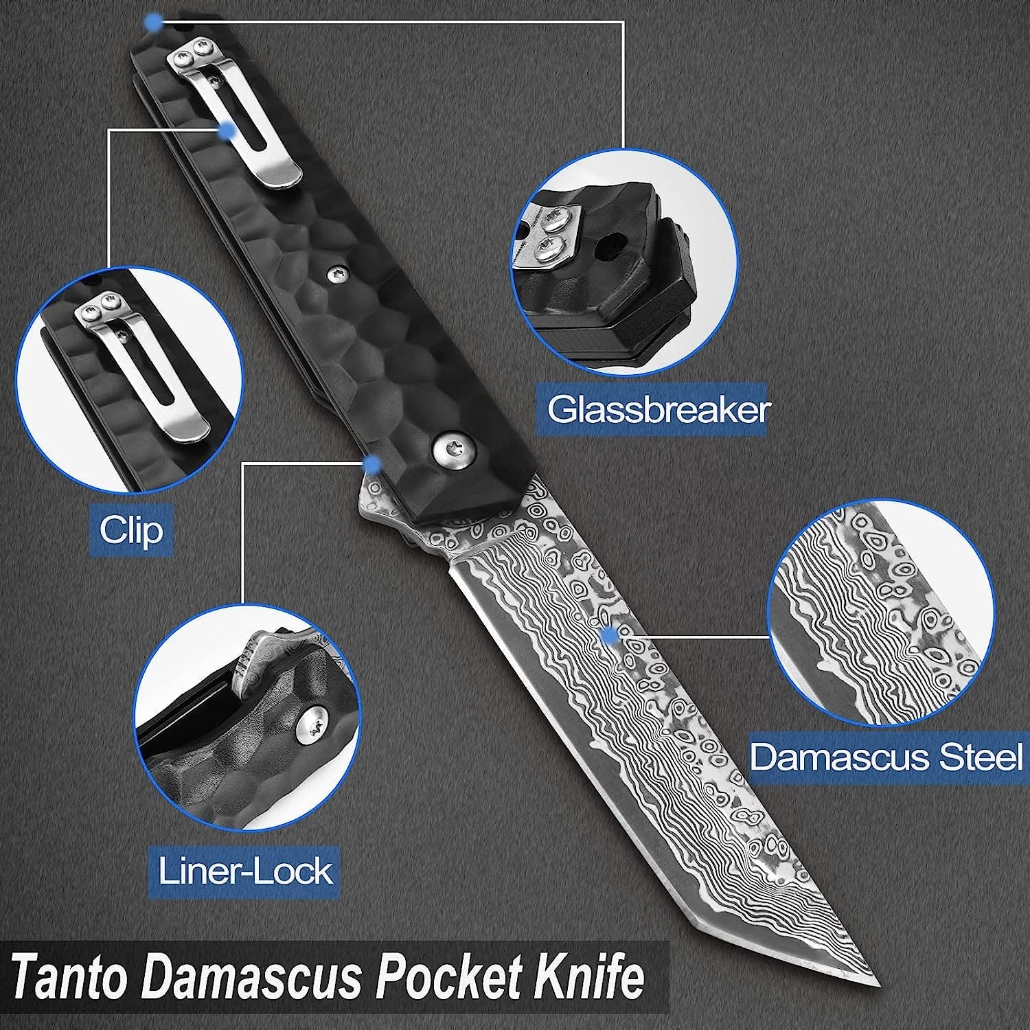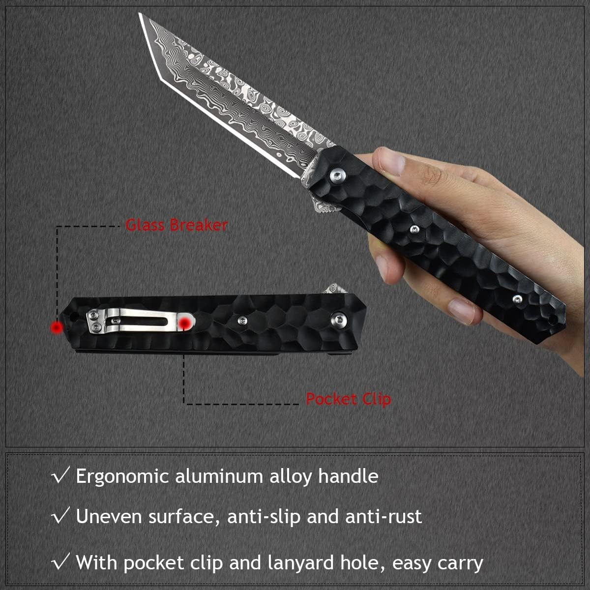 Engraved Damascus Pocket Knife, Personalized Folding Knife, Aluminum Alloy Handle Knife, Wedding Anniversary Father Husband Gift | NR29