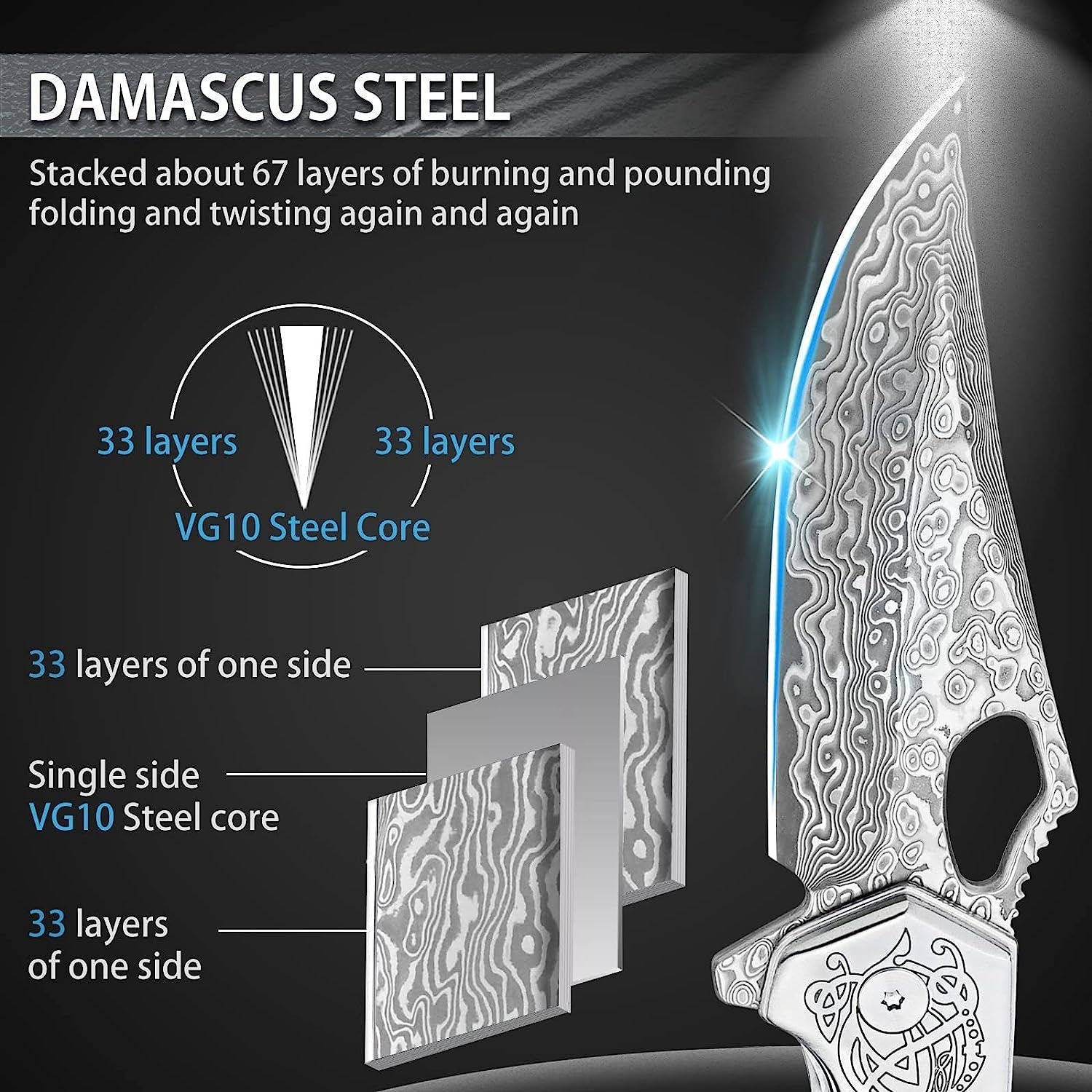 • Whether you're an avid outdoors enthusiast, a knife collector, or someone who appreciates the finer things in life, this Damascus Pocket Knife is a must-have addition to your collection. It's not just a tool; it's a statement of style and quality. Elevate your everyday carry with this stunning piece today!