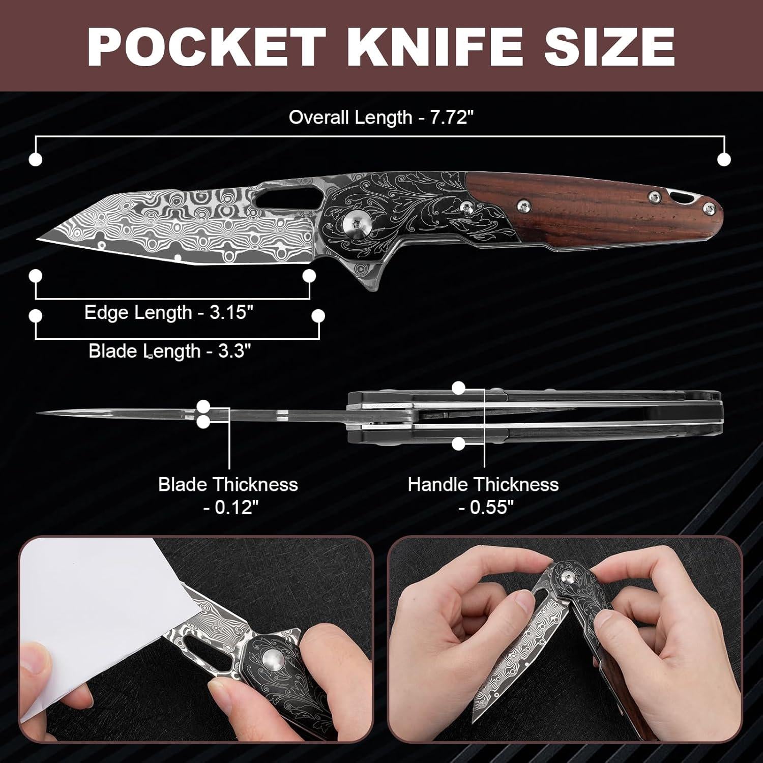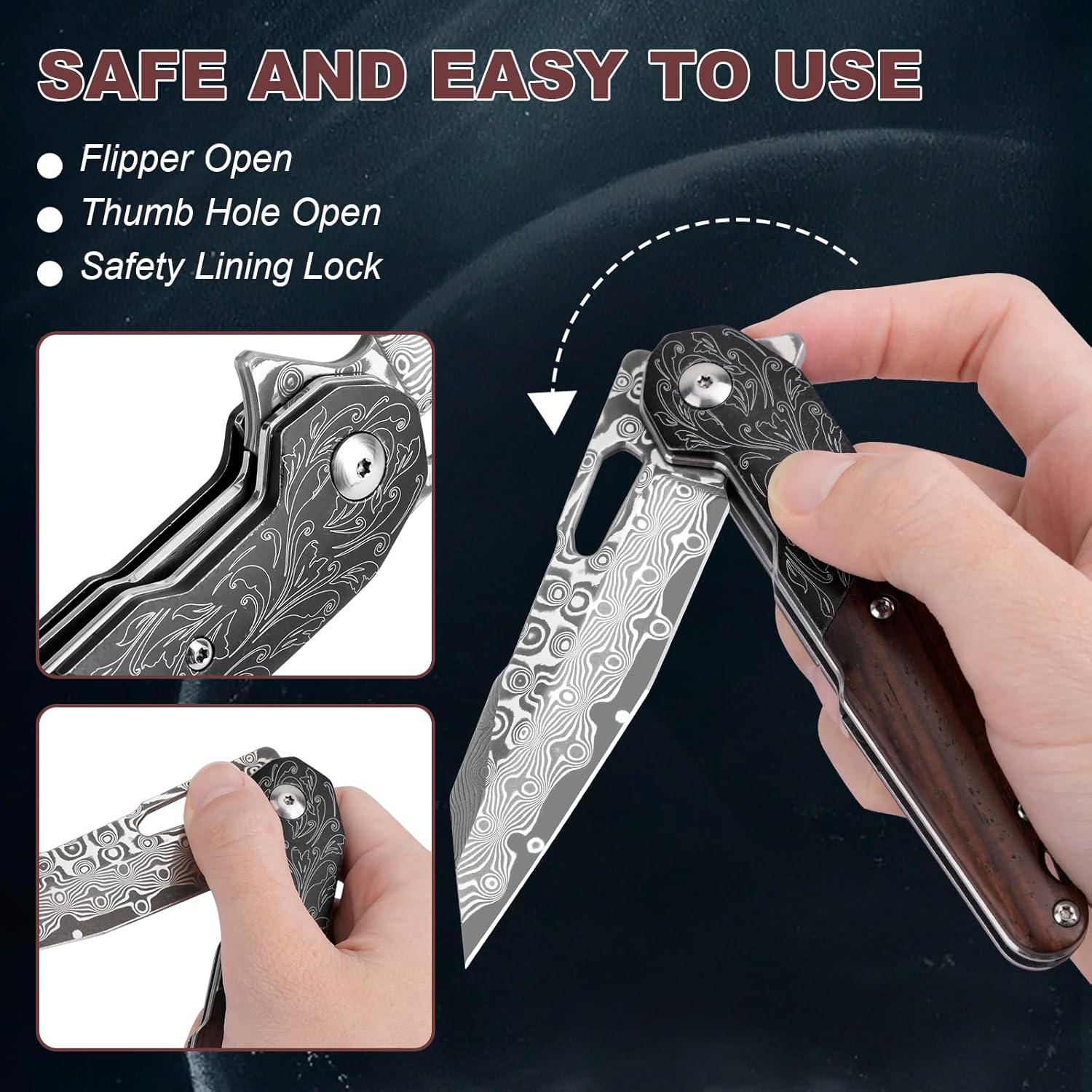 • Compact and Versatile: This pocket knife is designed with everyday carry in mind. Its compact size allows it to slip easily into your pocket, making it the perfect companion for camping, hiking, fishing, or simply handling everyday tasks.