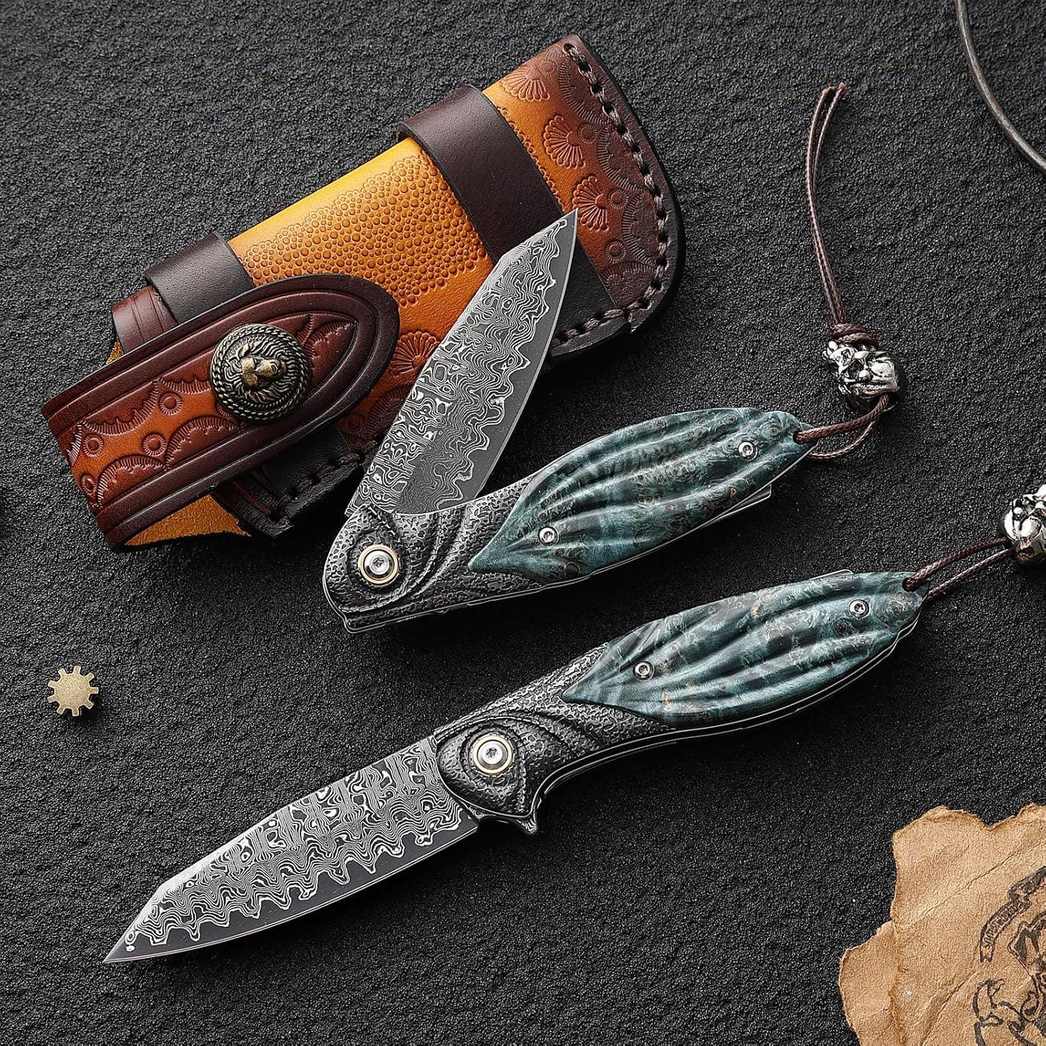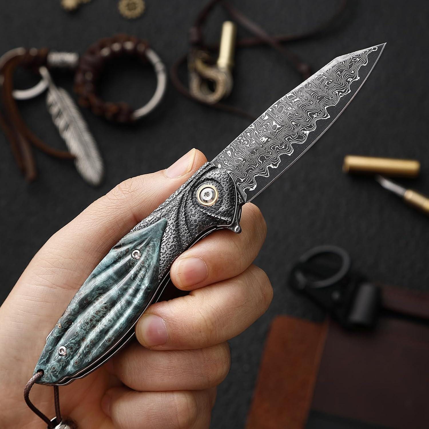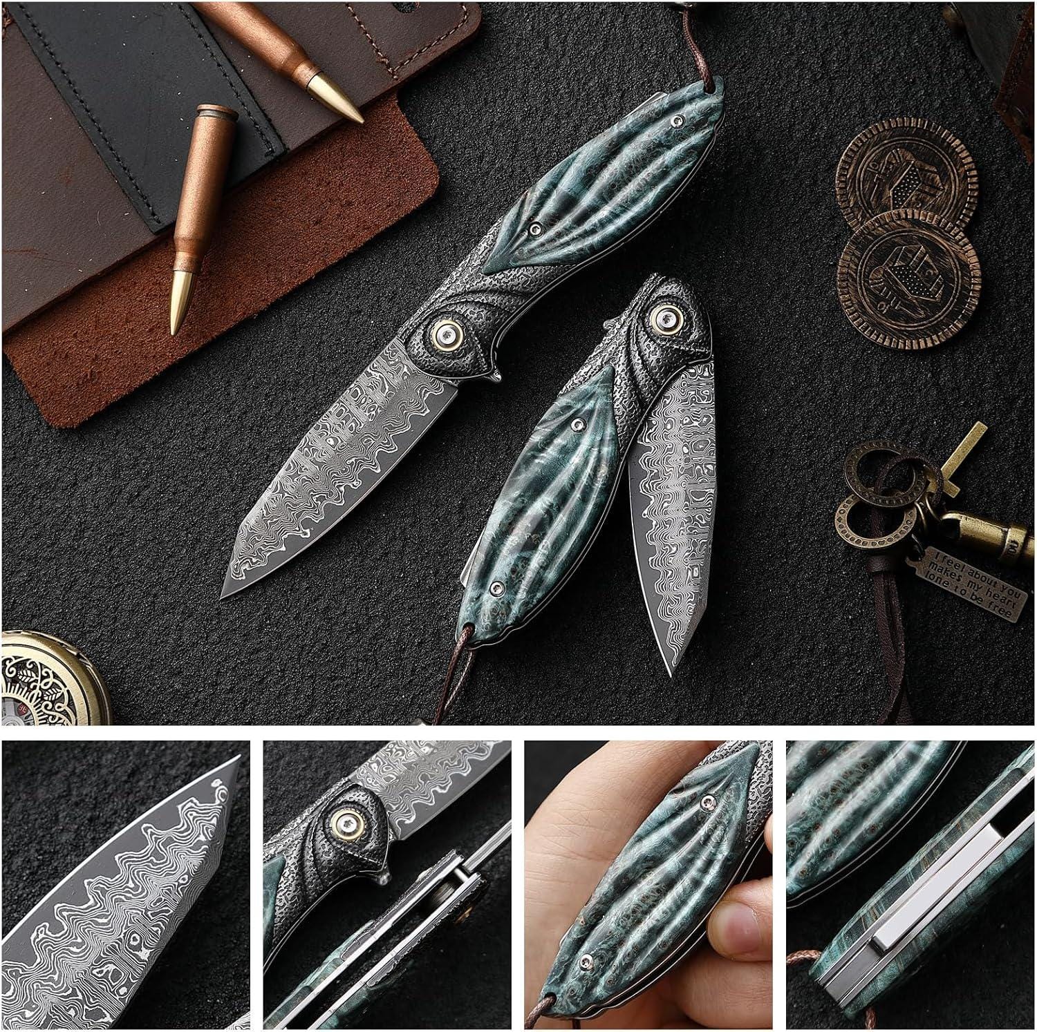 • Whether you're an avid outdoors enthusiast, a knife collector, or someone who appreciates the finer things in life, this Damascus Pocket Knife is a must-have addition to your collection. It's not just a tool; it's a statement of style and quality. Elevate your everyday carry with this stunning piece today!
