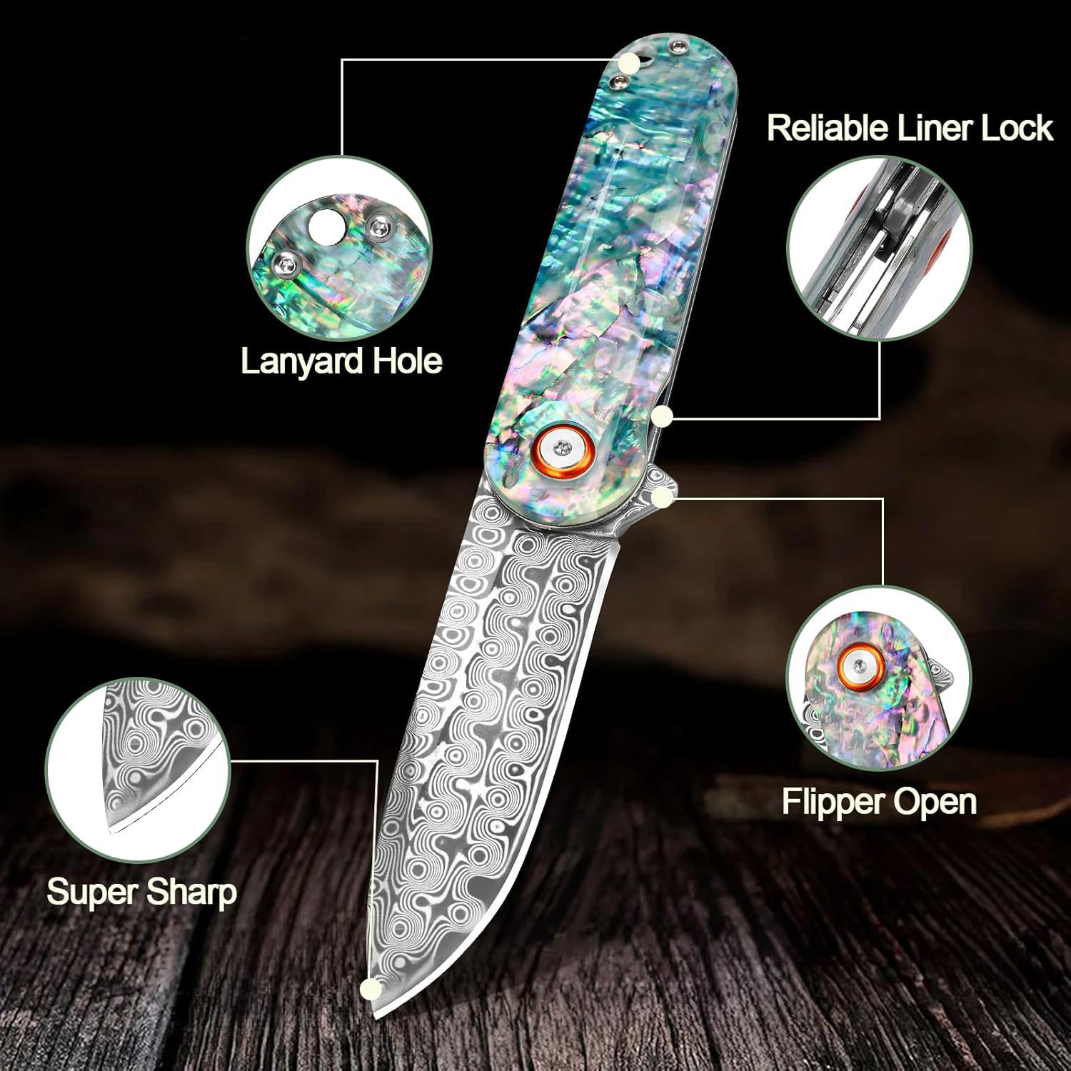 Whether you're an avid outdoors enthusiast, a knife collector, or someone who appreciates the finer things in life, our Abalone Handle Damascus Pocket Knife is a must-have addition to your collection. It's not just a tool; it's a statement of style and quality. Elevate your everyday carry with this stunning piece today!