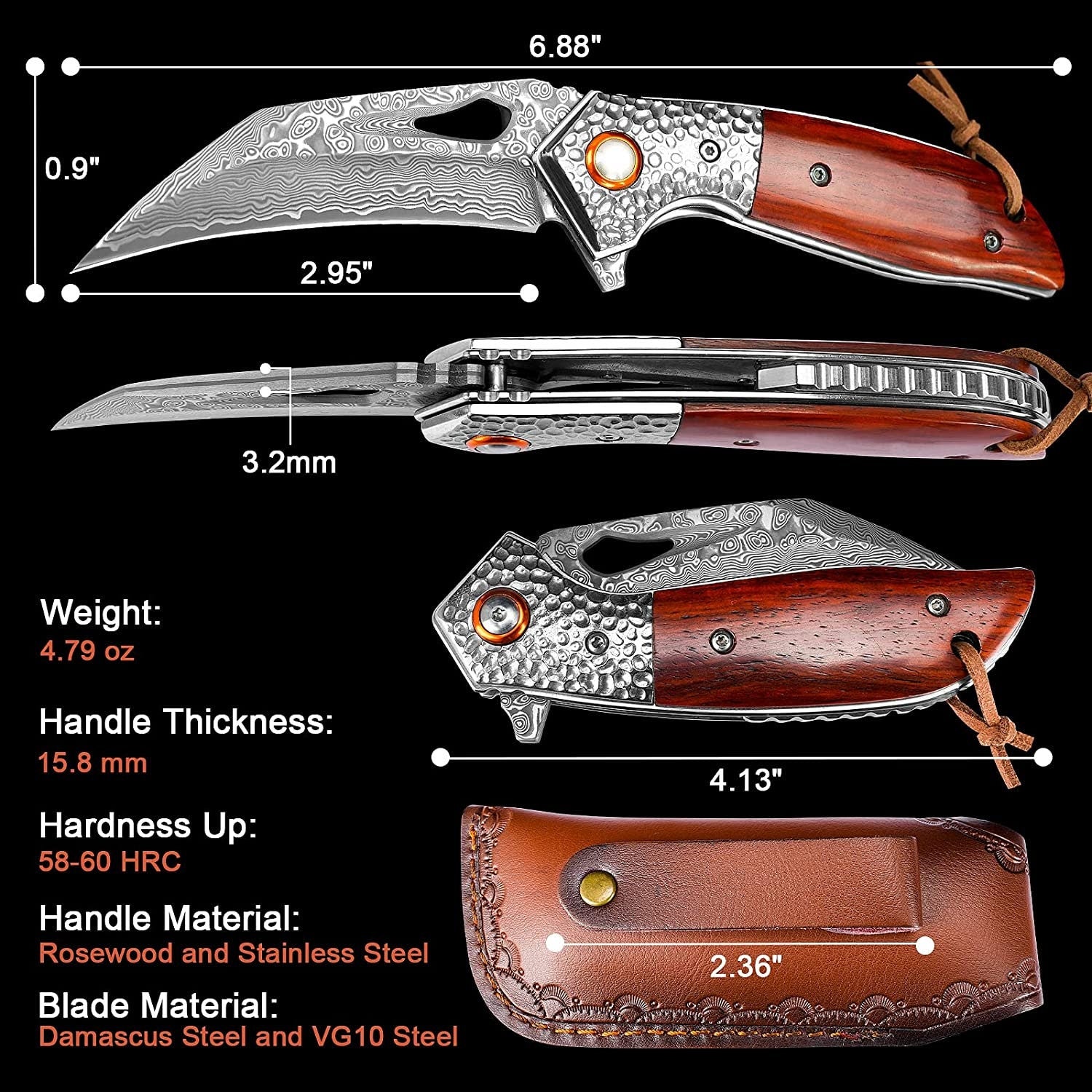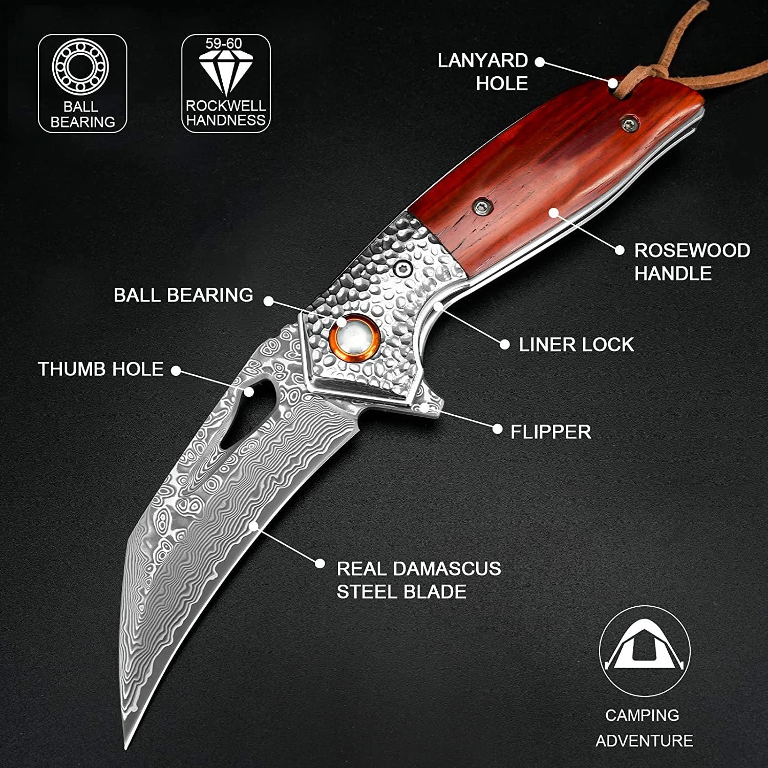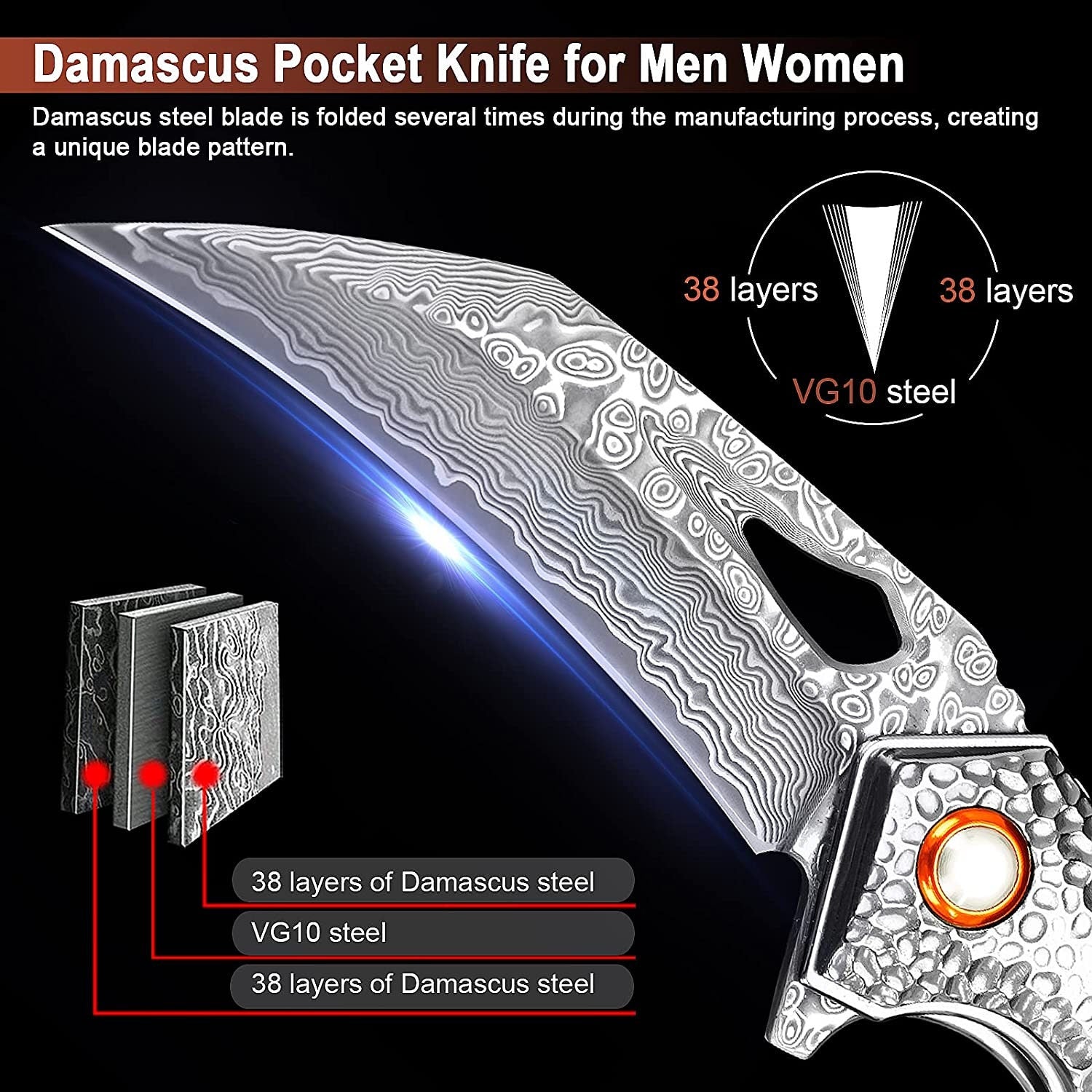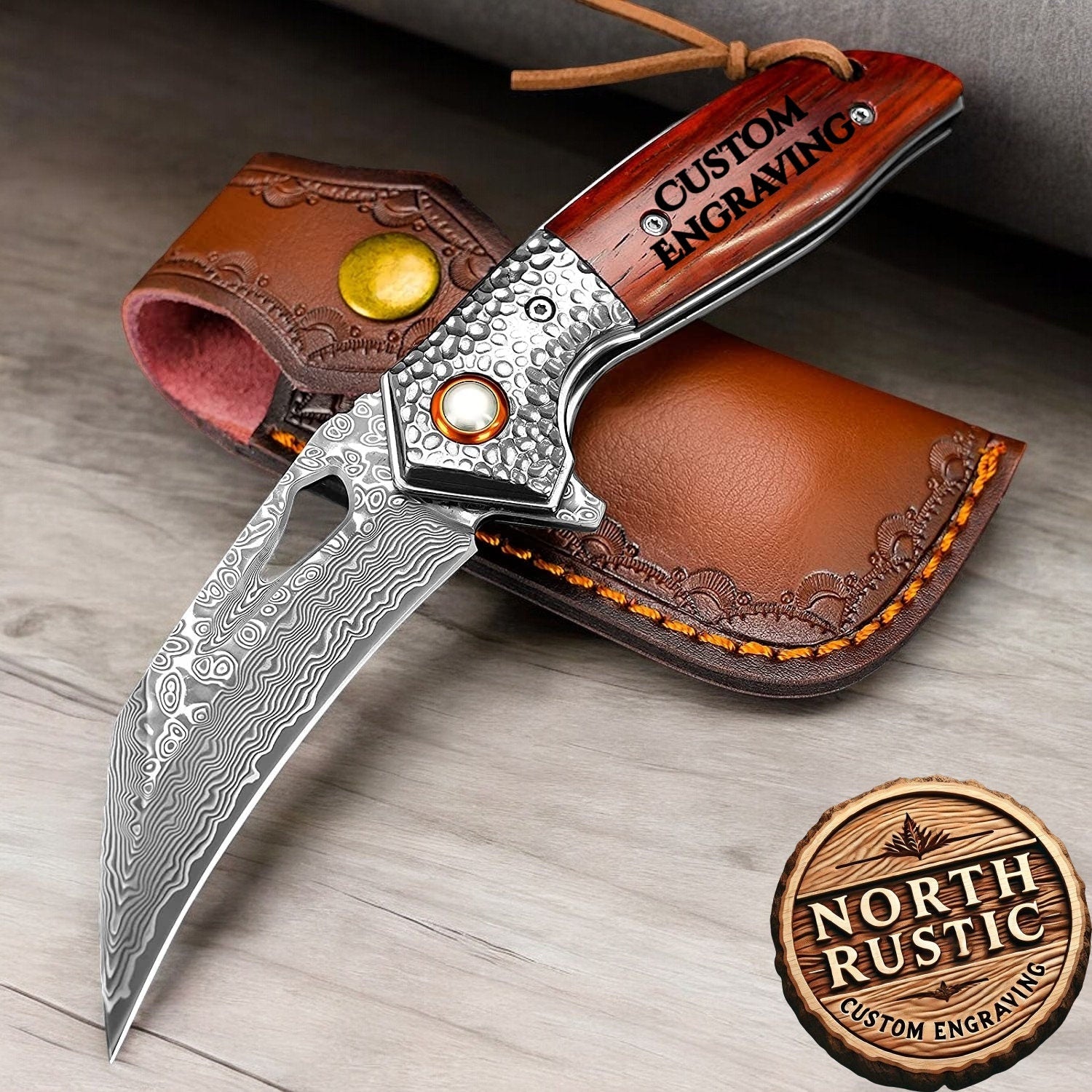 Engraved Pocket Knife, Gift For Him Personalized, Damascus Folding Karambit, Husband Anniversary Gift, Wedding Groomsmen Knives, VP109