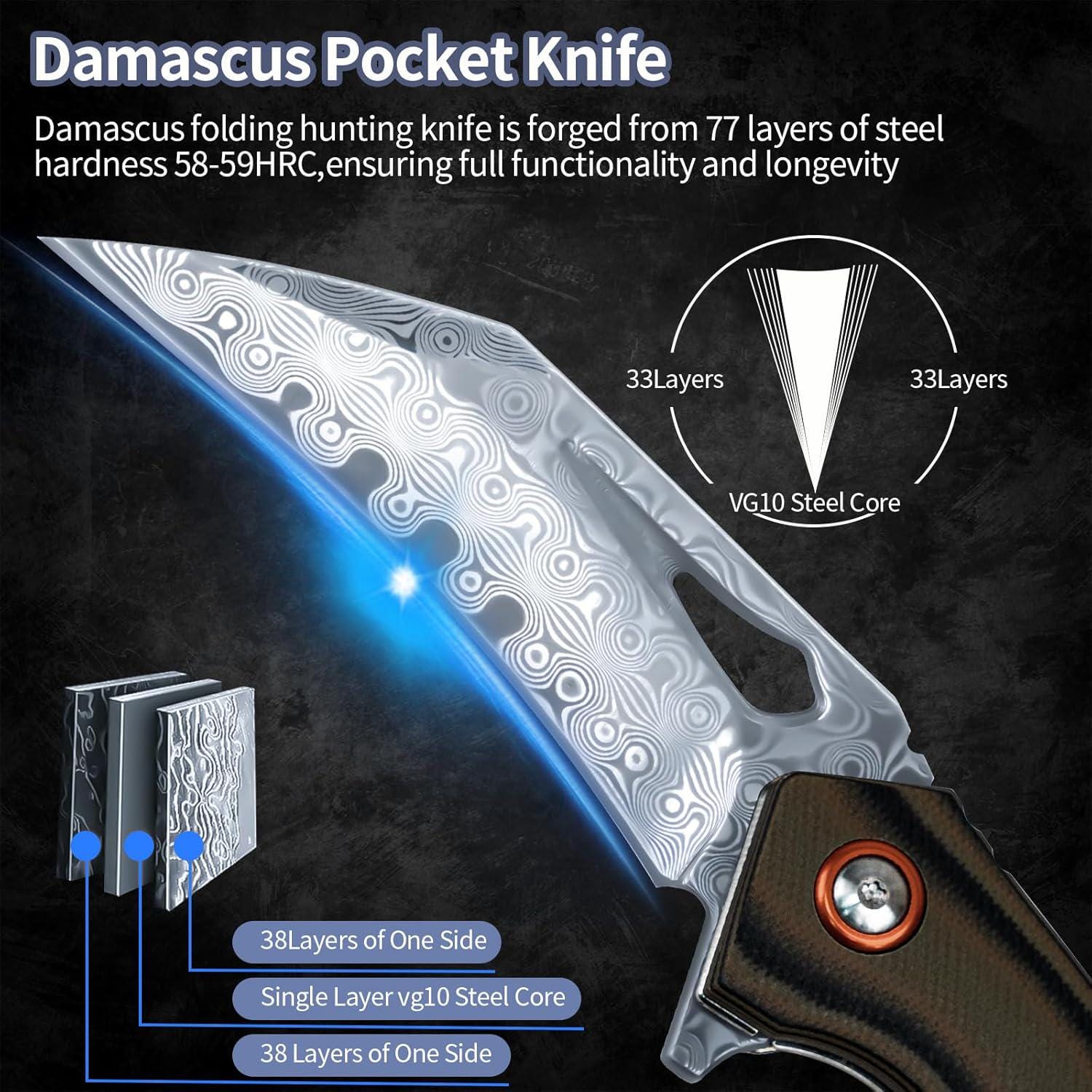 Engraved Pocket Knife Gift For Him, Personalized Karambit Damascus Folding, Husband Anniversary Gift, Wedding Groomsmen, G10 Handle Knife