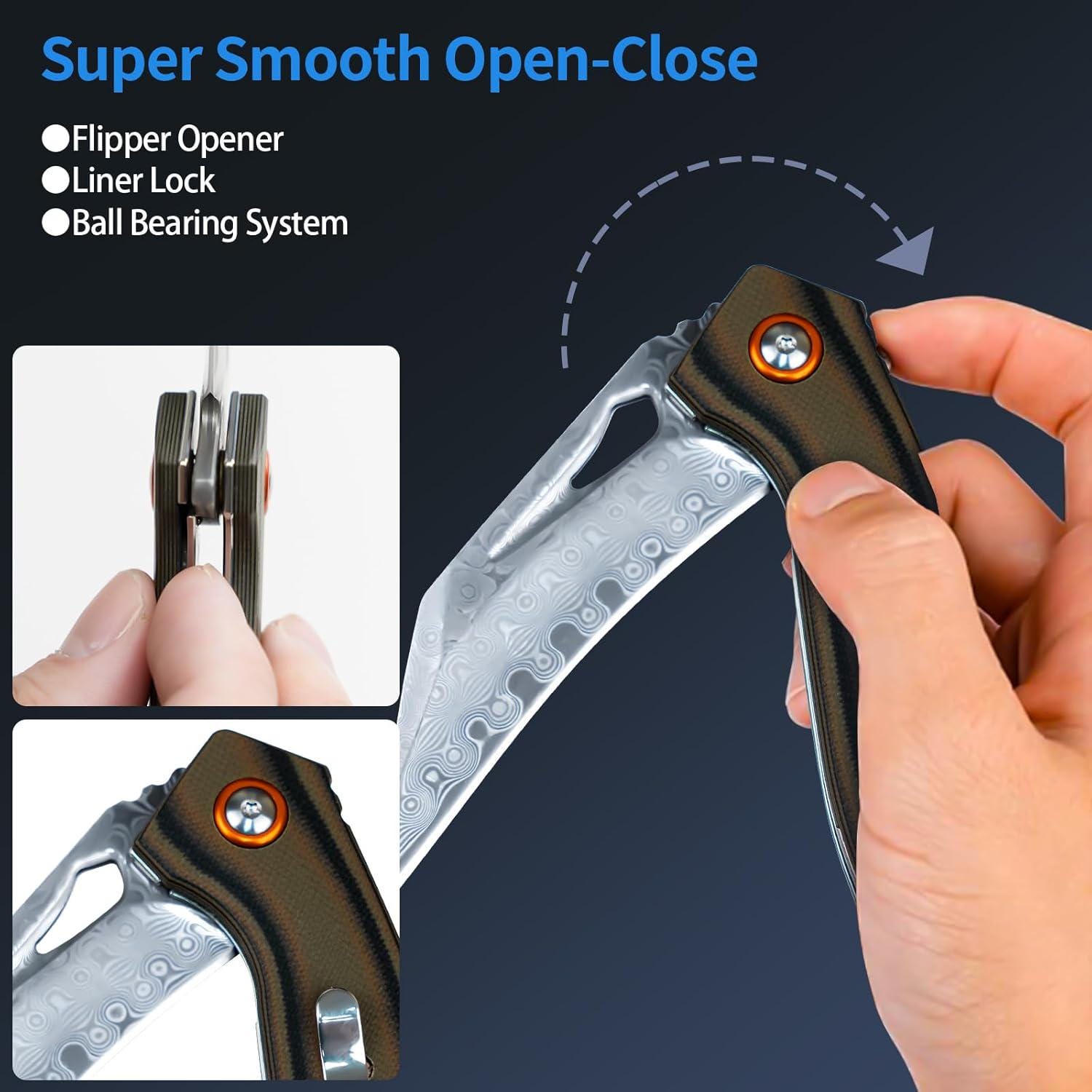 • Smooth Opening Mechanism: Equipped with a reliable and smooth folding mechanism, this knife can be opened with one hand, making it both practical and safe to use.
