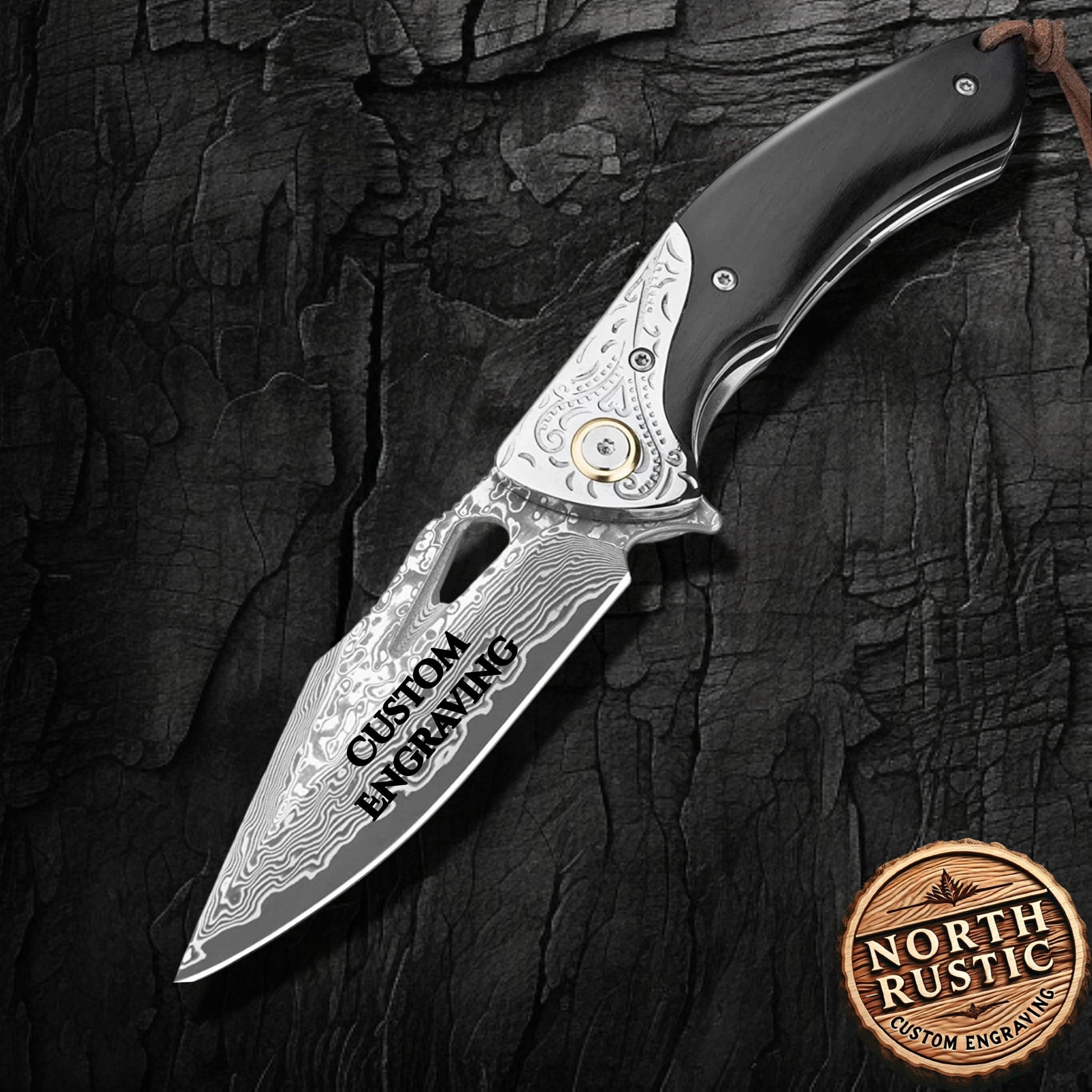 Engraved Pocket Knife Gift For Him, Wedding Groomsmen Folding Knife, Father Birthday Engraving Gifts, Personalized Anniversary Husband NR02