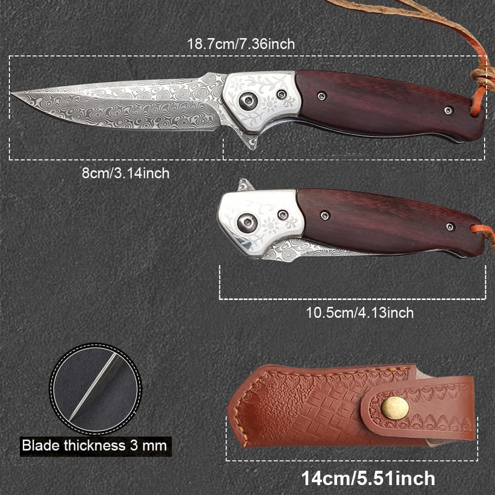 • Versatile Utility: A pocket knife is not just a gift; it's a tool with countless uses. Whether you're camping, hiking, fishing, or just tackling everyday tasks, this compact wonder can handle it all. From cutting ropes and opening packages to preparing food in the great outdoors, its versatility knows no bounds.