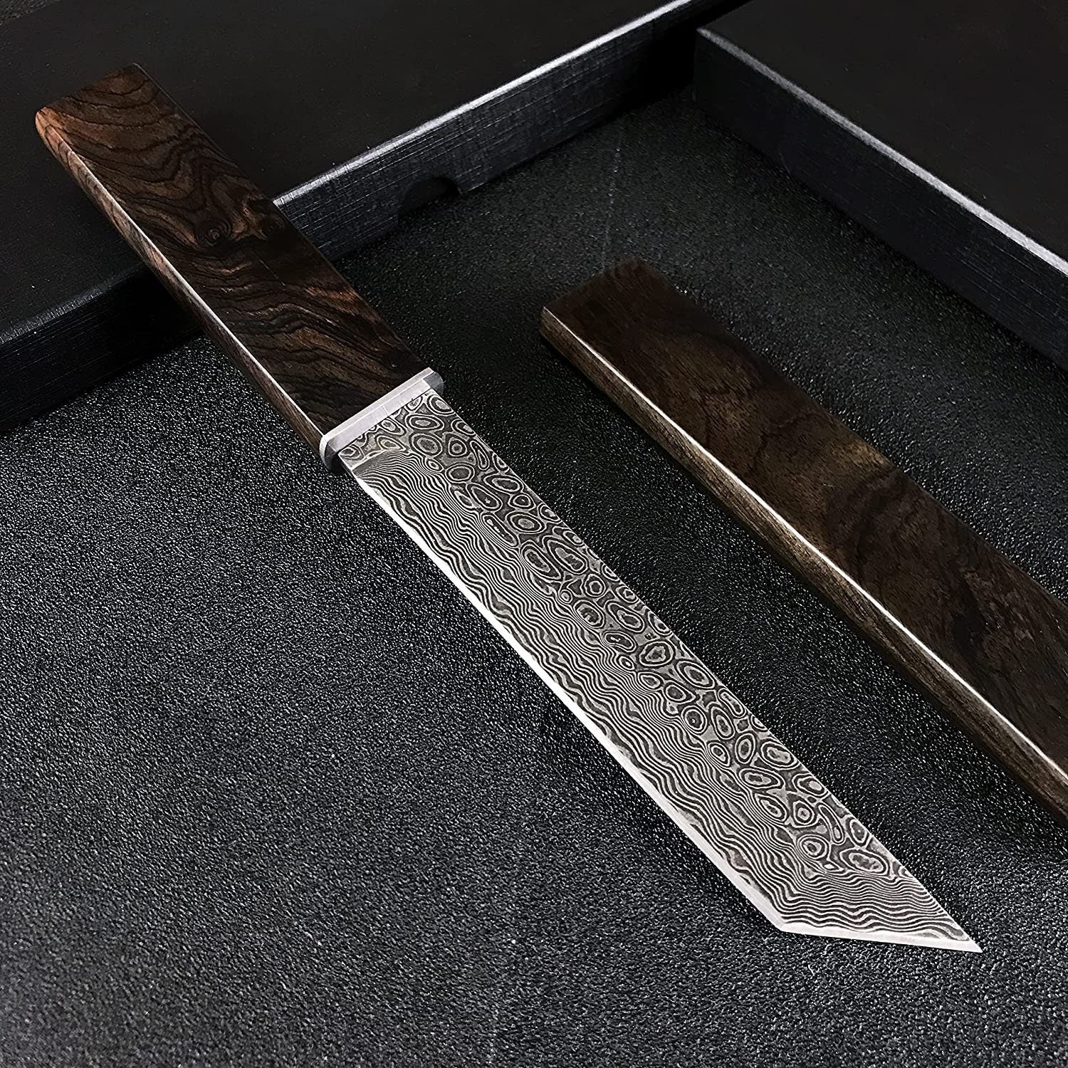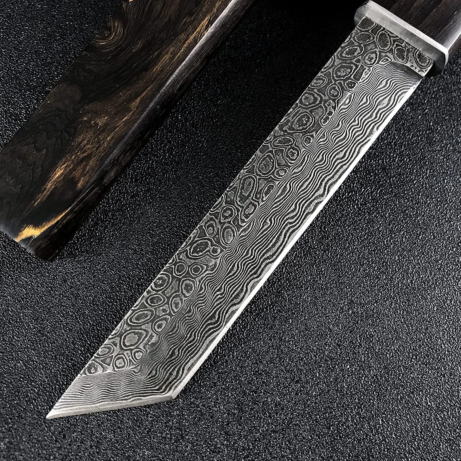 Engraved VG10 Damascus Hunting Knife, Ebony Wood Handle, Personalized Fixed Blade Knife, Personal Engraving Gift Custom Father Dad VE03