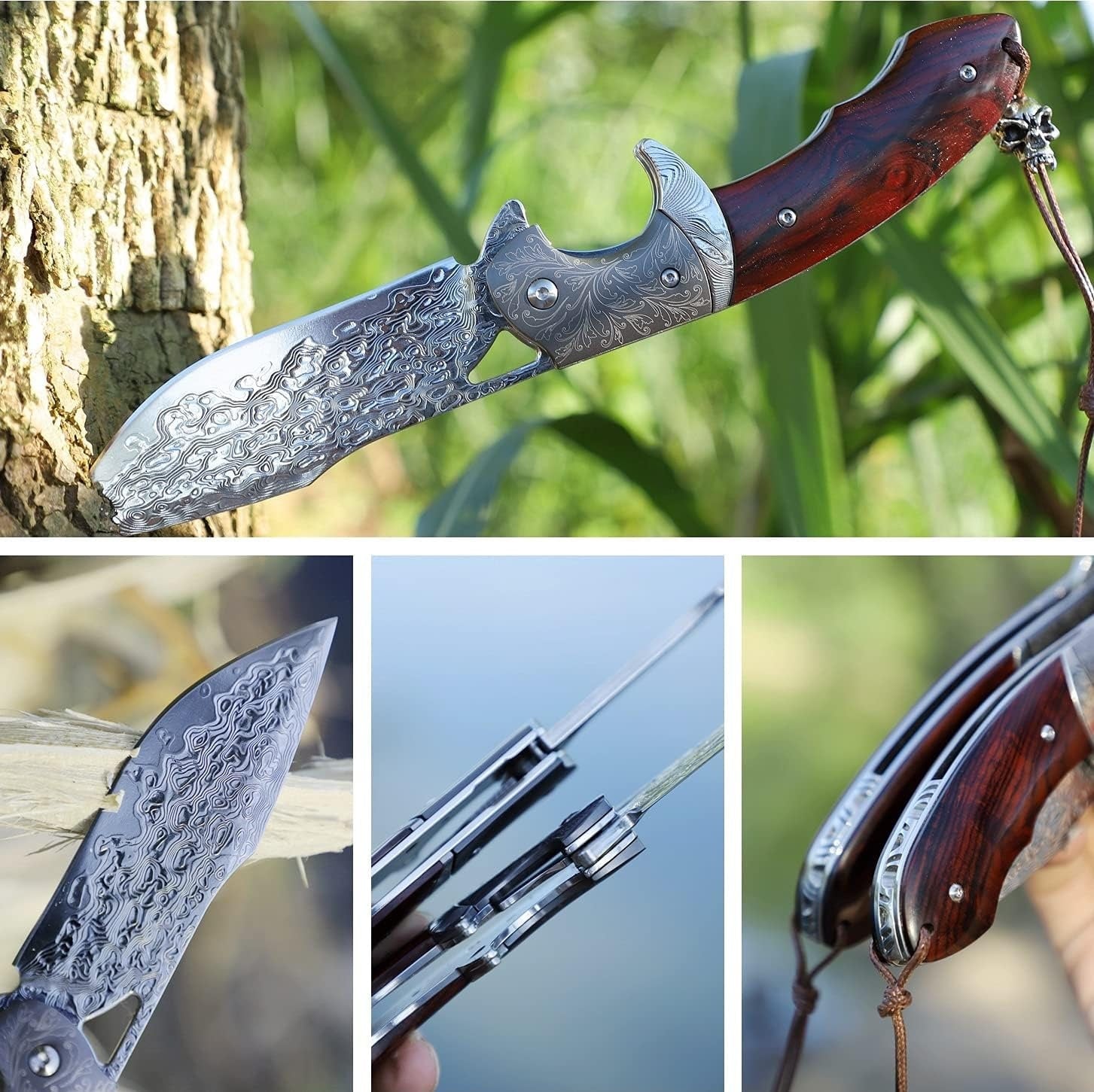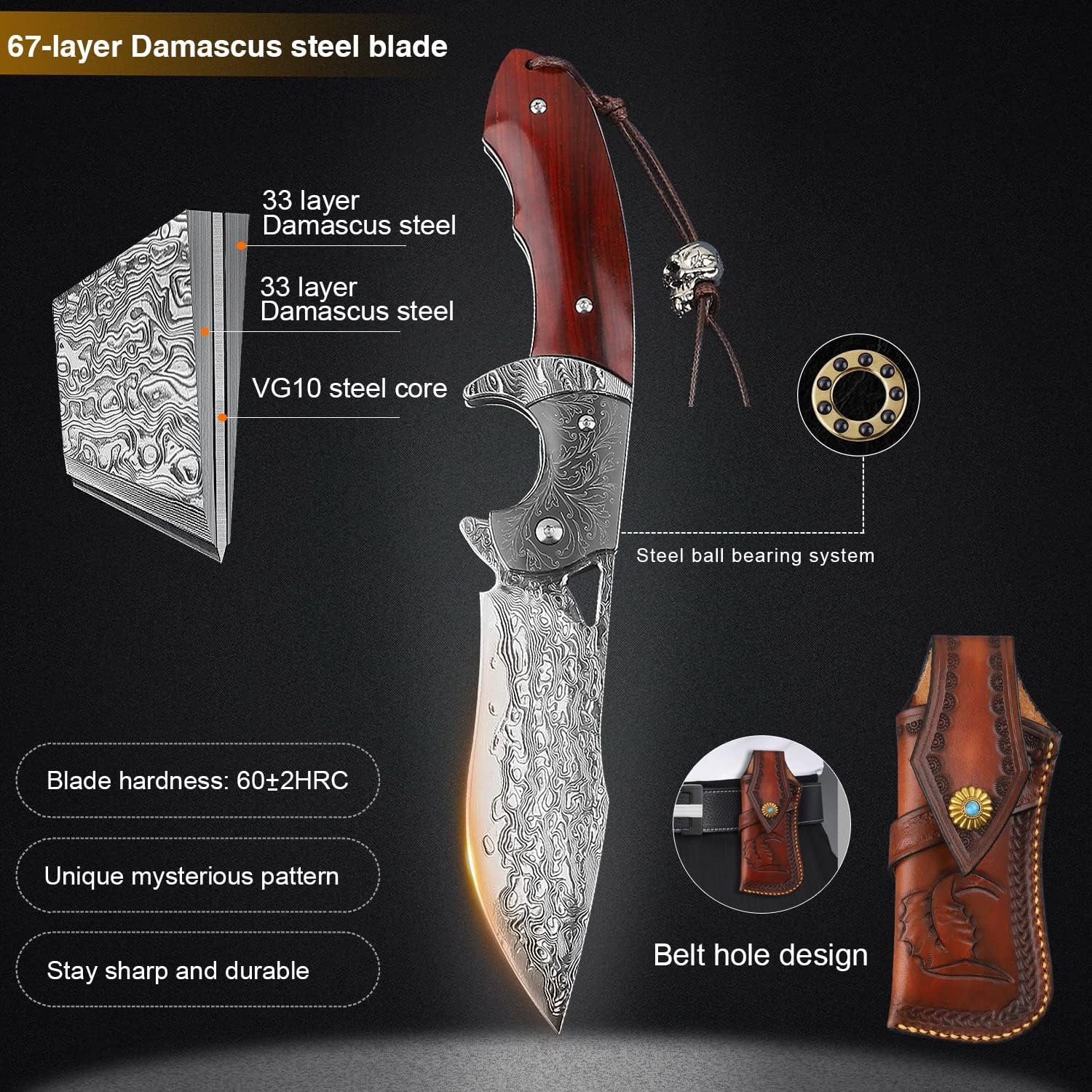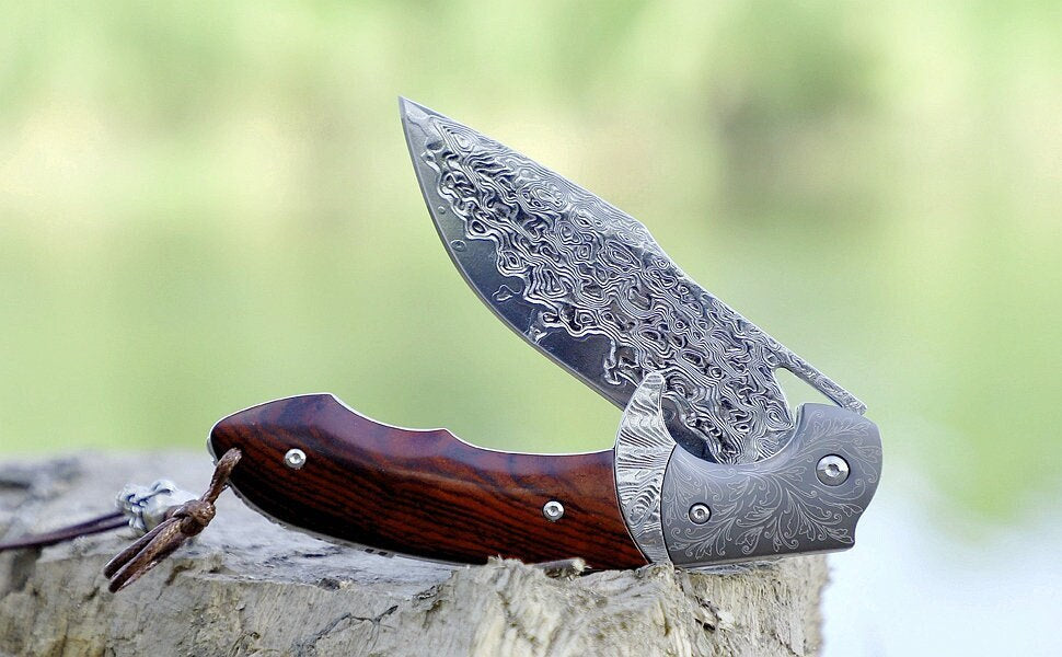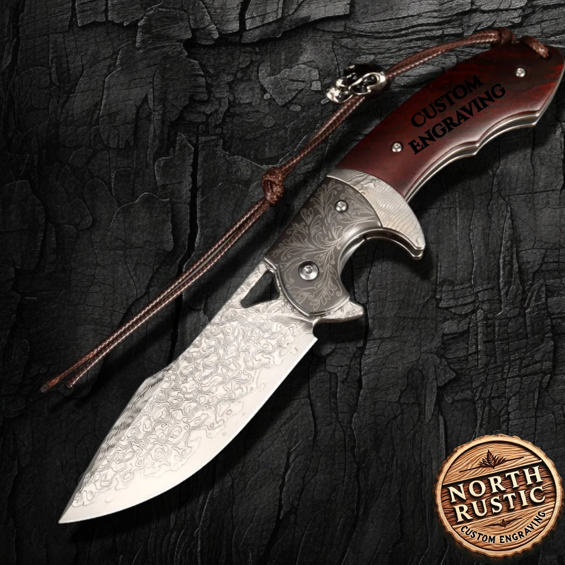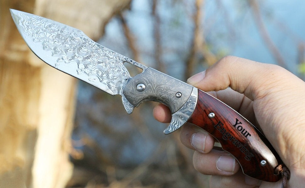 Engraved VG10 Damascus Pocket Knife, Gift For Him Folding Knife, Dad Father Birthday Gifts, Wedding Anniversary Husband Dad Gift | NR04