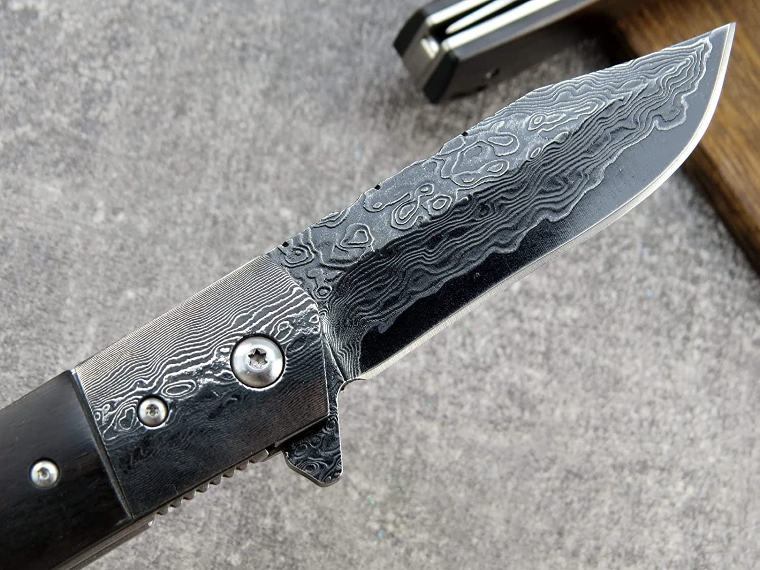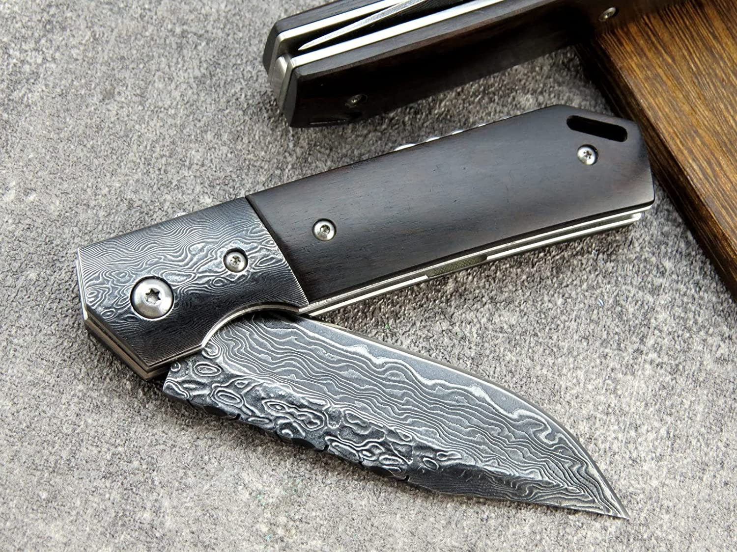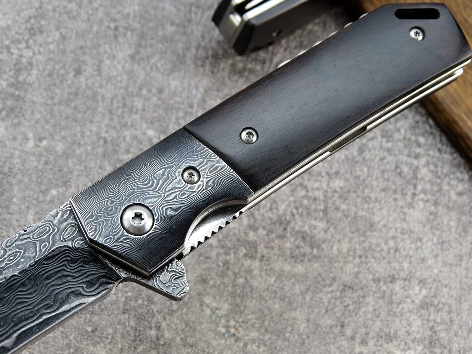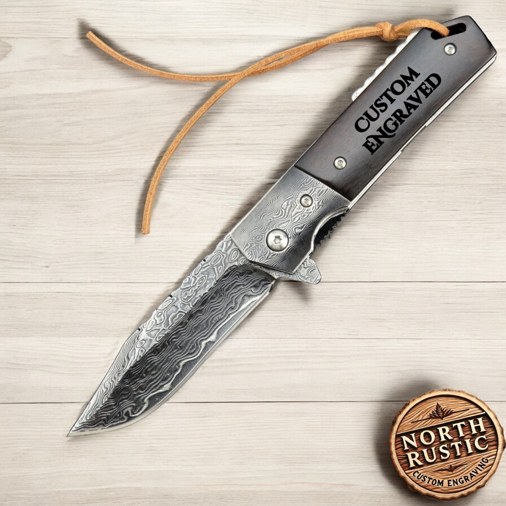 Gift For Him Engraved Pocket Knife, Engraving Damascus Folding Knives, Groomsmen Wedding Holiday Birthday Father Personalized Gifts VP35