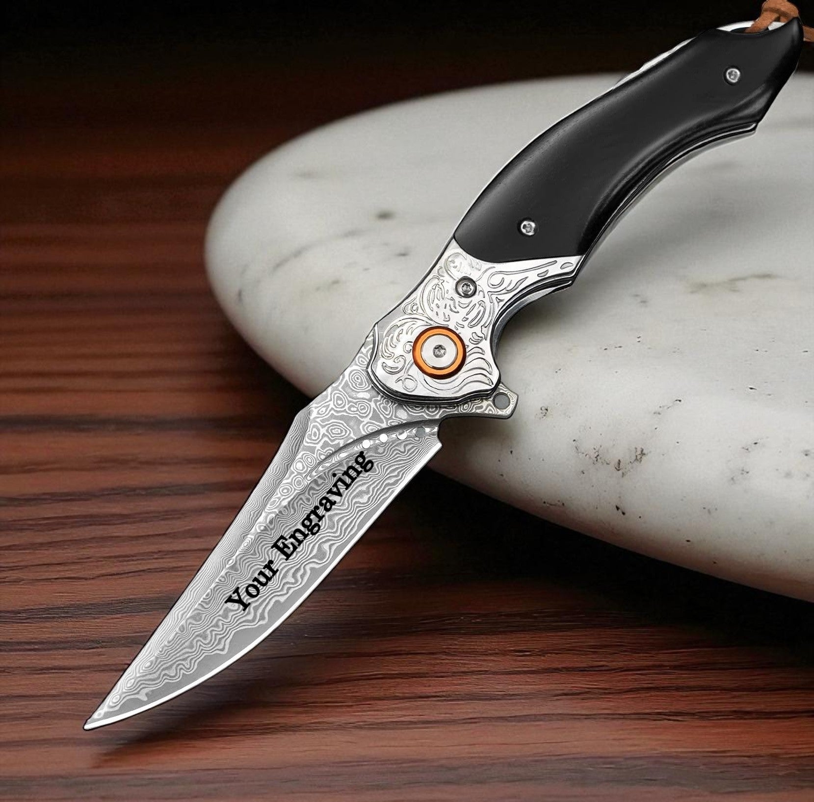 Ebony Sandal Wood Handle 7.8" Damascus Folding Knife
