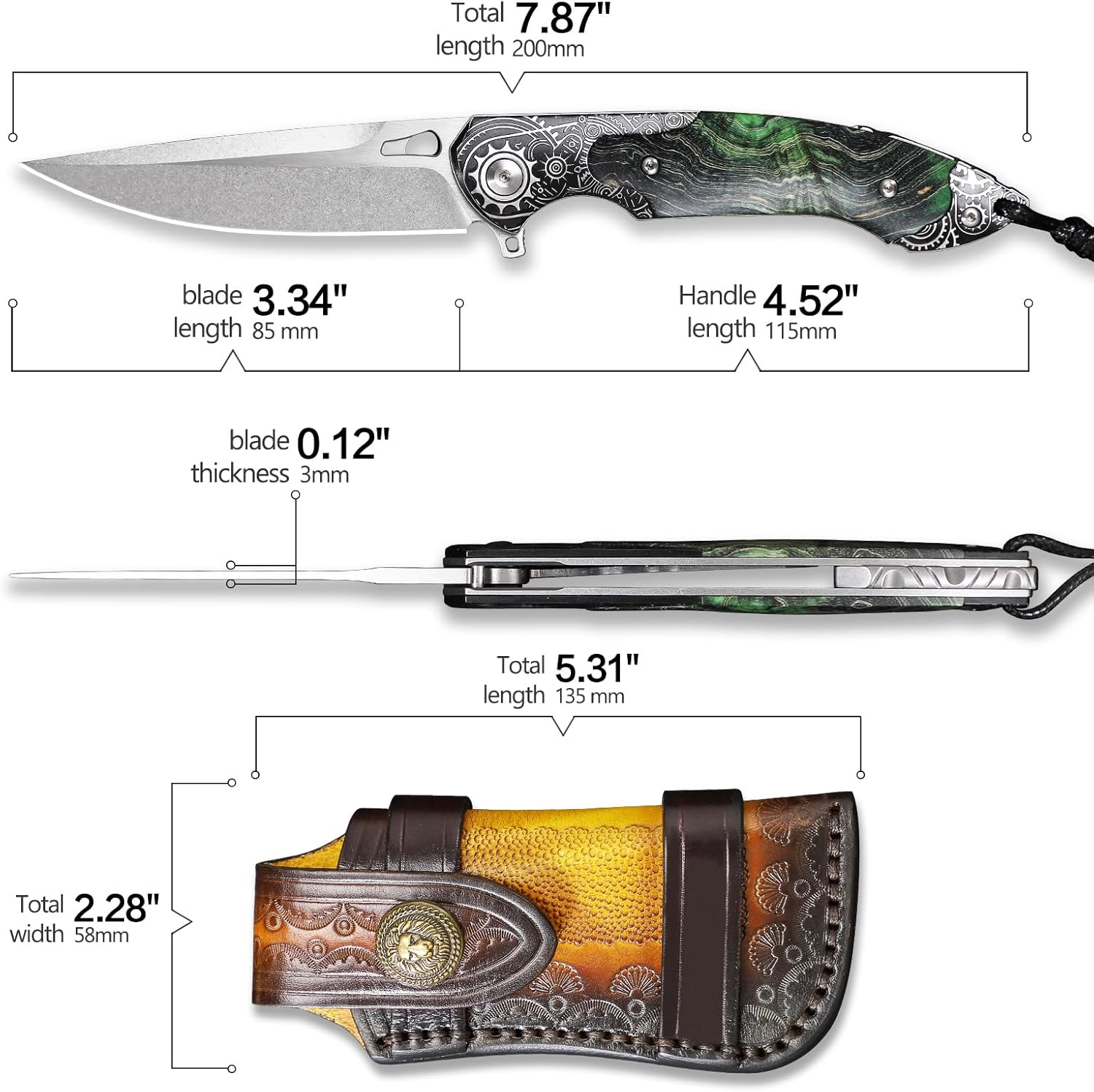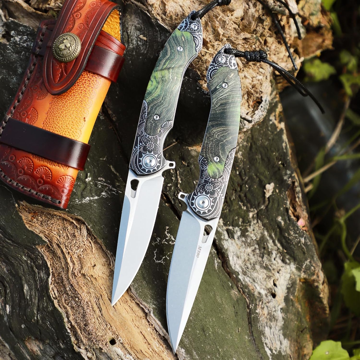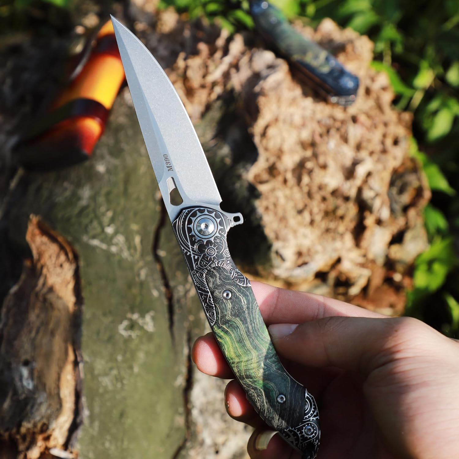 M390 Steel Pocket Knife Green Stable Wood Handle