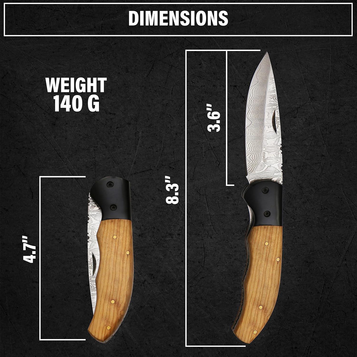 • Whether you're an avid outdoors enthusiast, a knife collector, or someone who appreciates the finer things in life, this Damascus Pocket Knife is a must-have addition to your collection. It's not just a tool; it's a statement of style and quality. Elevate your everyday carry with this stunning piece today!