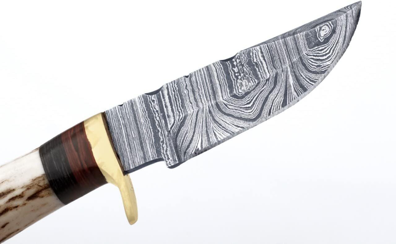 Mini 3"Damascus Hunting Knife Antler Horn Handle