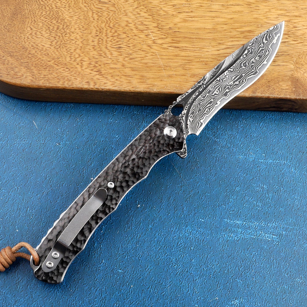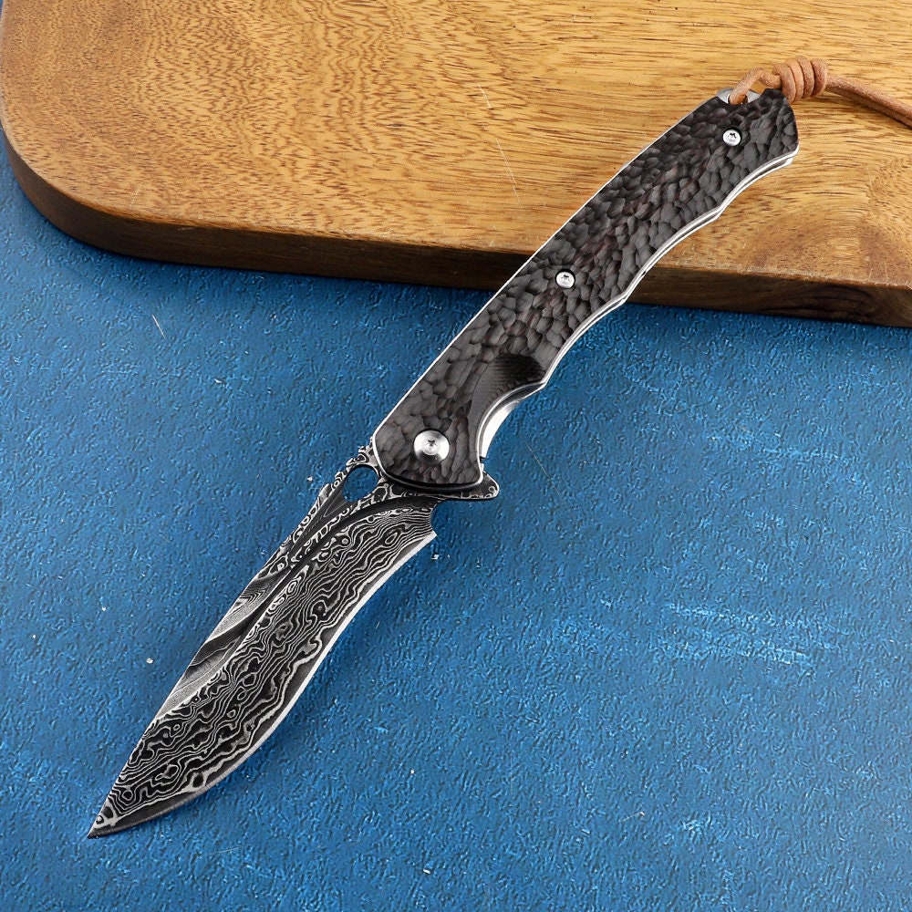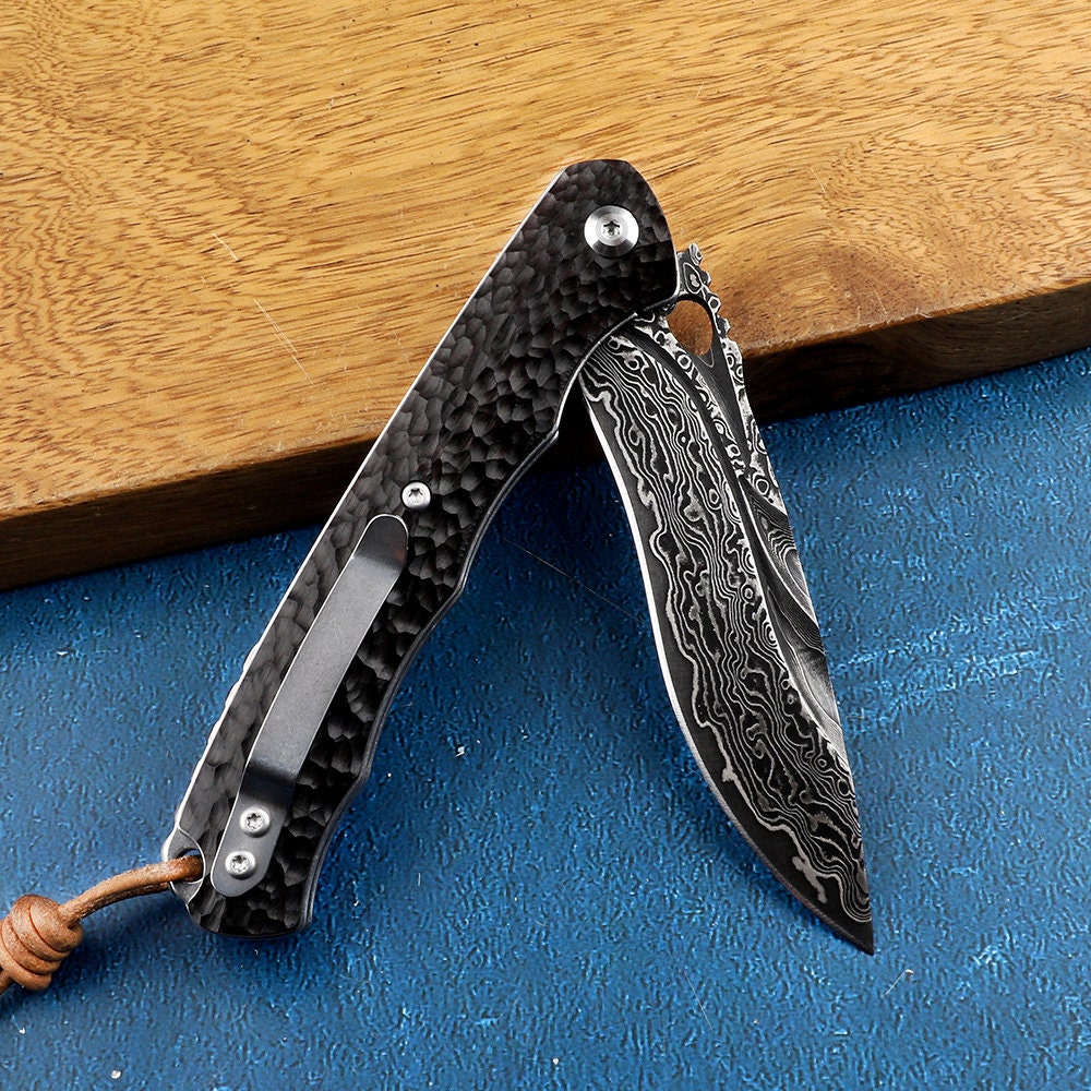 Personalized Damascus Pocket Knife, Engraved Wood Box Gift Set, Ebony Wood Handle VG10, Custom Father Husband Anniversary Boyfriend | VP31
