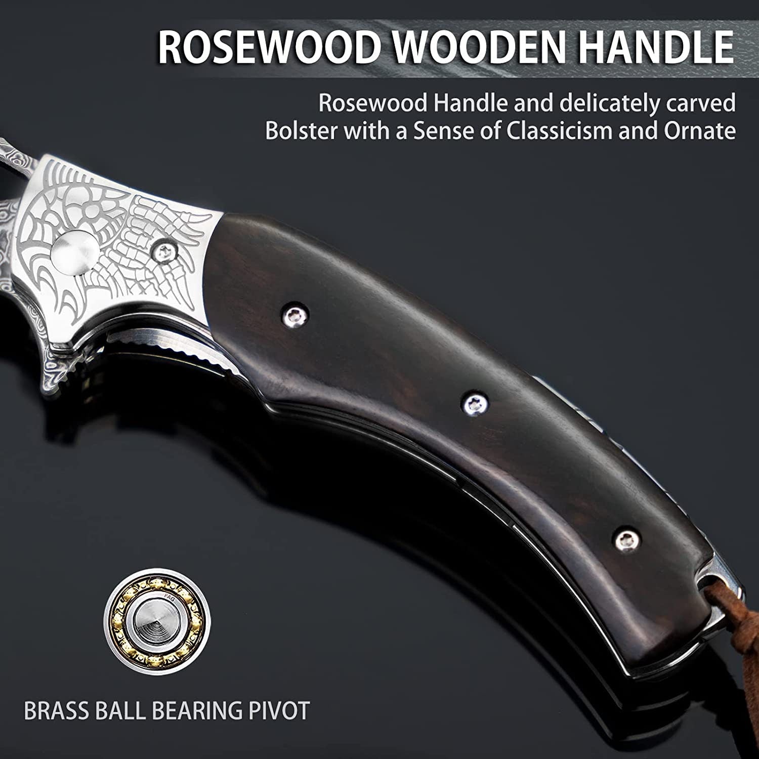 • Sandalwood Handle: The handle of this pocket knife is adorned with beautiful Sandalwood, known for its light weight and durable feel. Each handle is unique, displaying a mesmerizing play of colors and patterns, making it a true collector's item.