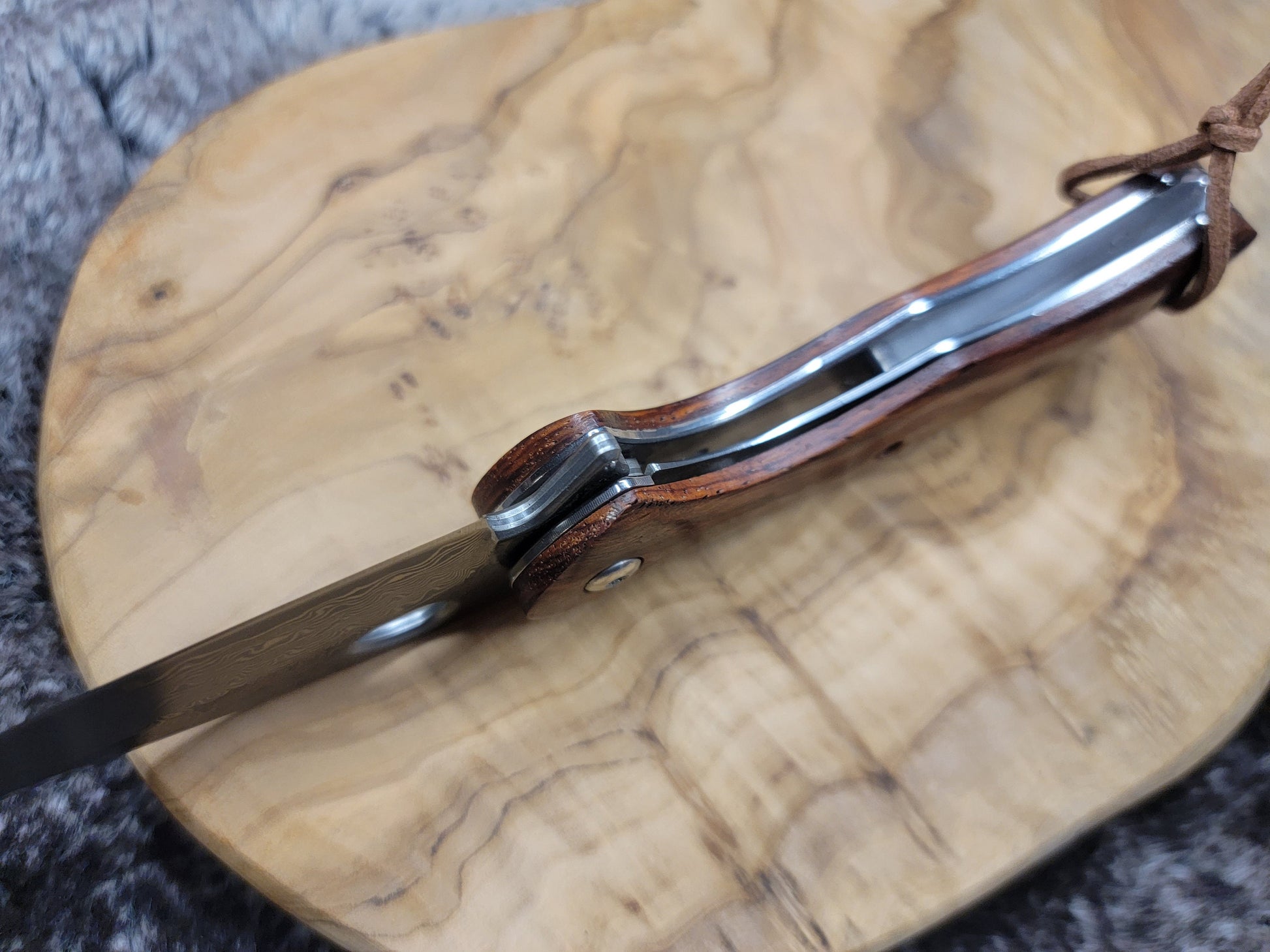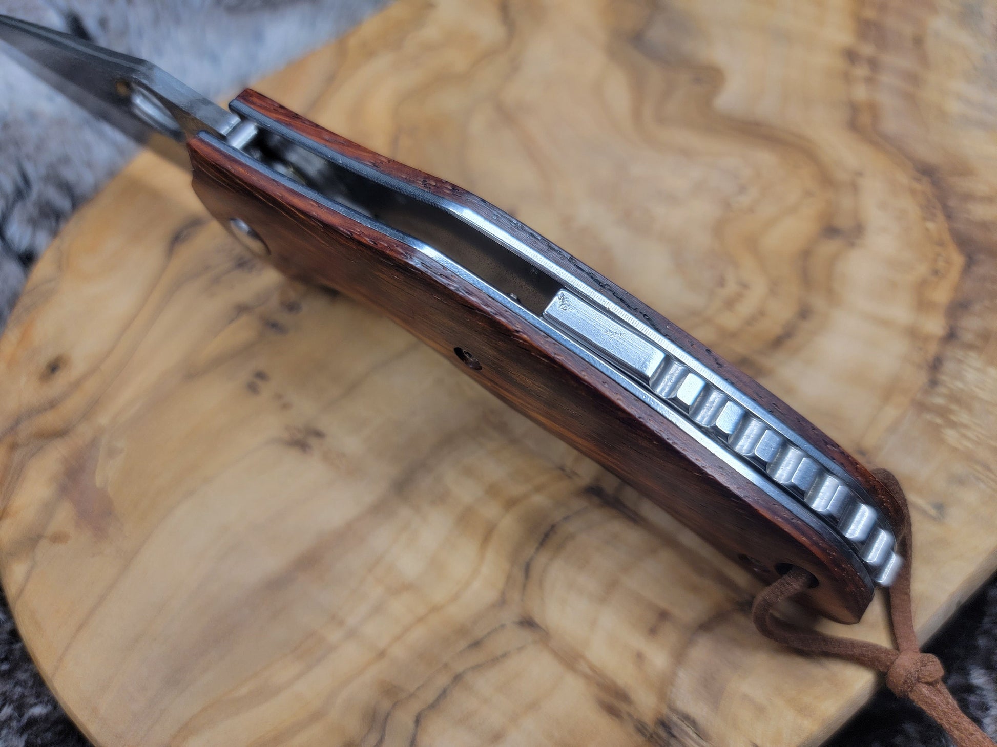 • Rosewood Handle: The handle of this pocket knife is adorned with beautiful Rosewood, known for its light weight and durable feel. Each handle is unique, displaying a mesmerizing play of colors and patterns, making it a true collector's item.