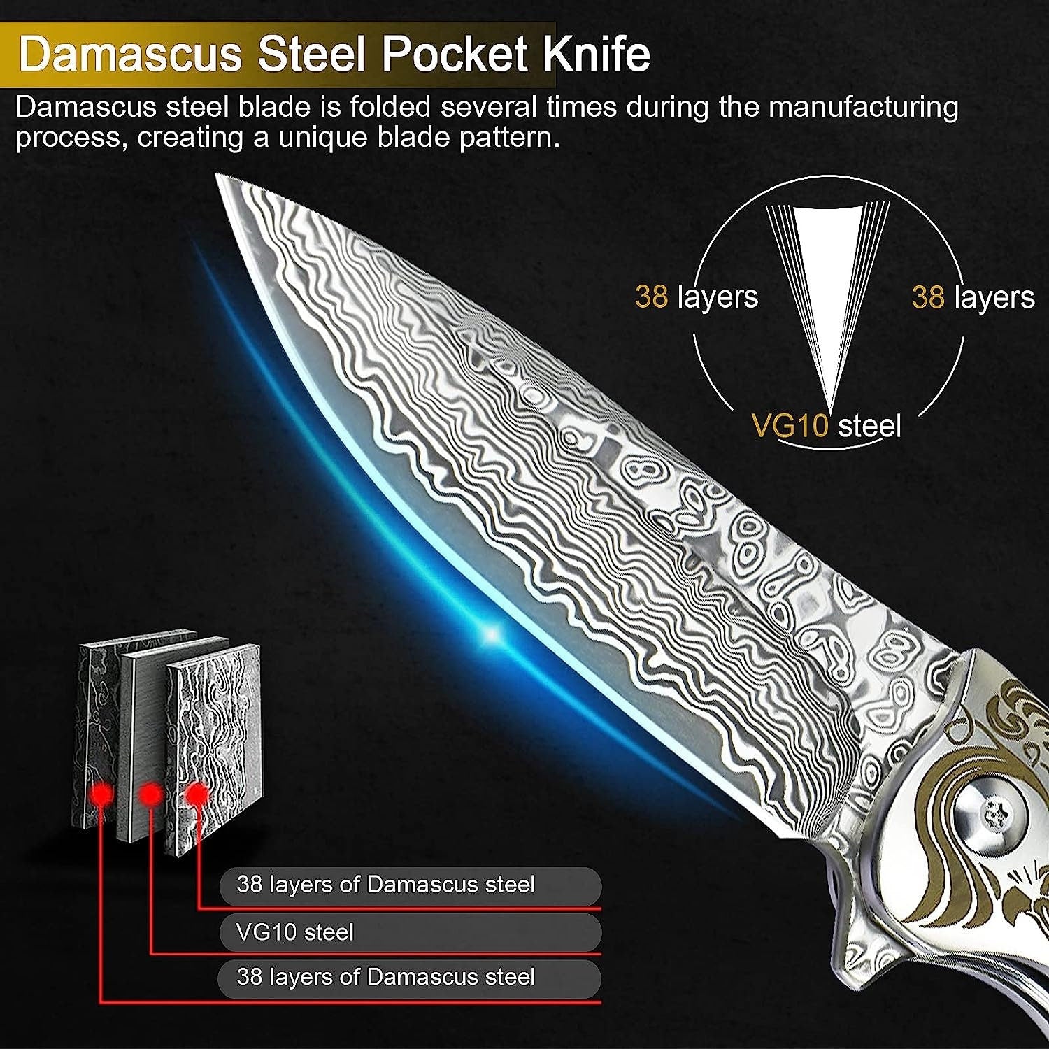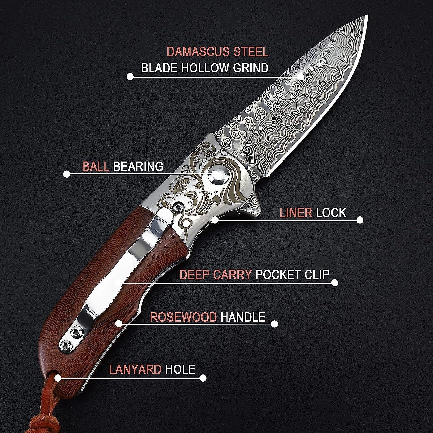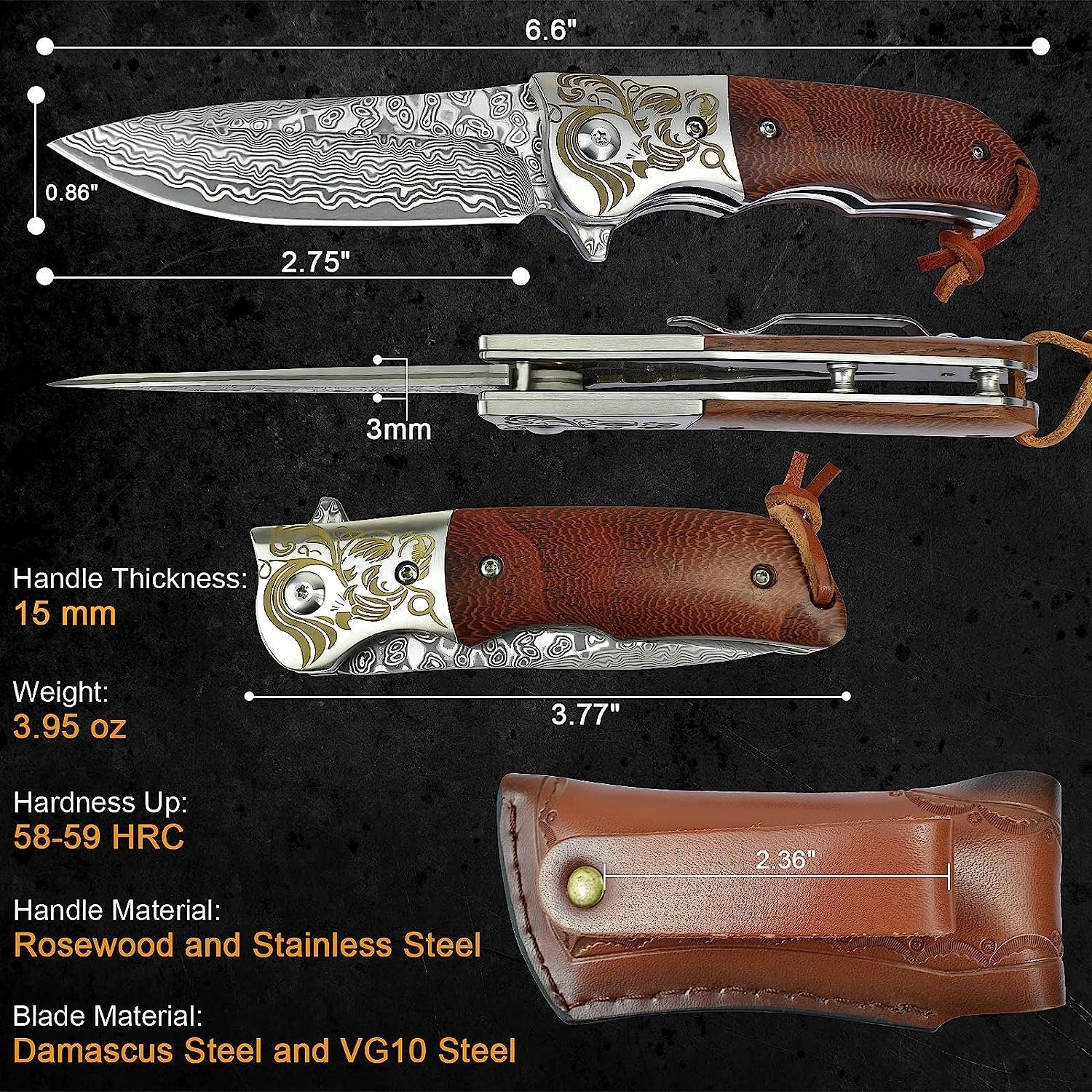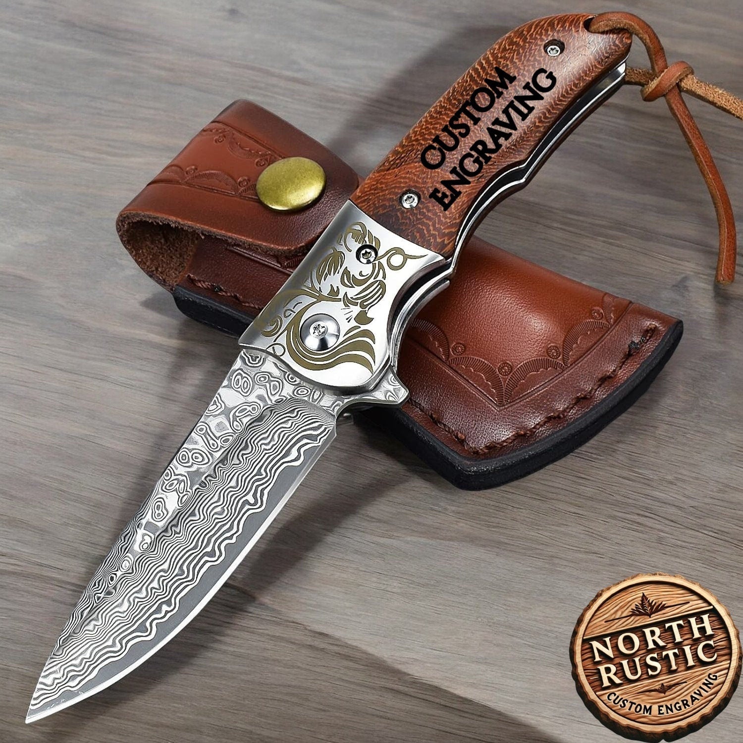 Personalized Engraved Pocket Knife, Rosewood Engraving Damascus Knife, VG10 Folding Knife, Gifts For Him Anniversary Wedding Gift, NR06