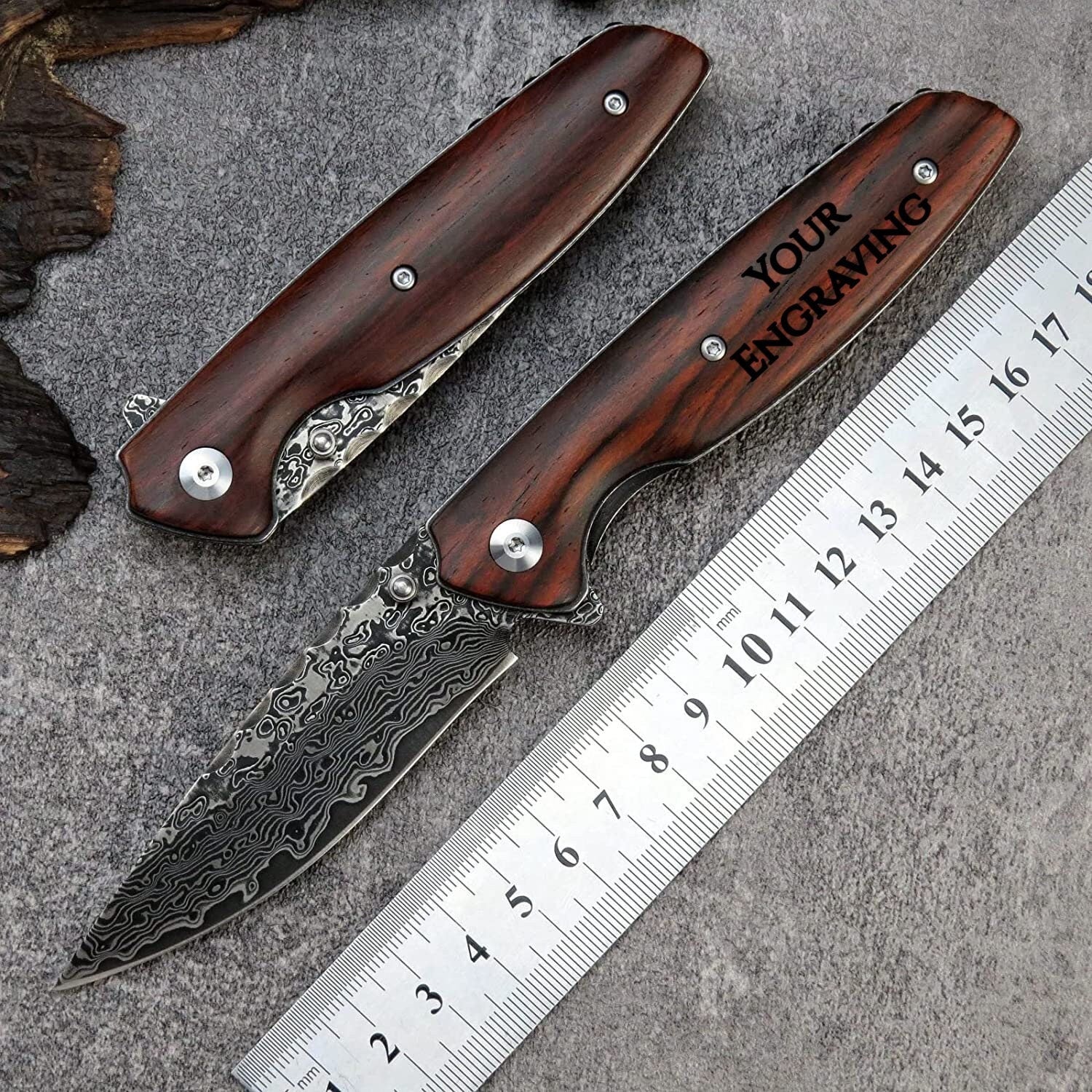 Personalized Gift For Him Pocket Knife, Engraved Damascus Folding Knives, Groomsmen Wedding Engraving Holiday Birthday Father Gifts VP25