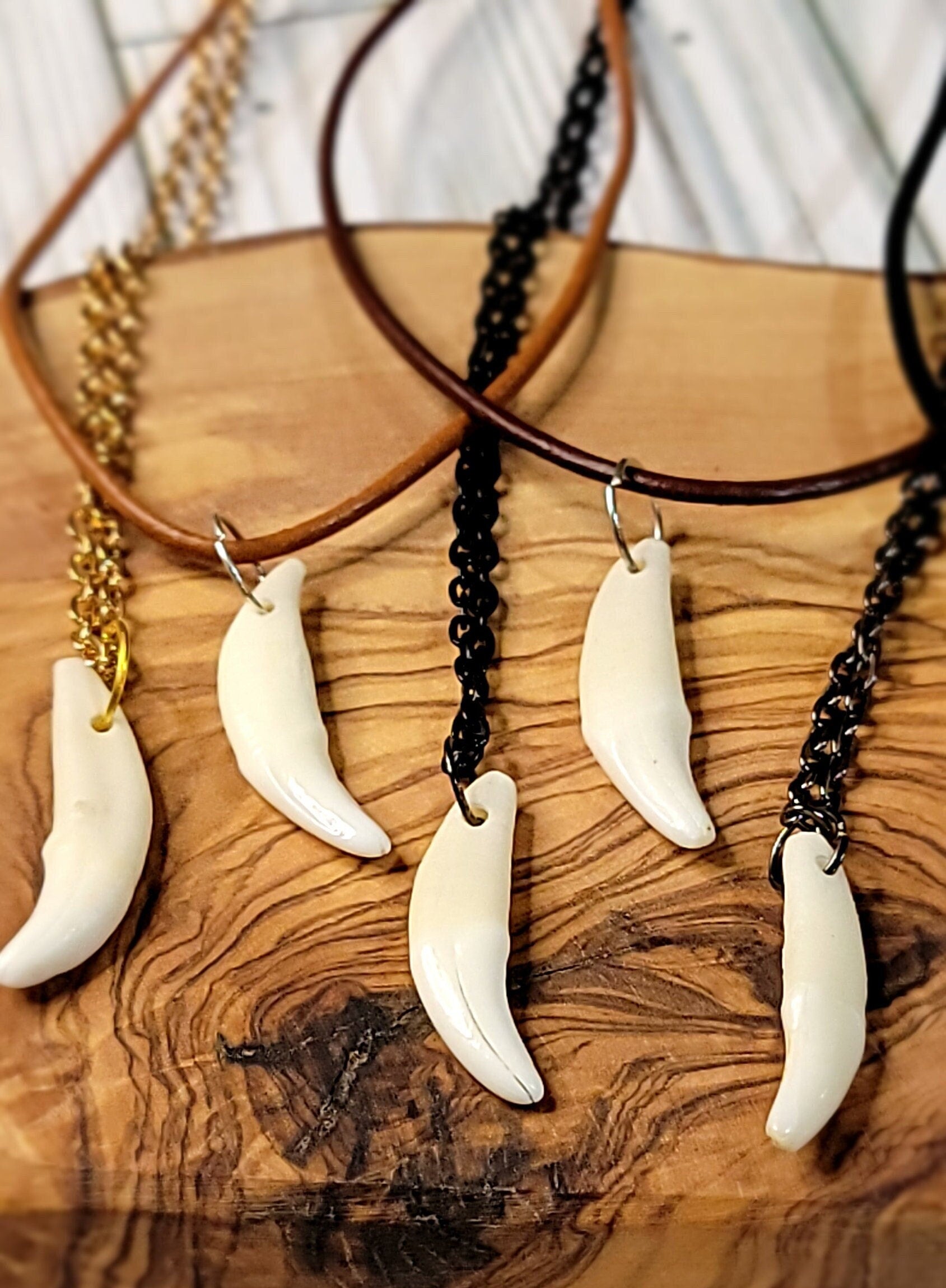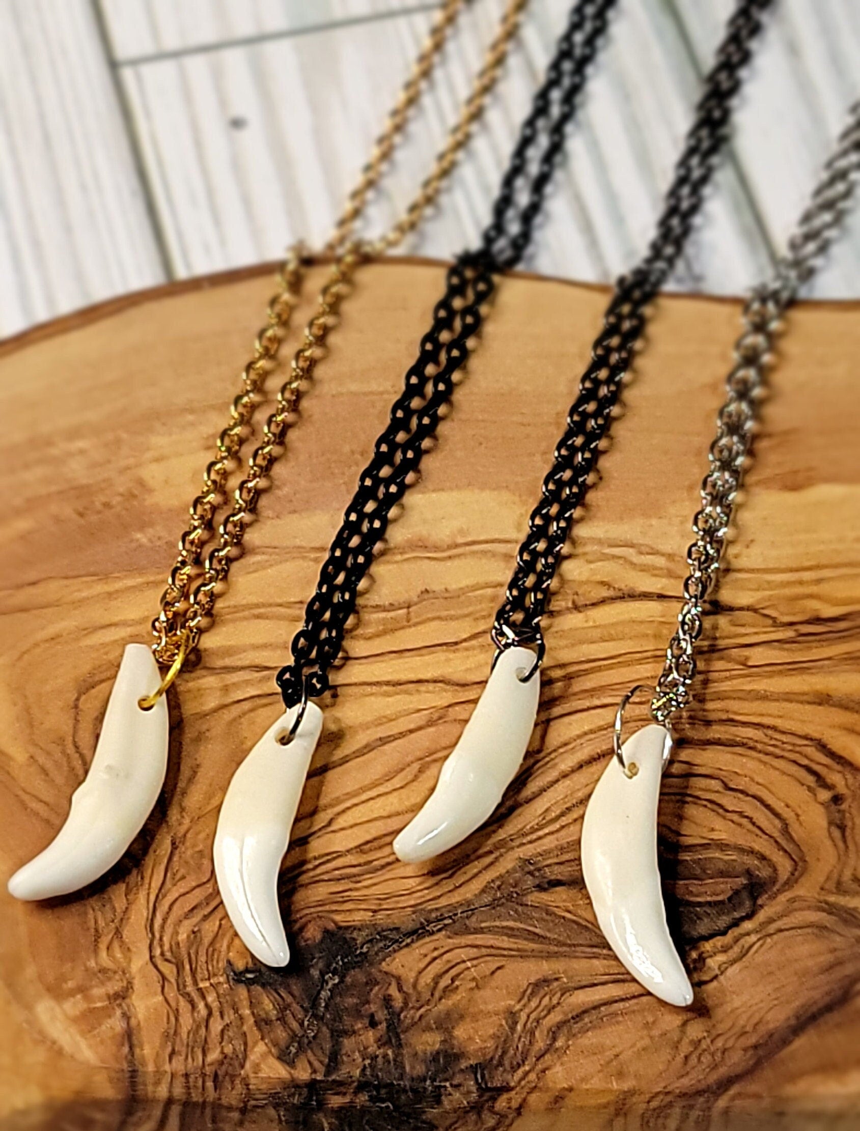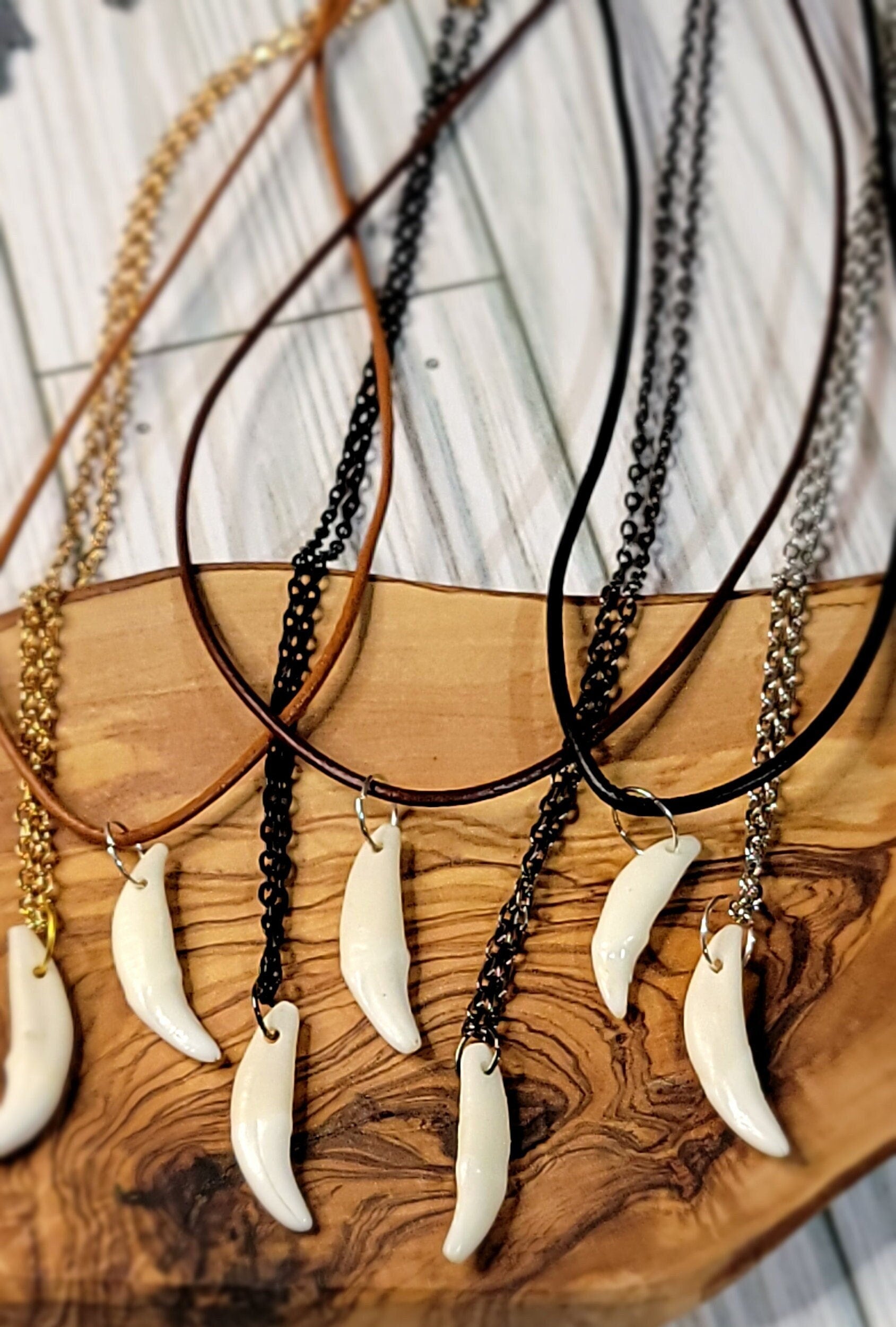 Our necklaces are offered in several colors of Leather and Chain. We do a standard size of 20" length on Necklaces, but you may message us if you want a different size. Below you will find the colors we offer for the Chain and Leather necklaces.